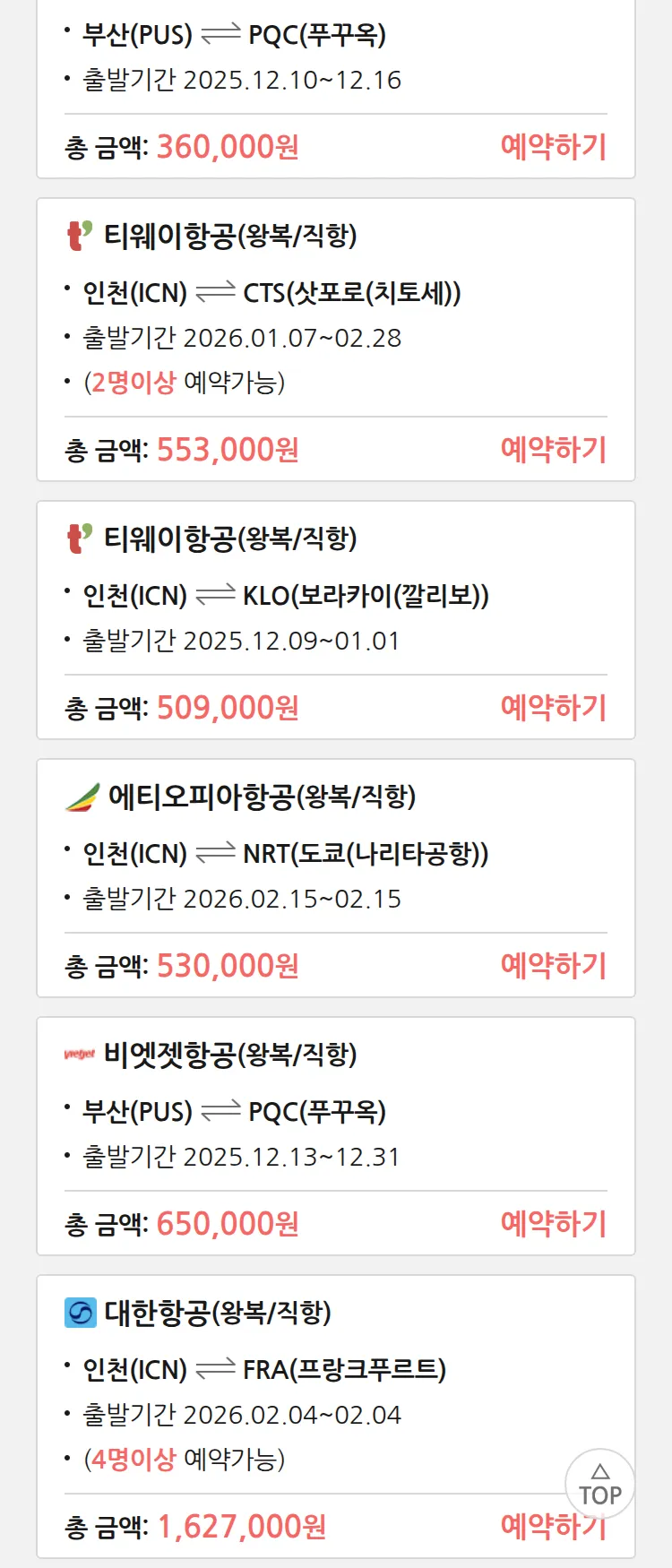 (11월 27일(목)) 땡처리 99.9% 확정 패키지