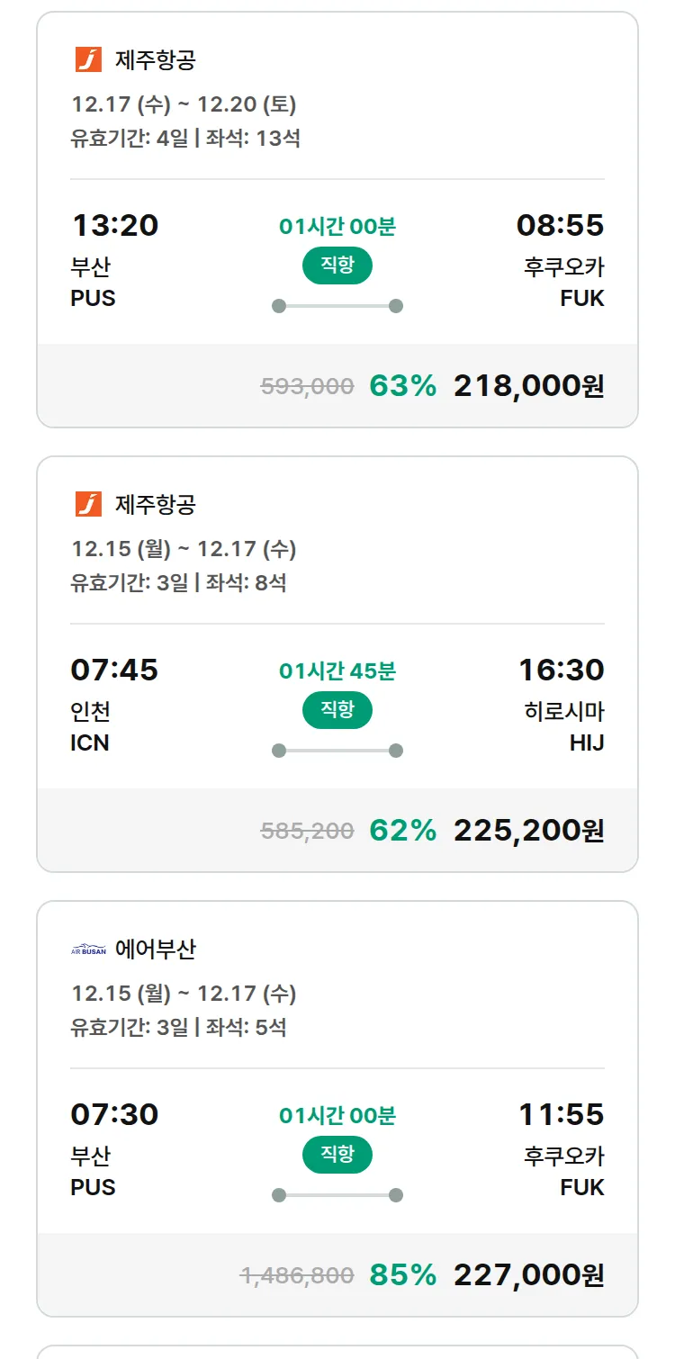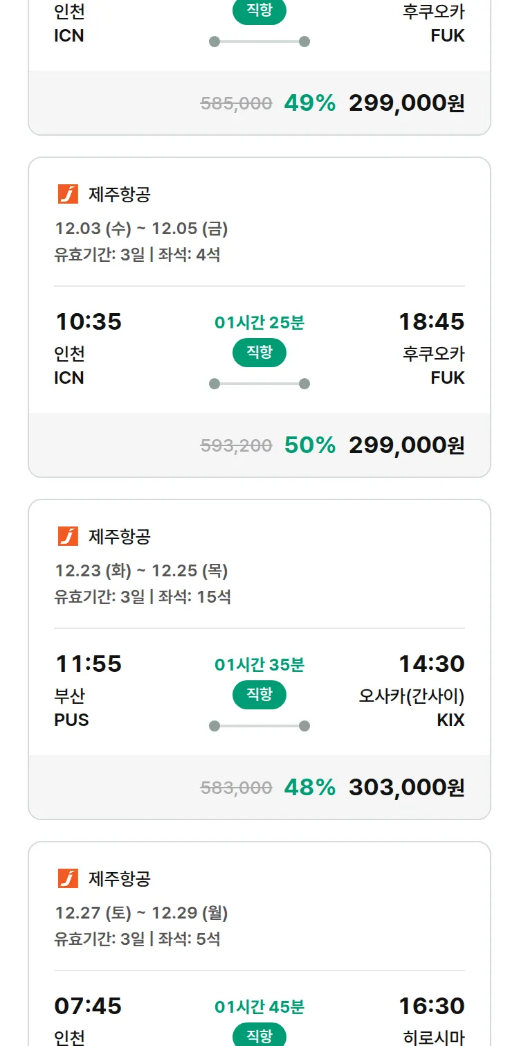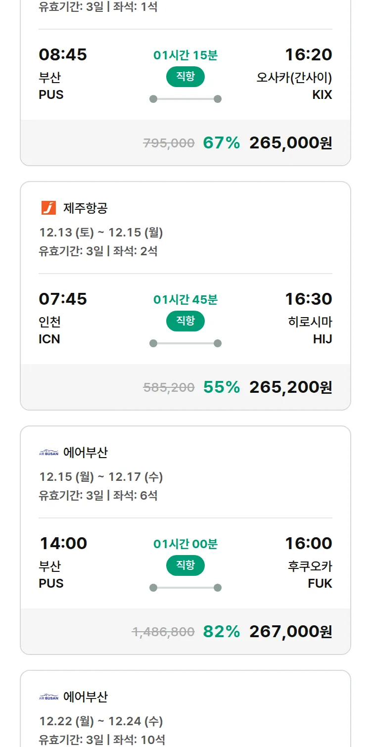 (11월 27일(목)) 땡처리 특가 항공권