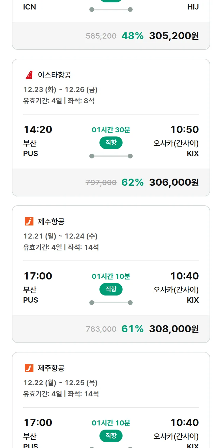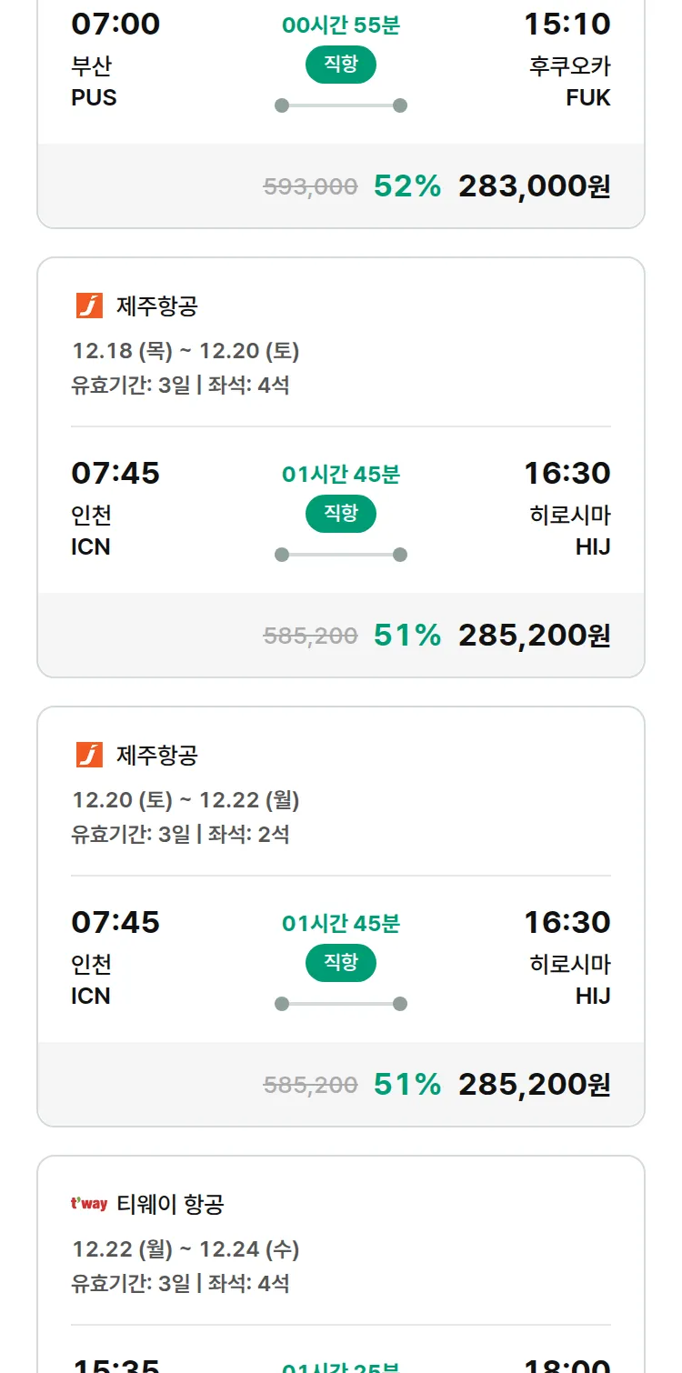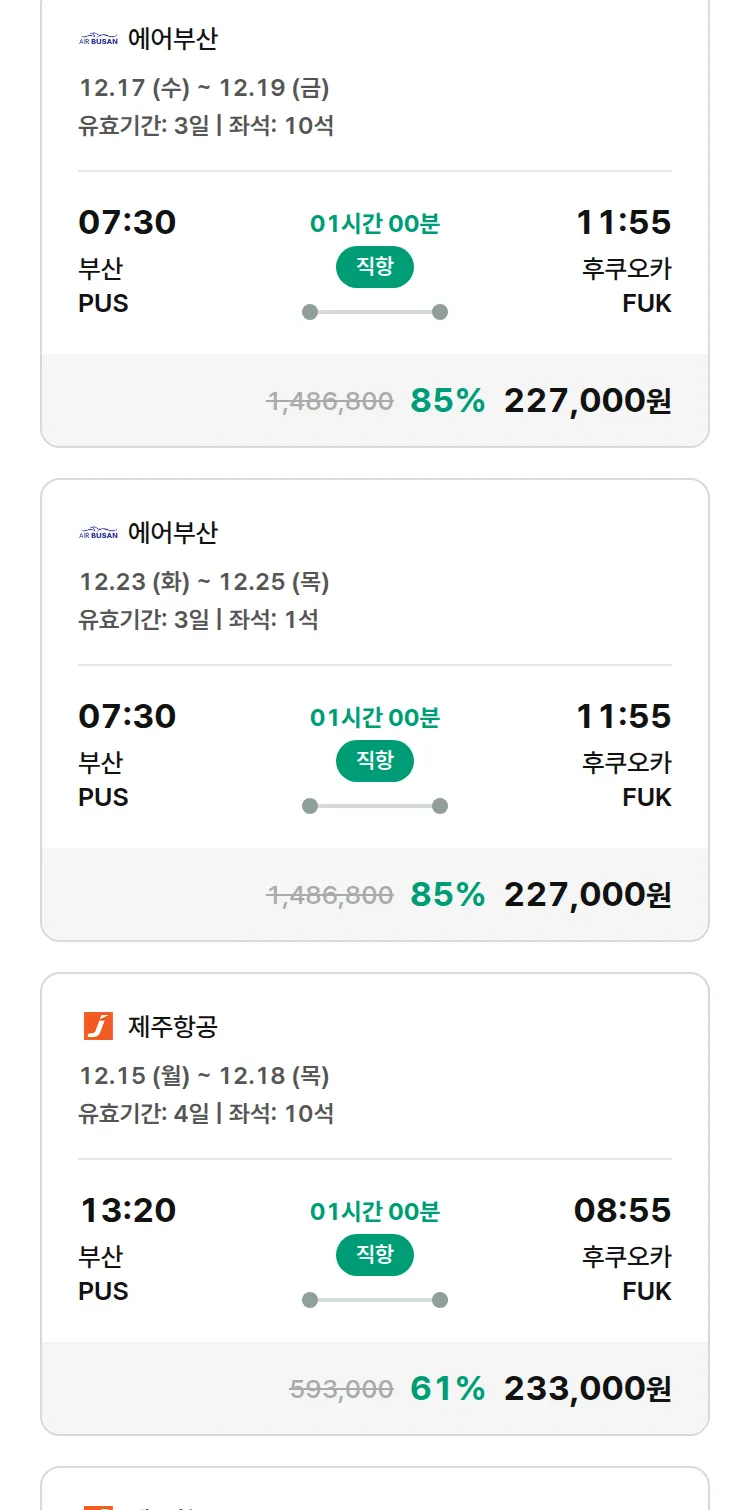 (11월 27일(목)) 땡처리 특가 항공권