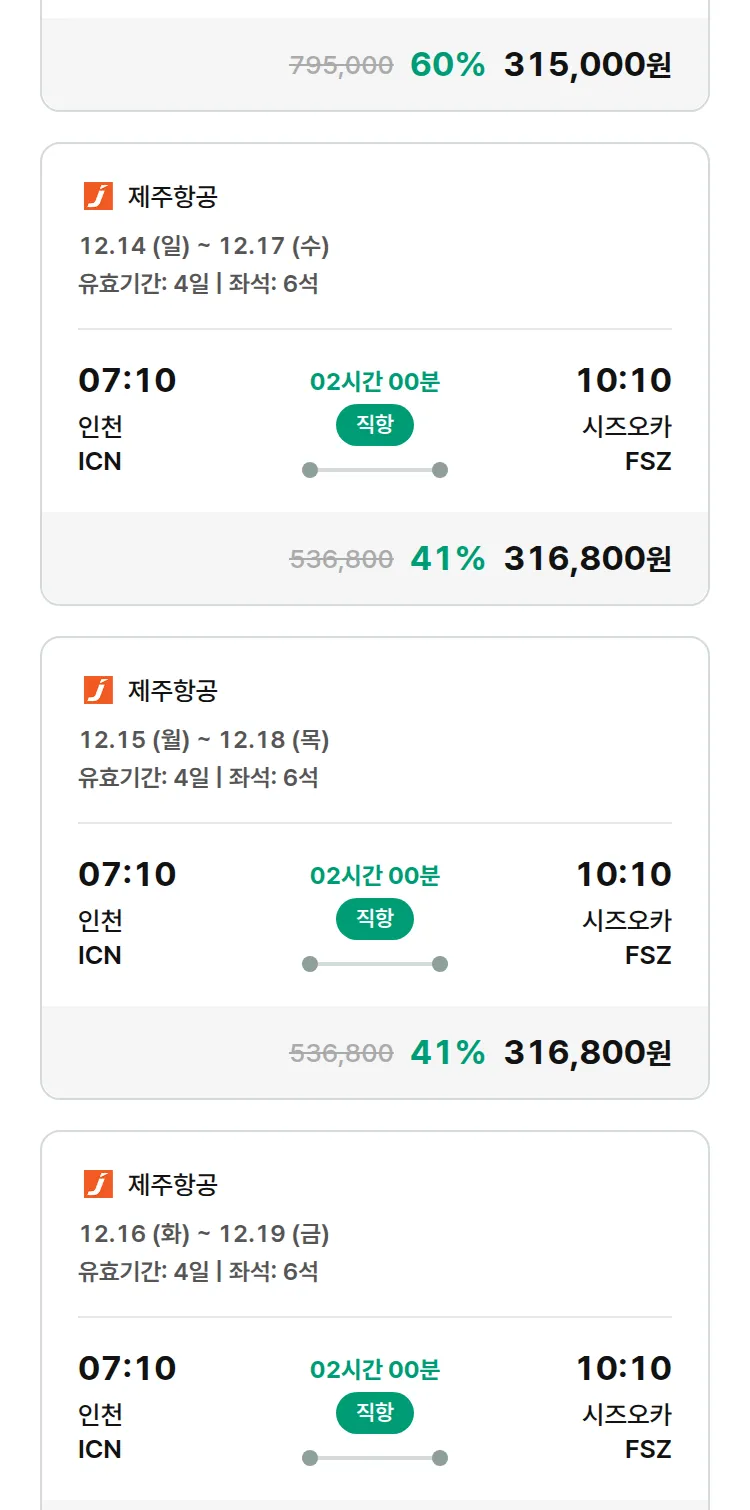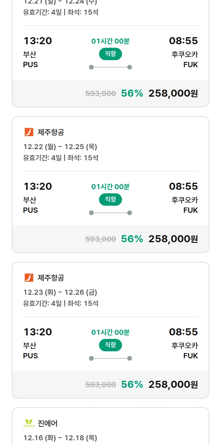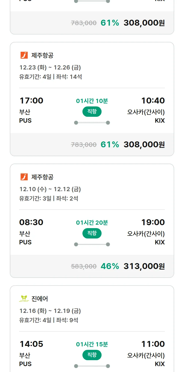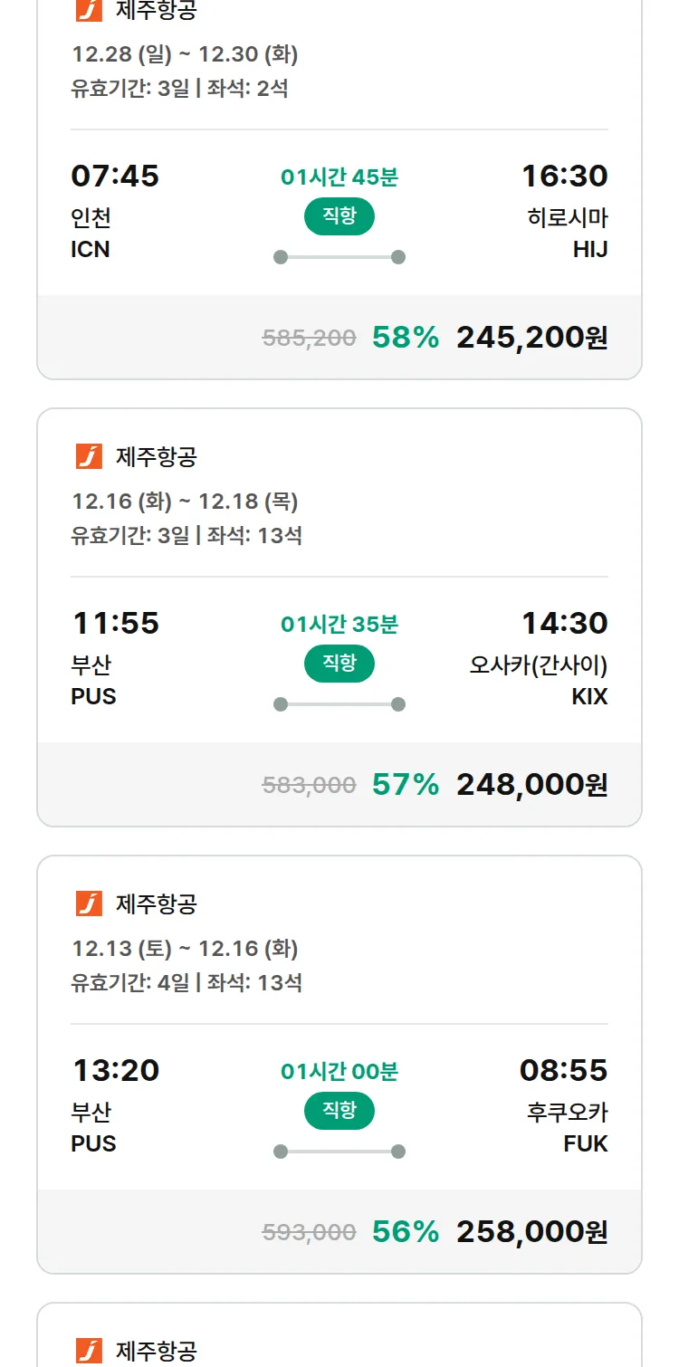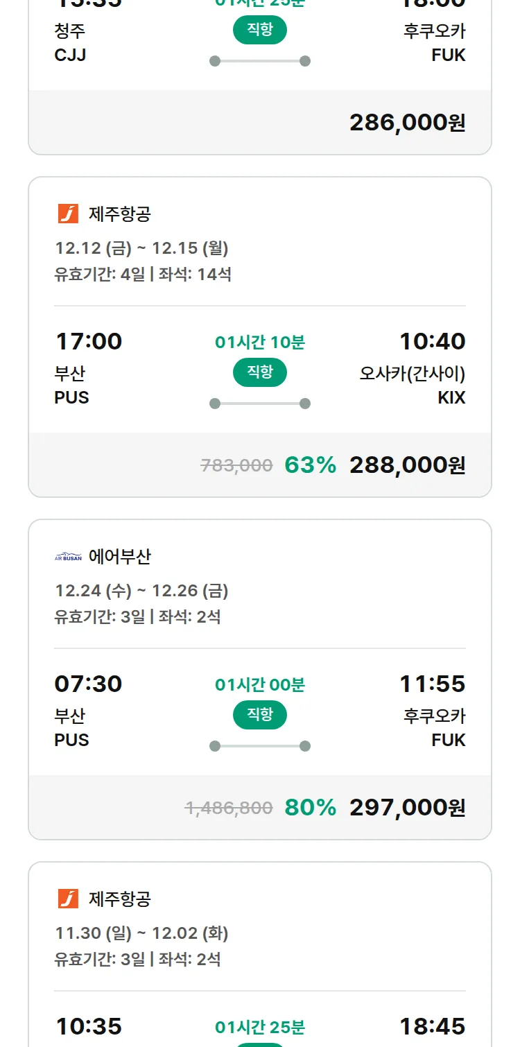 (11월 28일(금)) 땡처리 특가 항공권