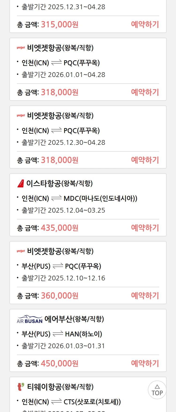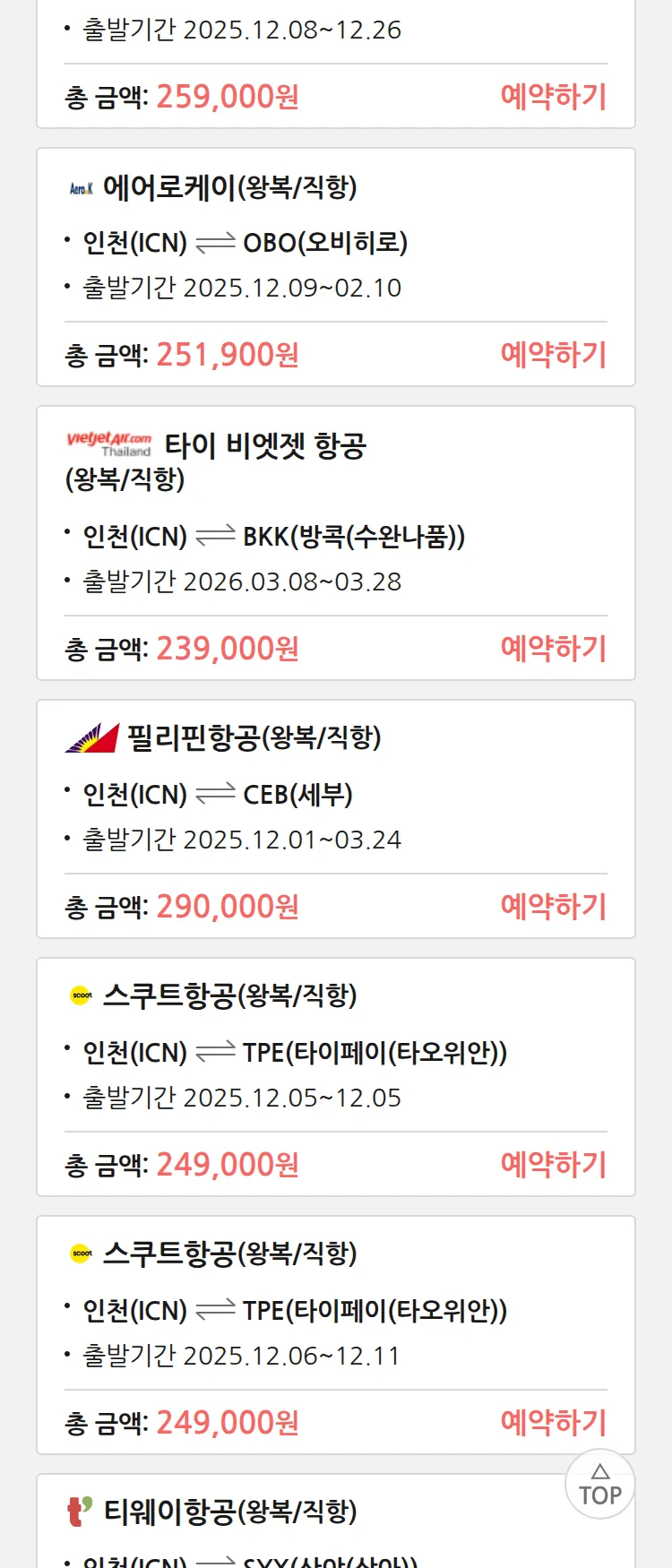 (11월 27일(목)) 모두투어 동남아 특가 항공권