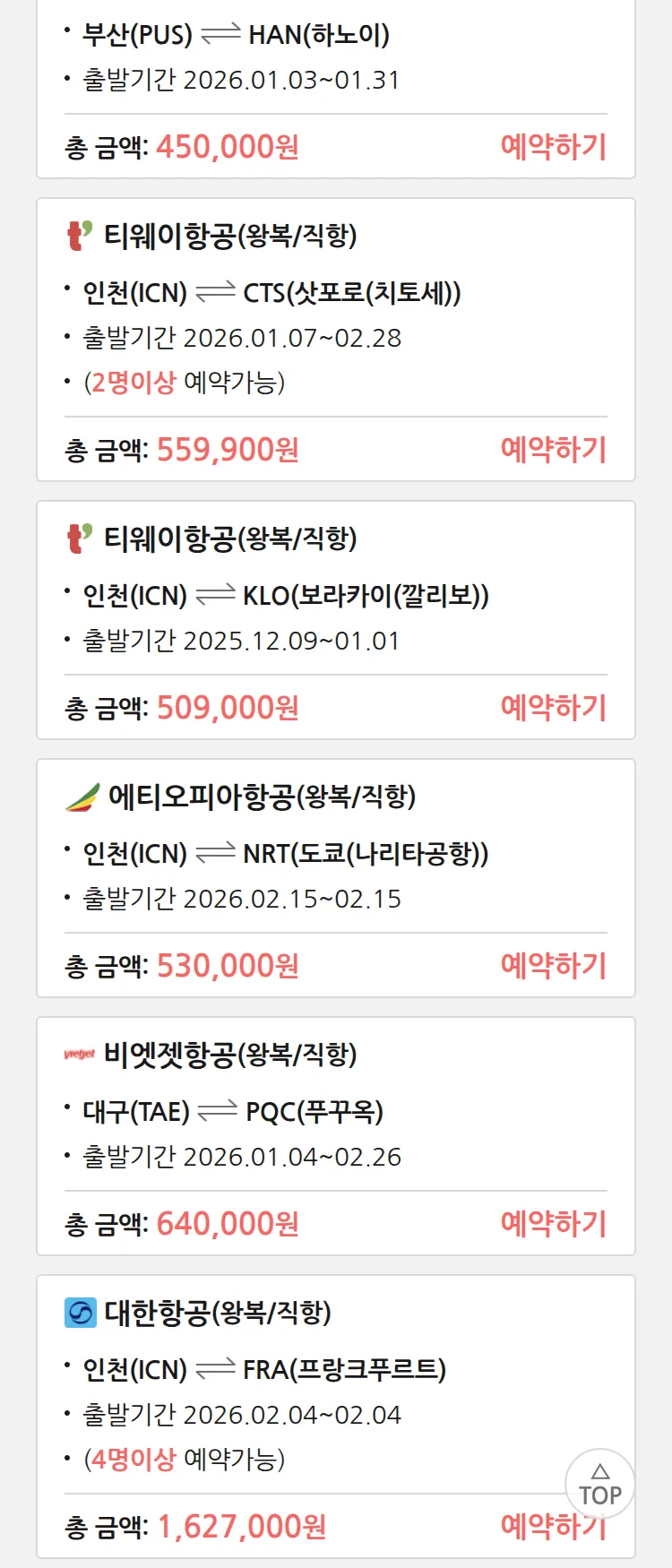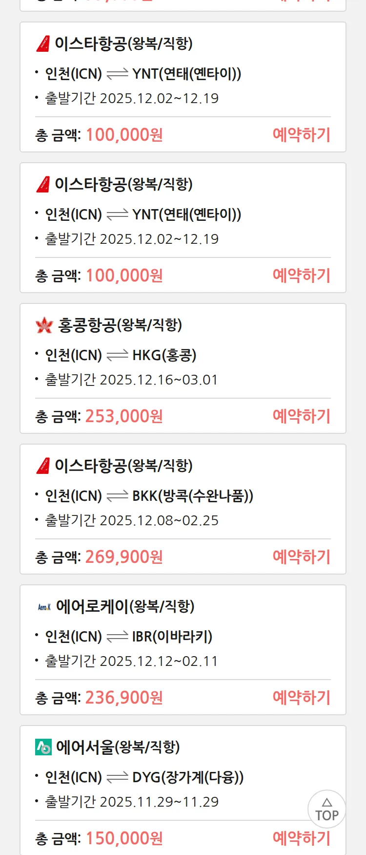 (11월 27일(목)) 땡처리 99.9% 확정 패키지