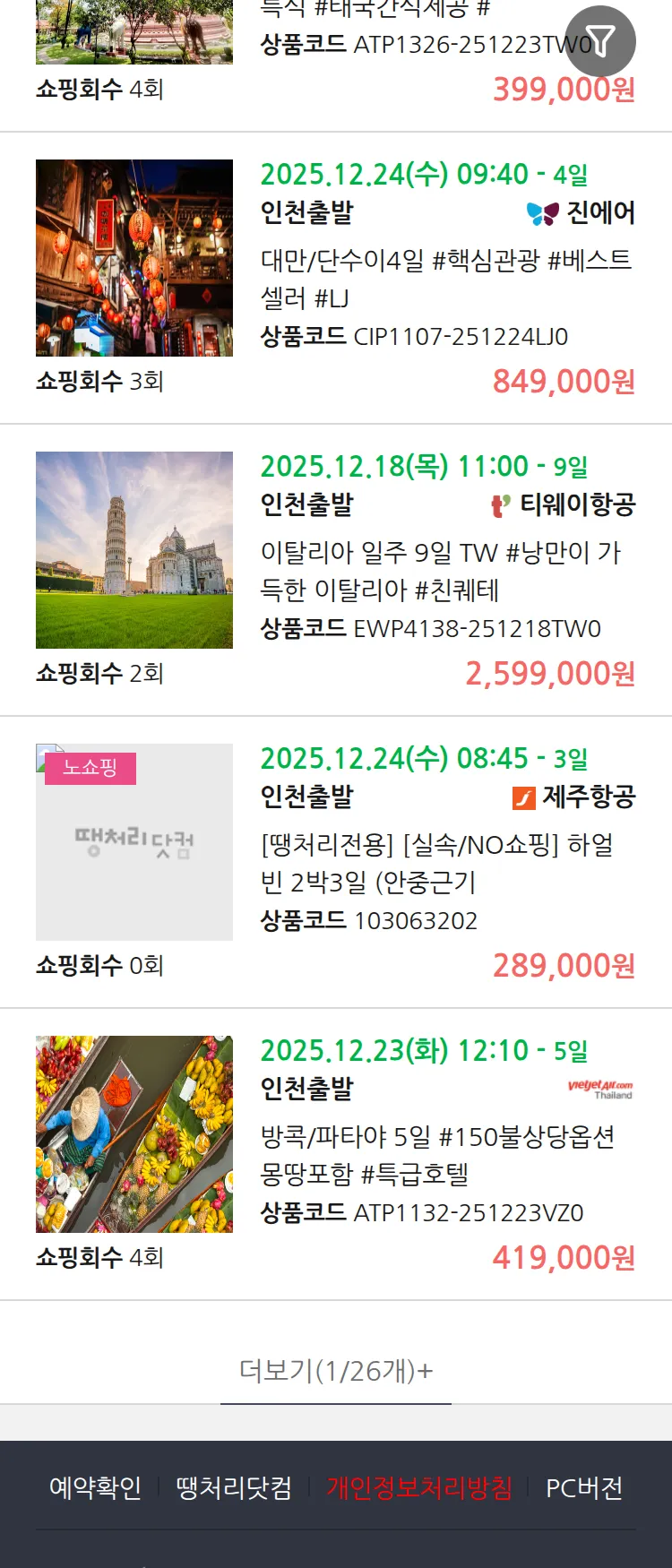 (11월 29일(토)) 땡처리 연휴 패키지 패키지