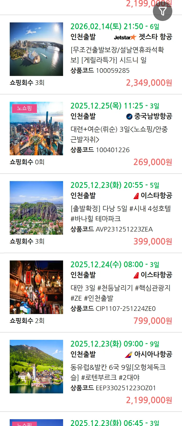 (11월 30일(일)) 땡처리 99.9% 확정 패키지