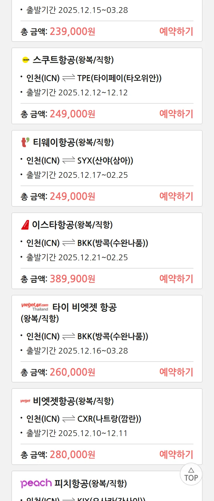 (11월 28일(금)) 모두투어 동남아 특가 항공권