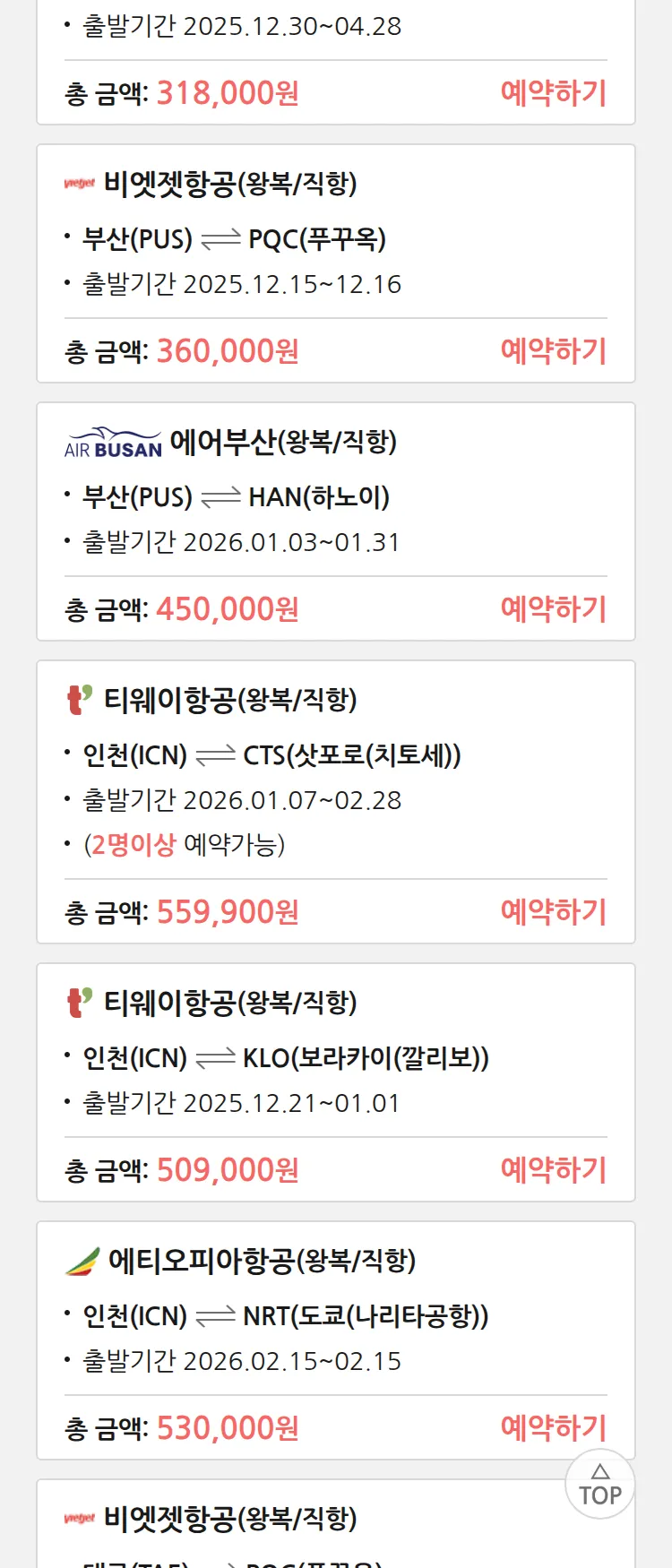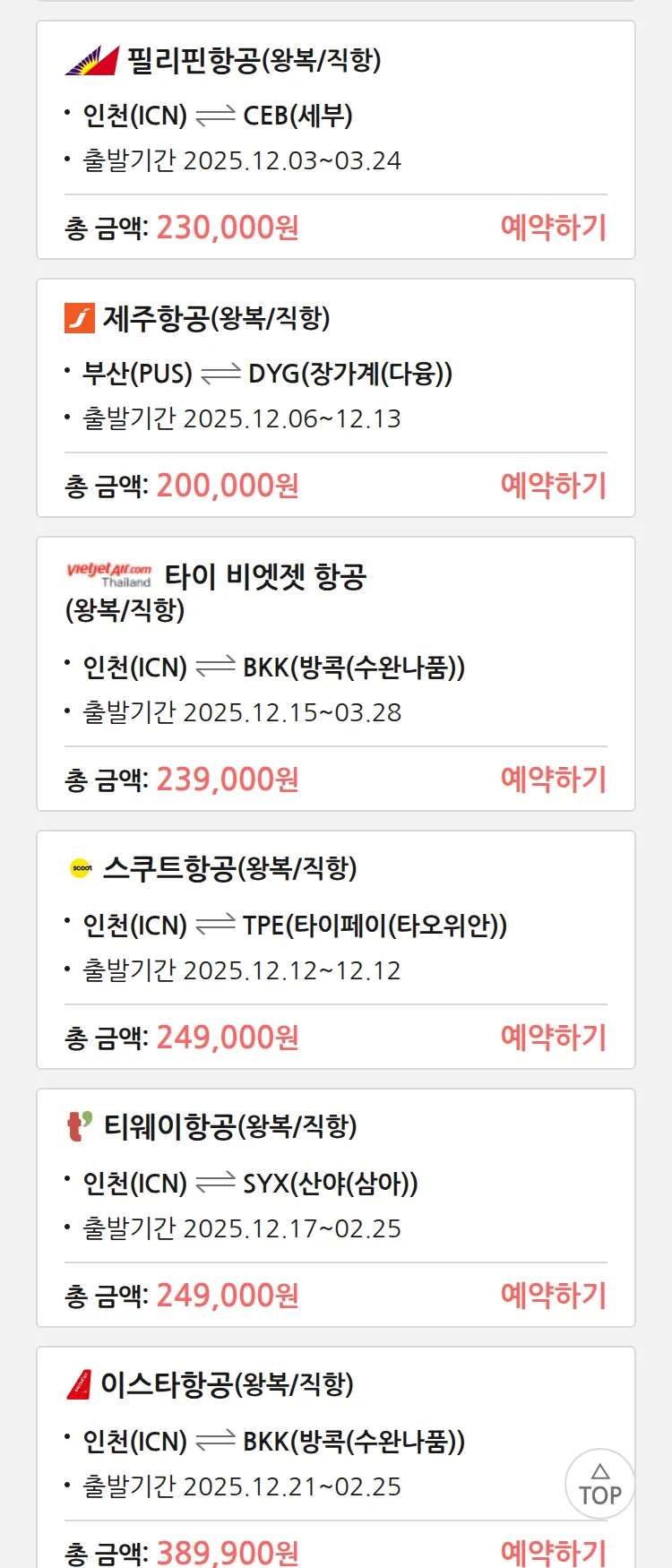 (11월 29일(토)) 모두투어 동남아 특가 항공권