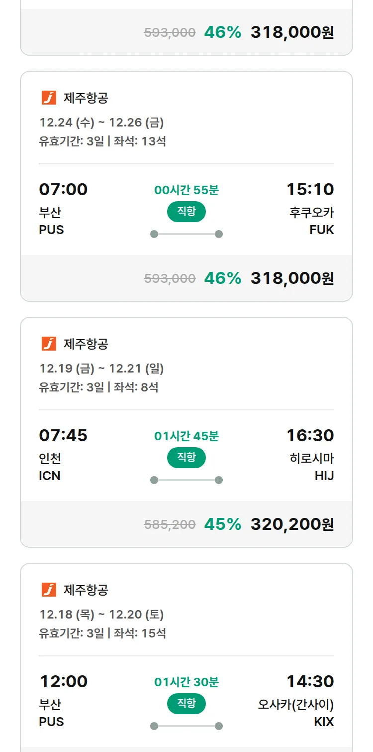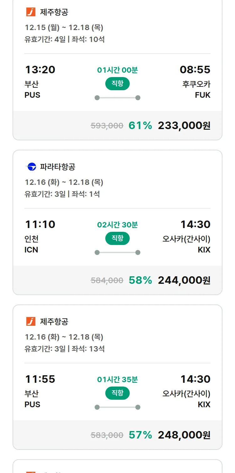 (11월 29일(토)) 모두투어 일본 특가 항공권