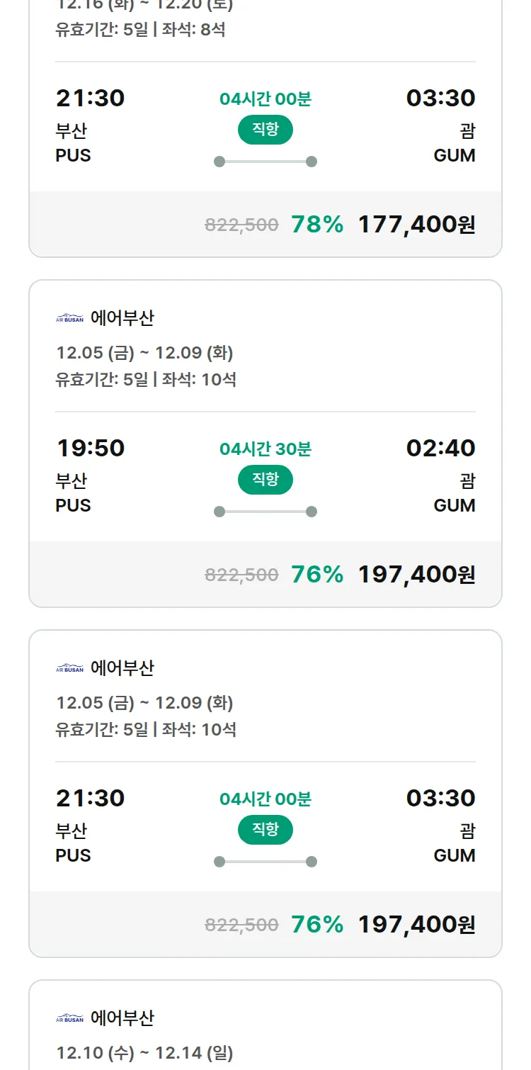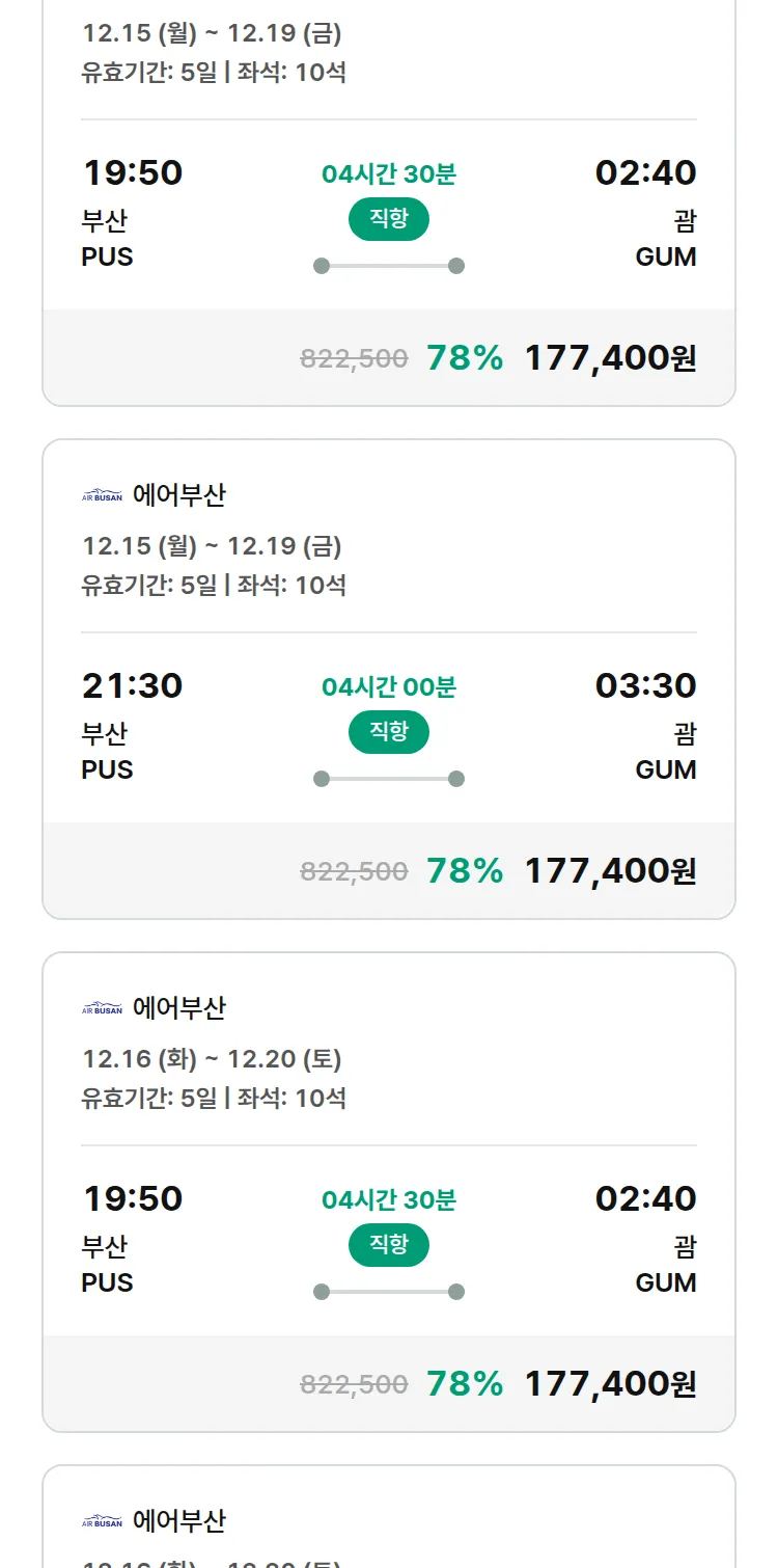 (12월1일(월)) 땡처리 특가 항공권