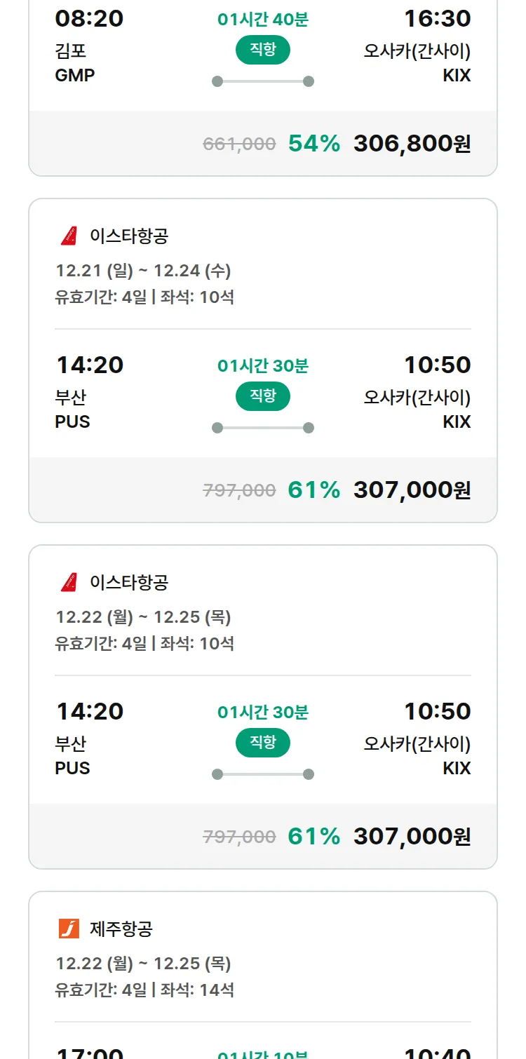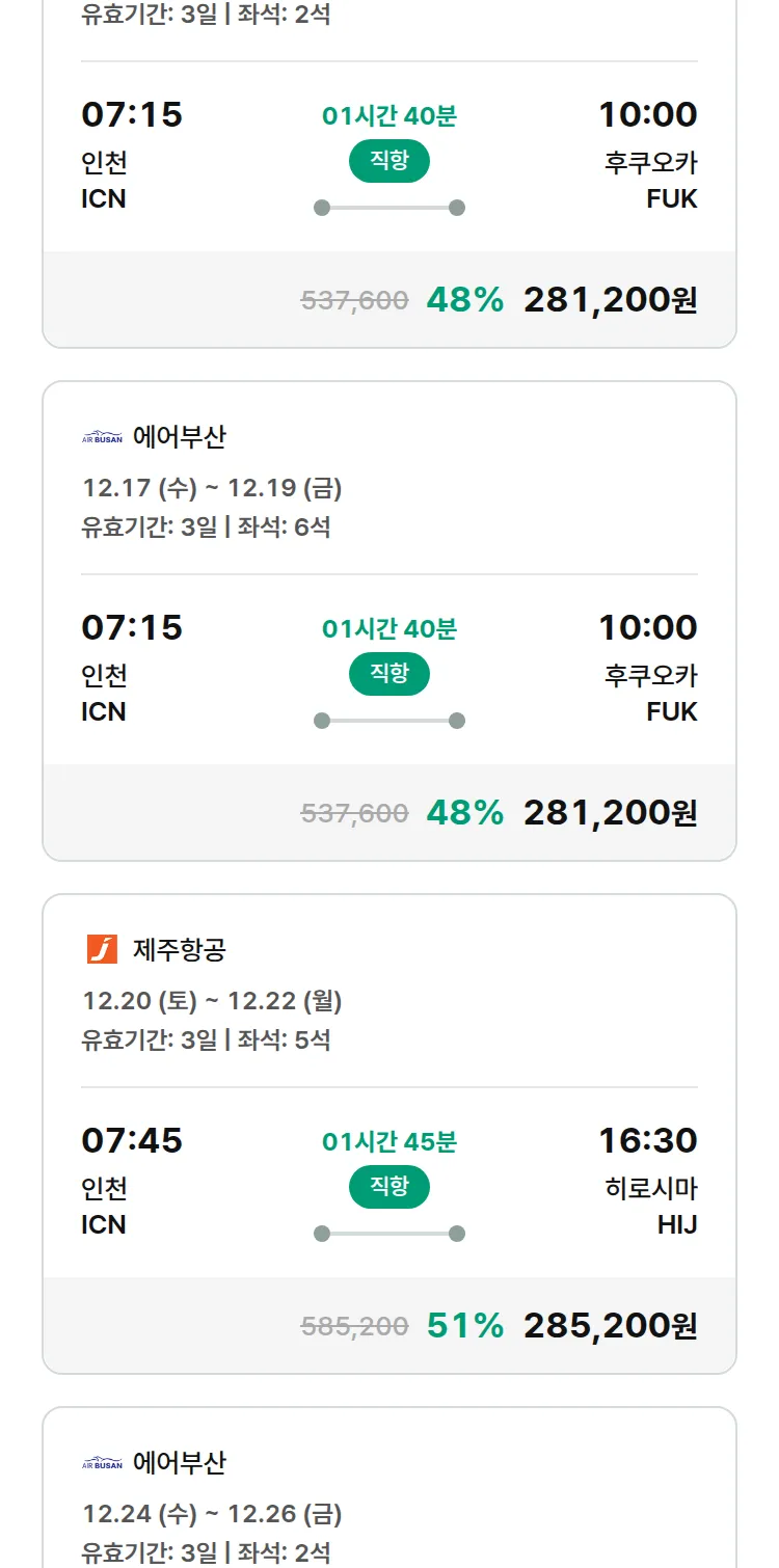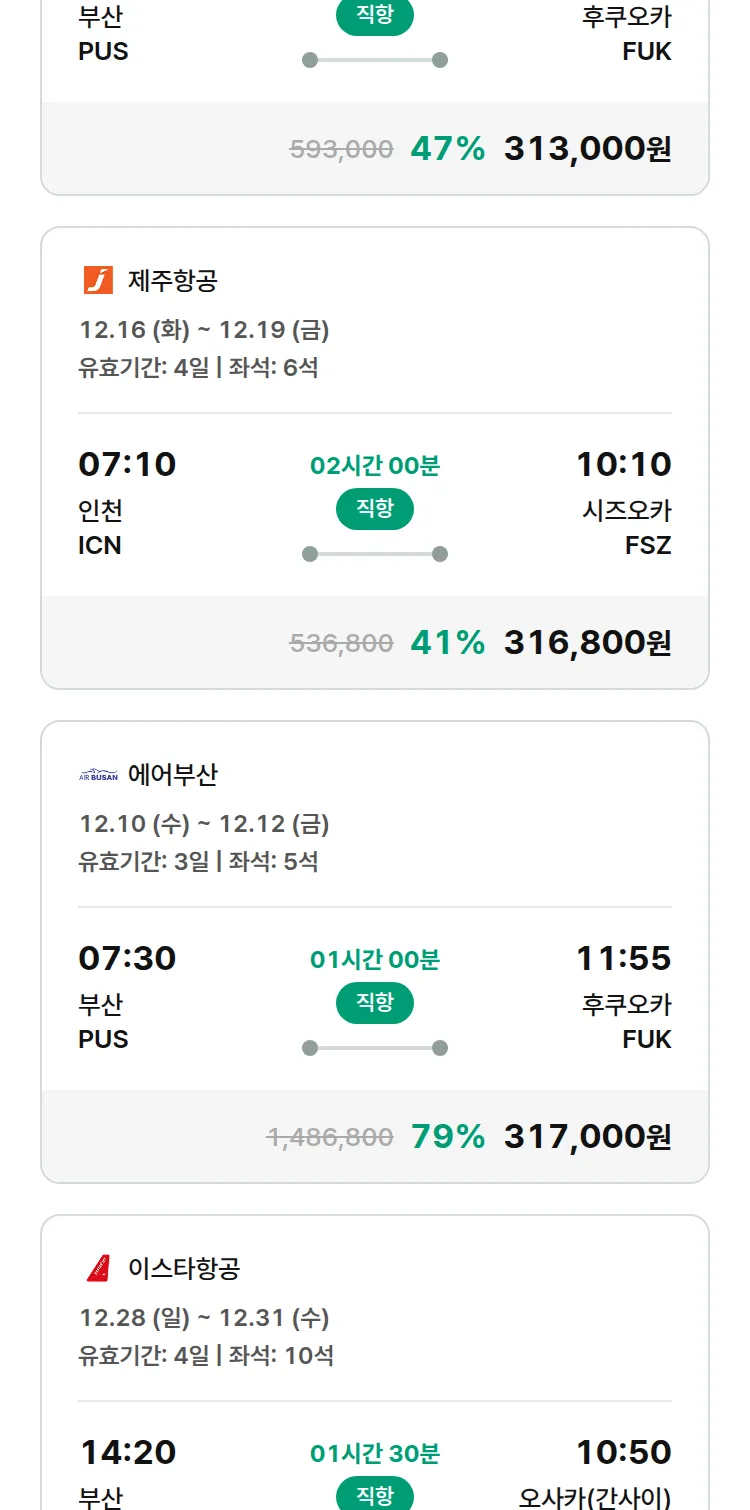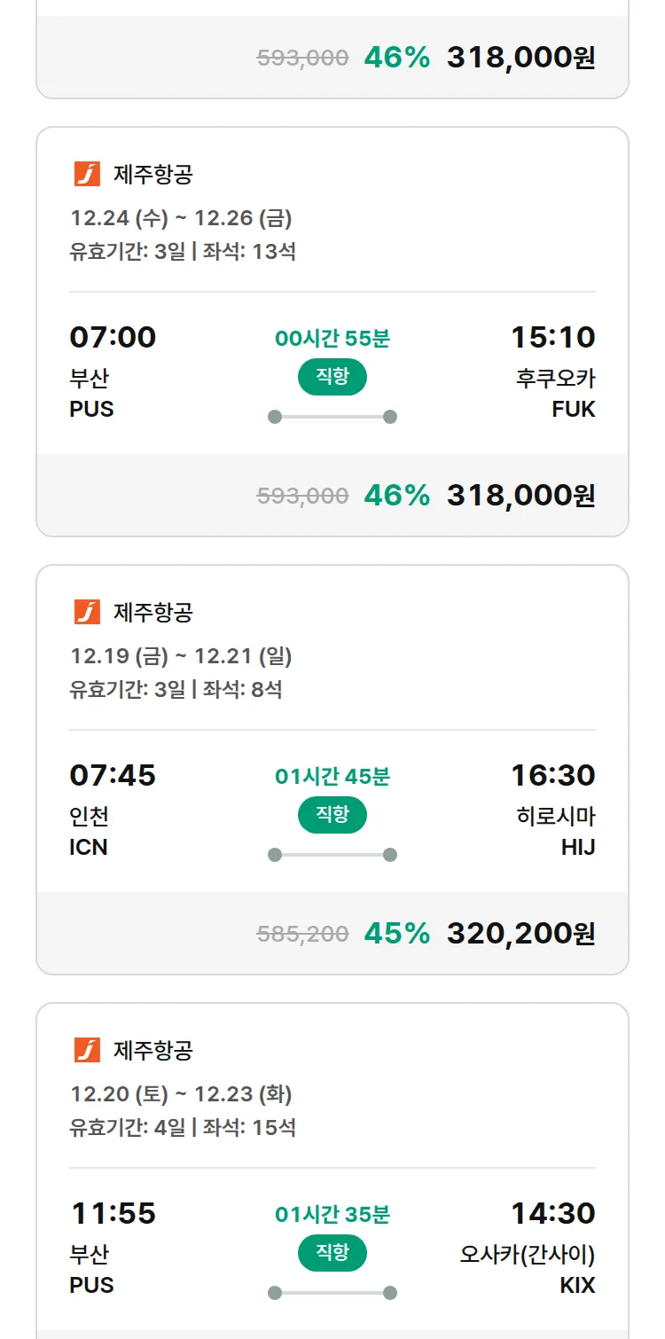 (11월 30일(일)) 모두투어 일본 특가 항공권