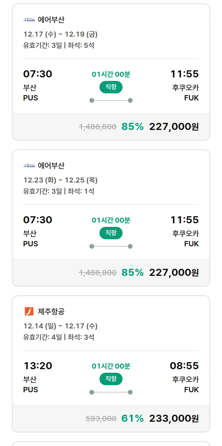 (11월 30일(일)) 땡처리 99.9% 확정 패키지
