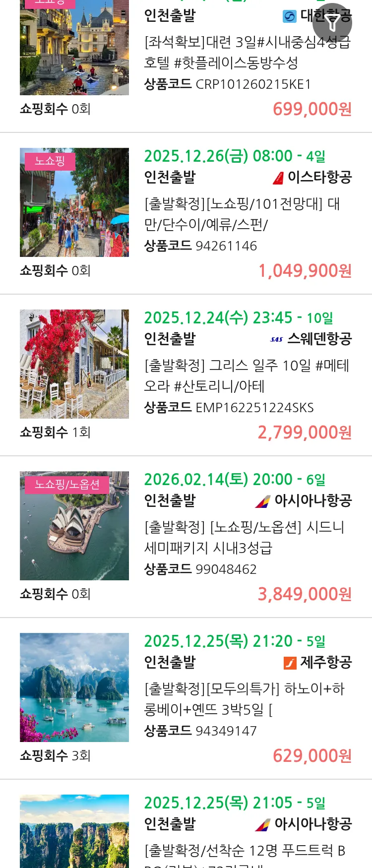 (11월1일(토)) 땡처리 99.9% 확정 패키지