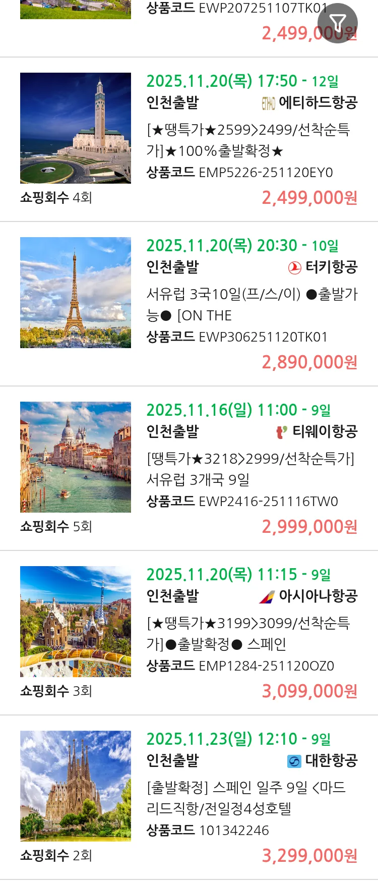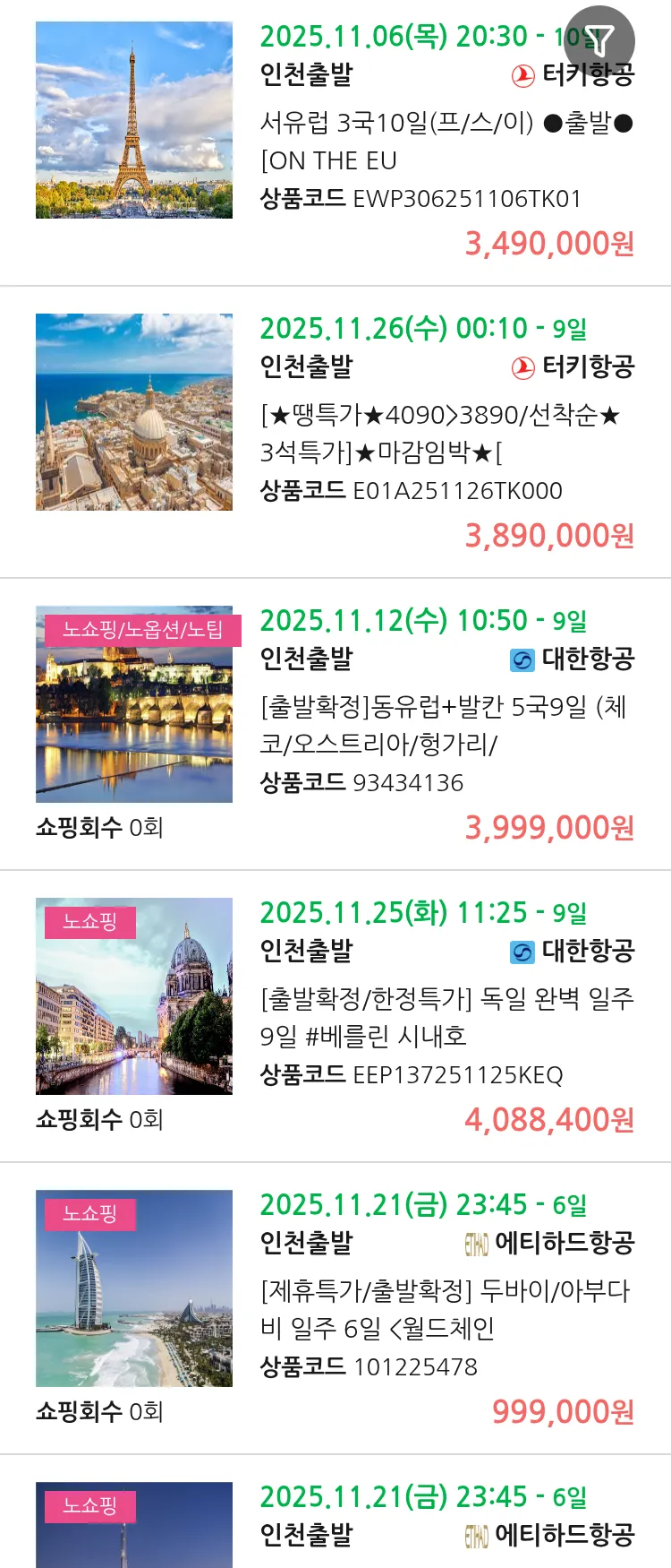 (11월1일(토)) 땡처리 유럽 긴급 패키지