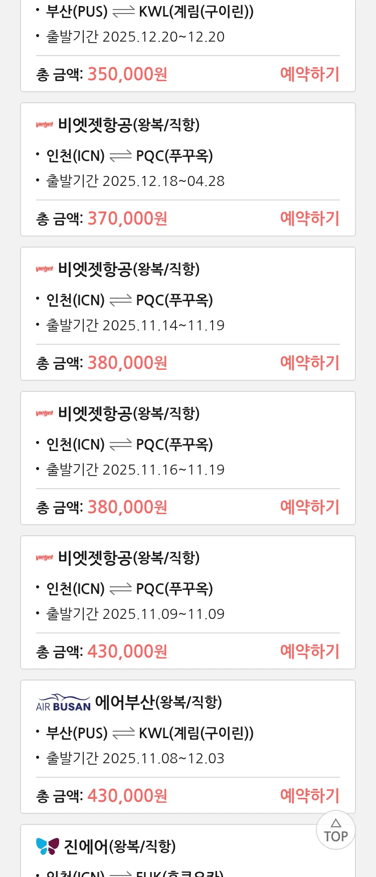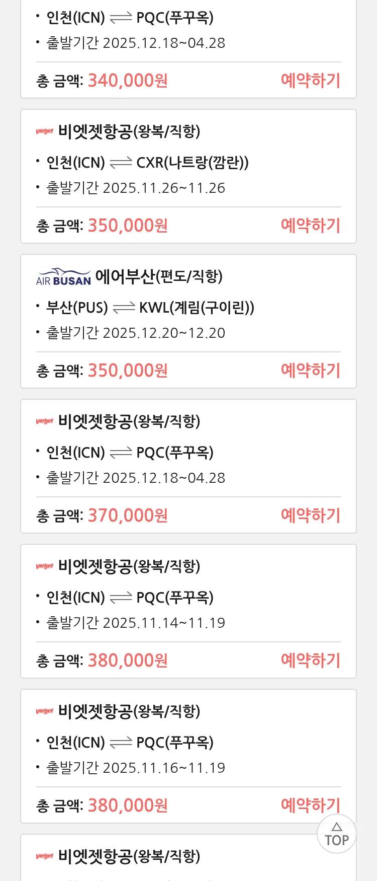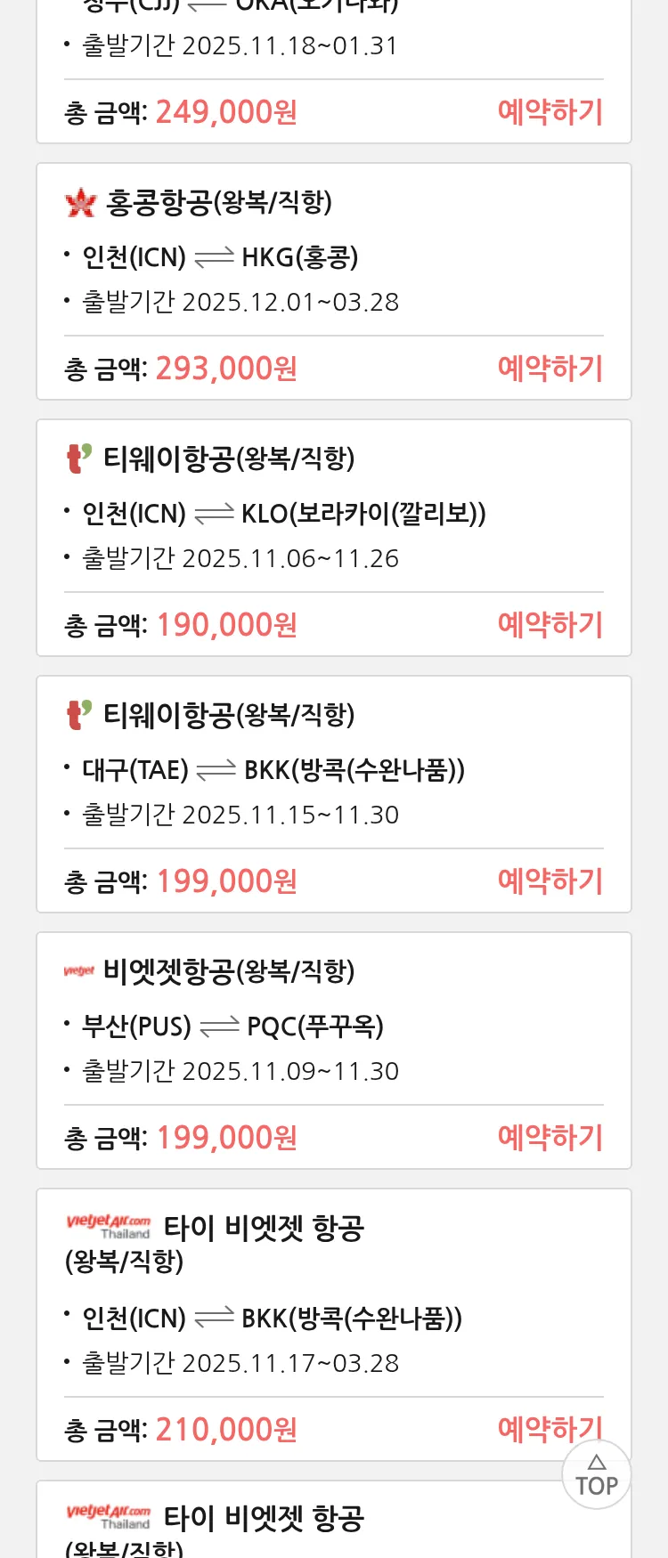 (11월1일(토)) 모두투어 동남아 특가 항공권