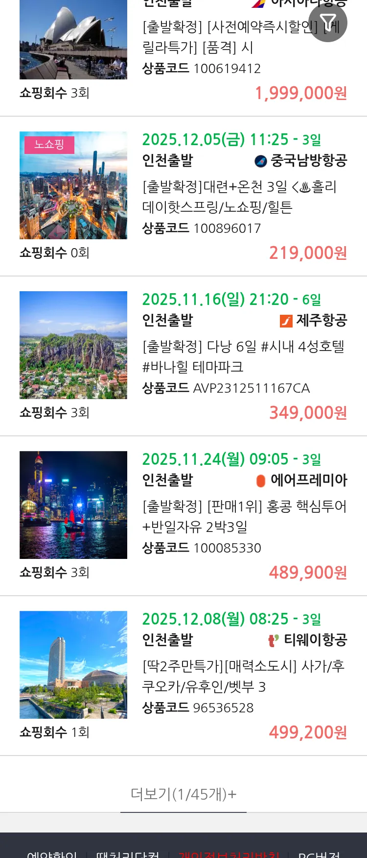 (10월 31일(금)) 땡처리 연휴 패키지 패키지
