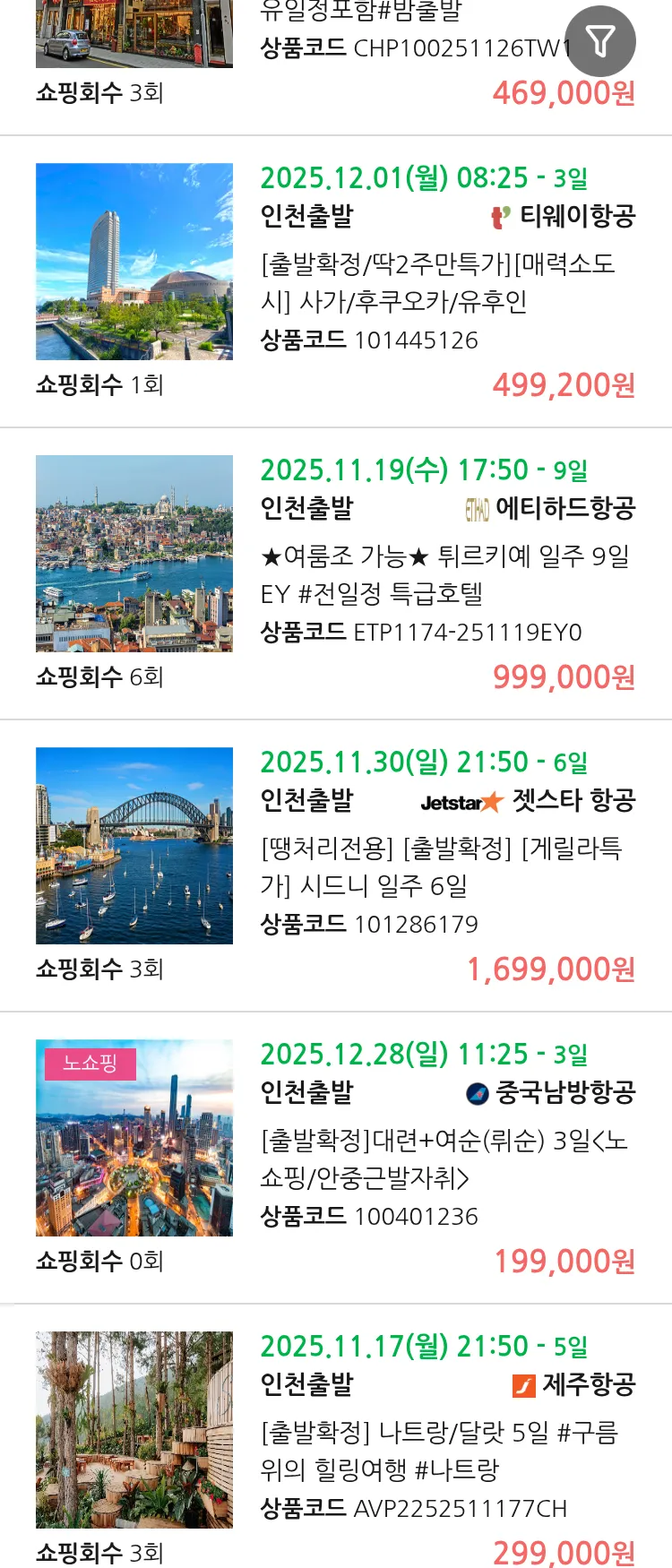 (11월1일(토)) 땡처리 99.9% 확정 패키지