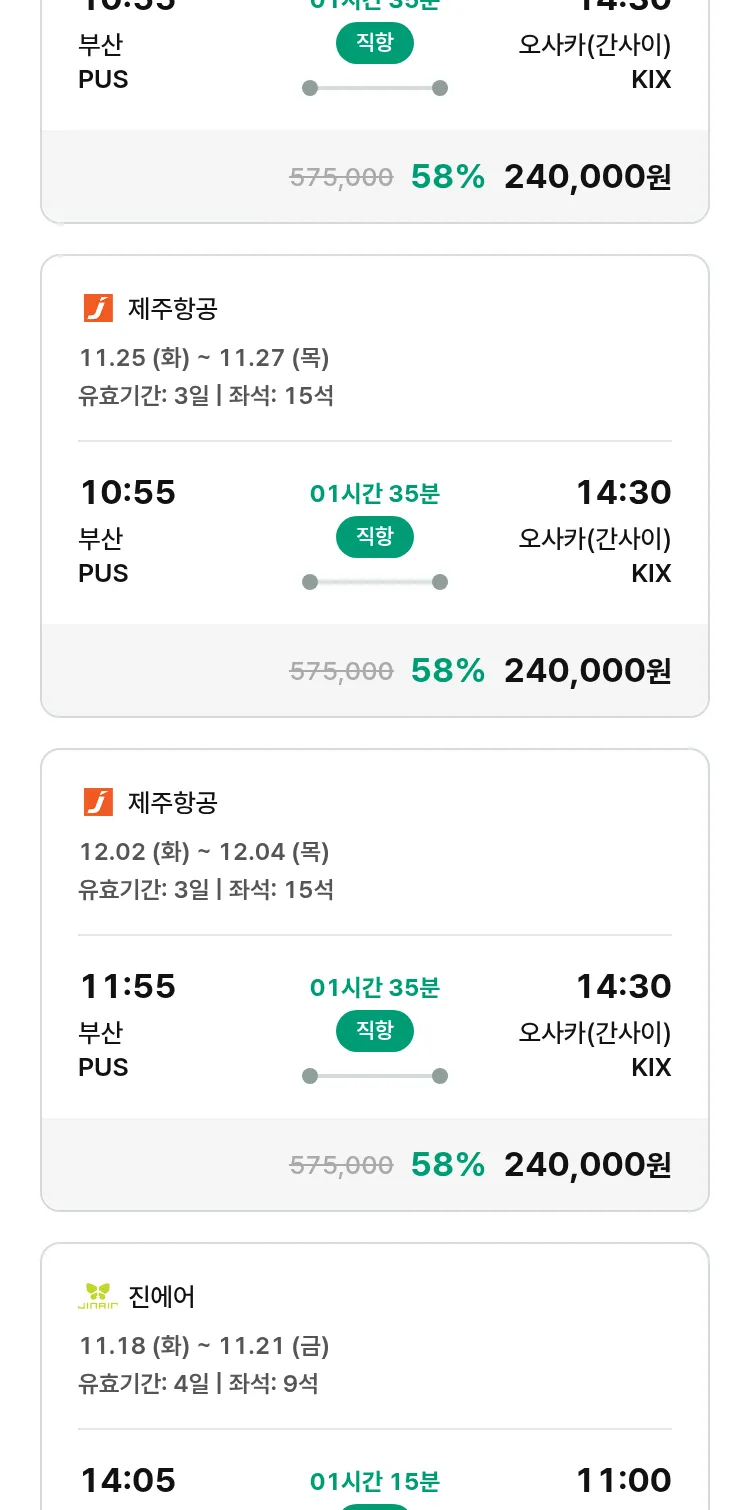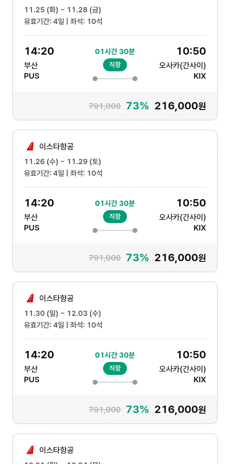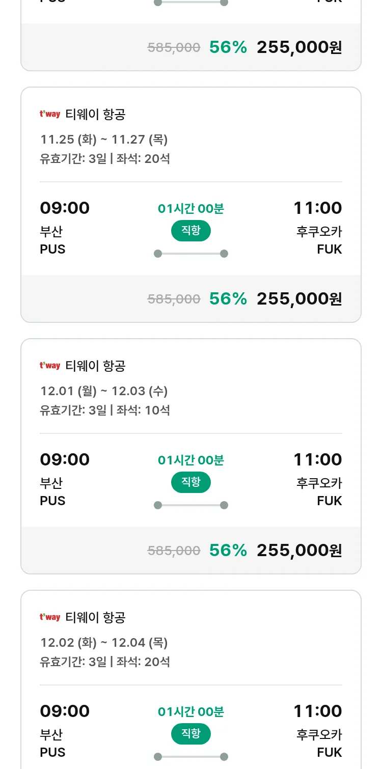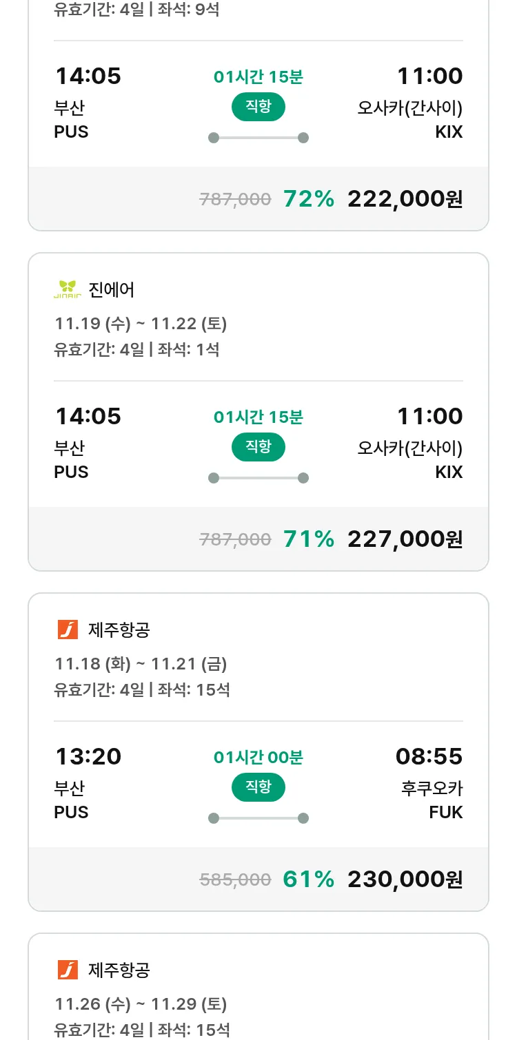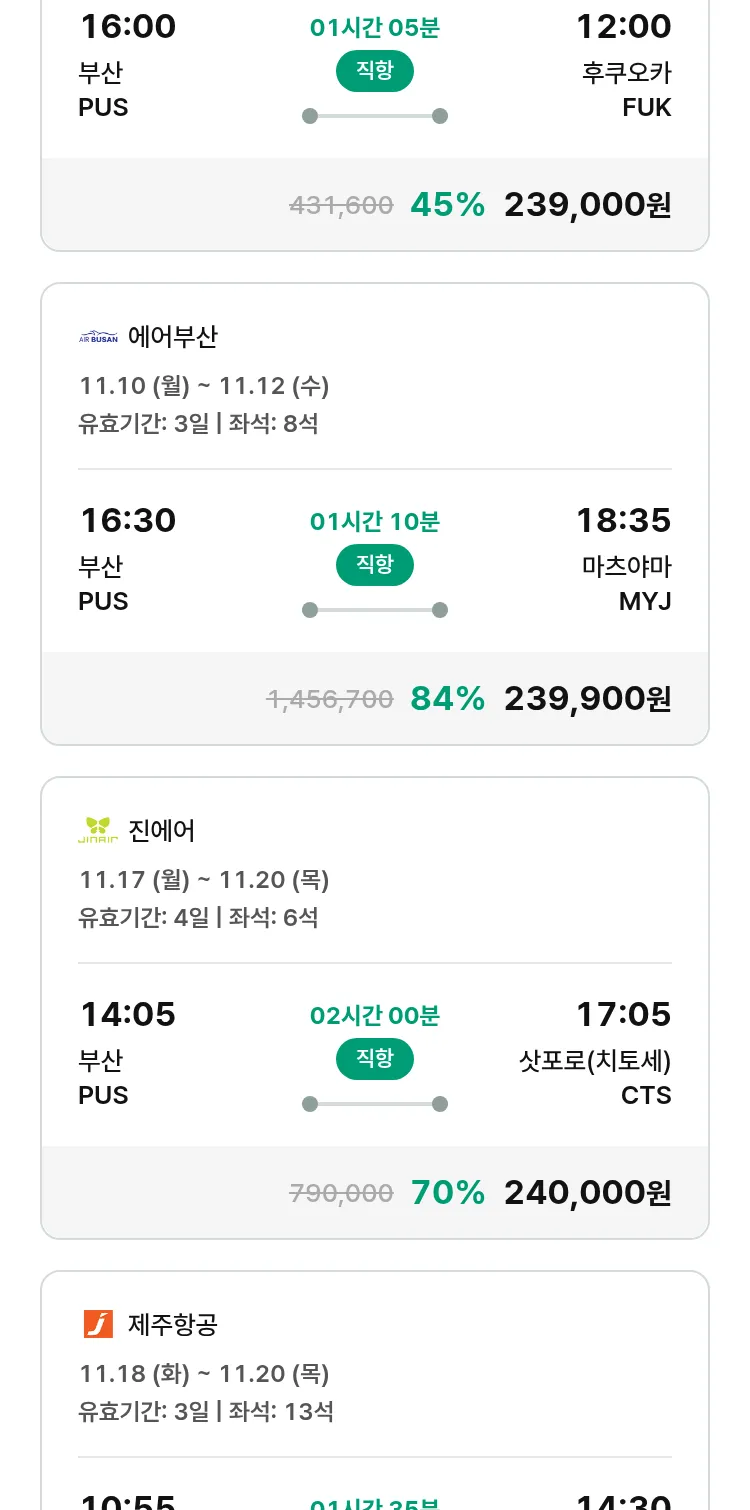 (11월2일(일)) 땡처리 특가 항공권