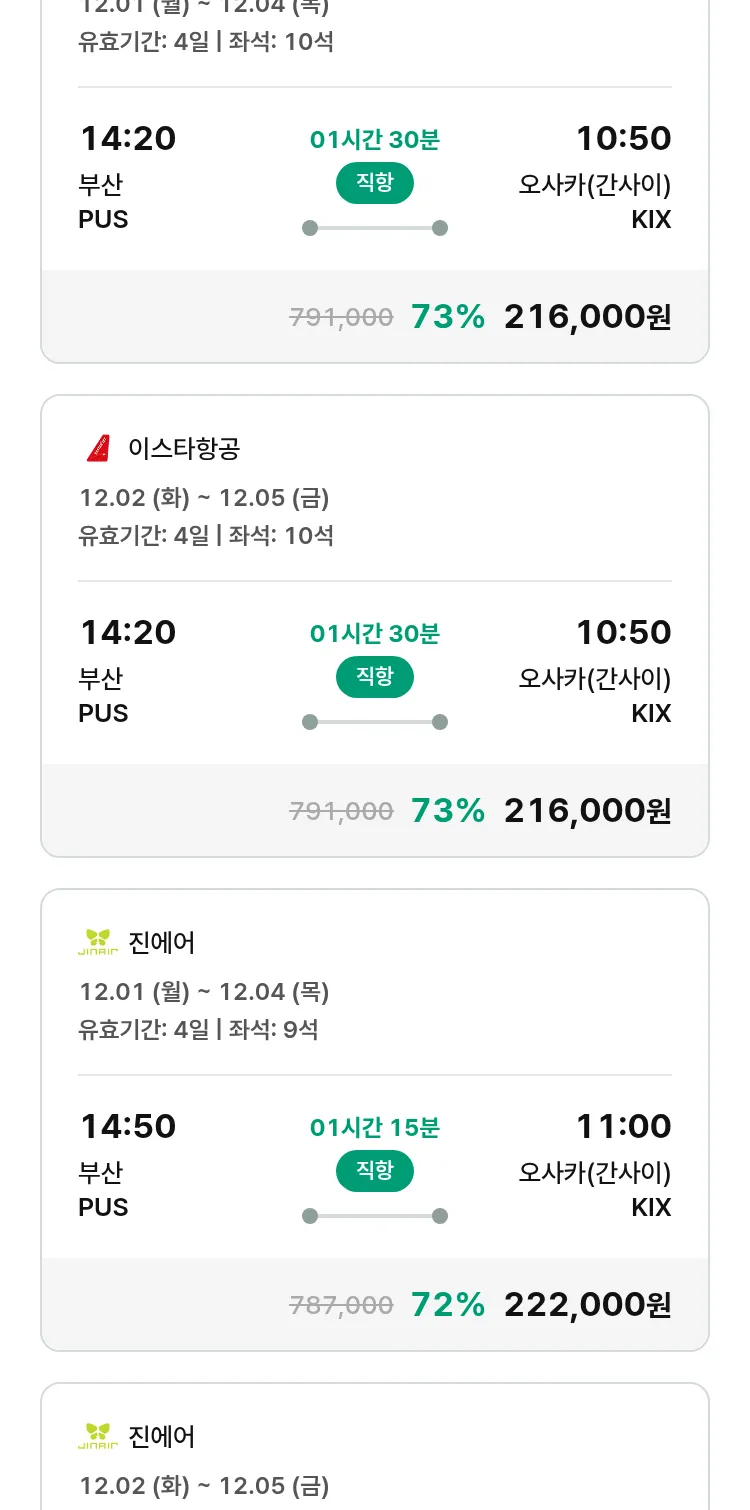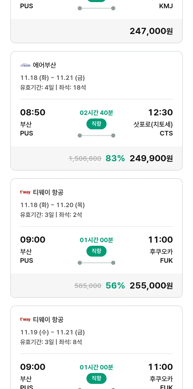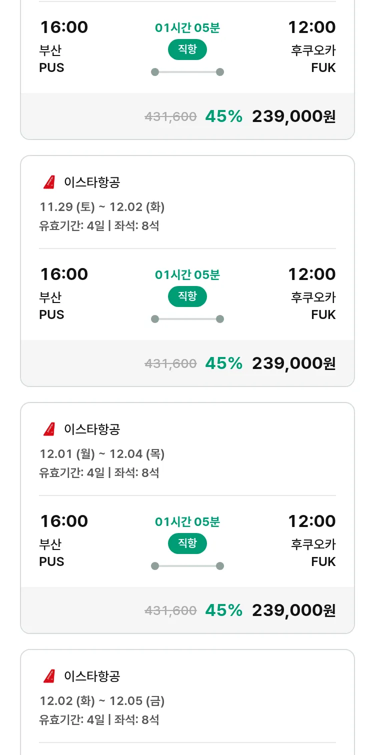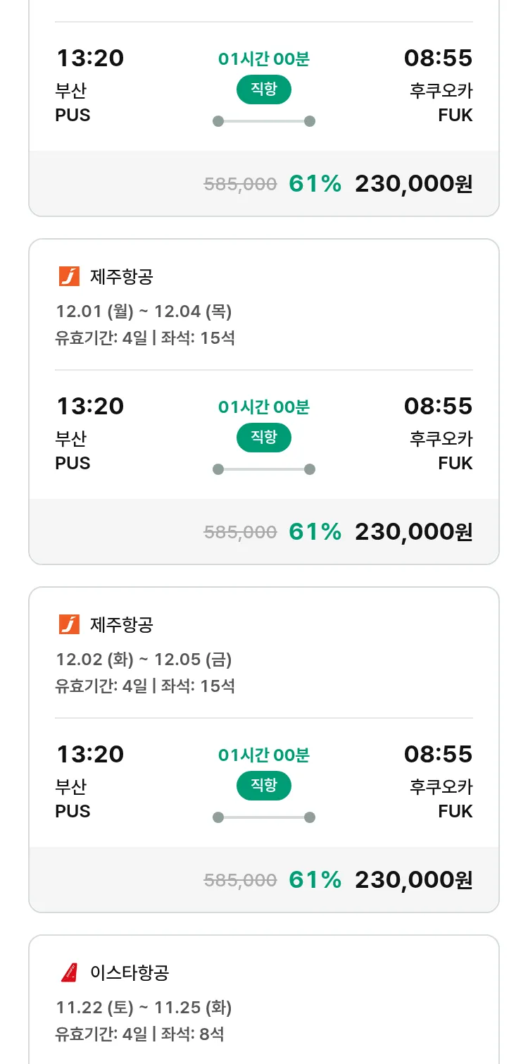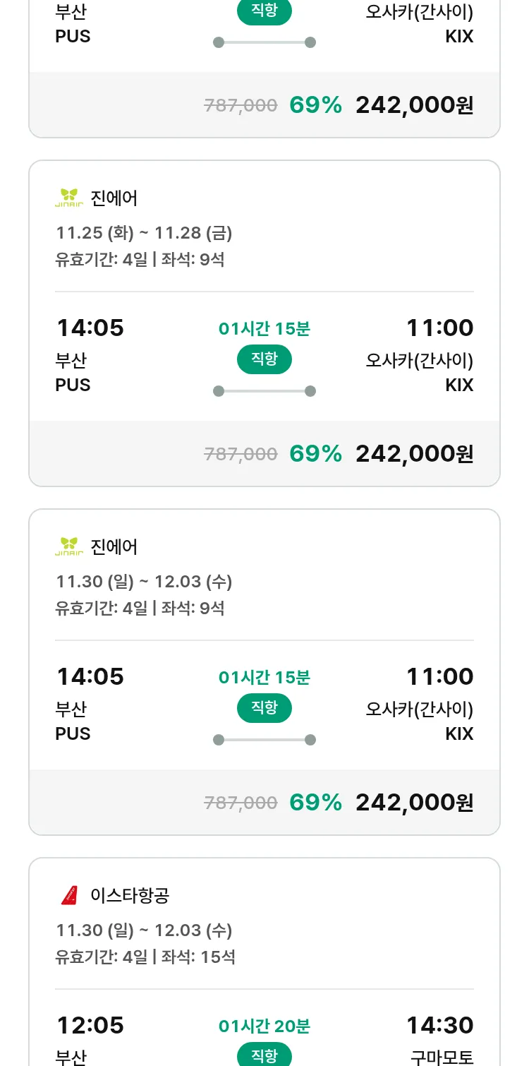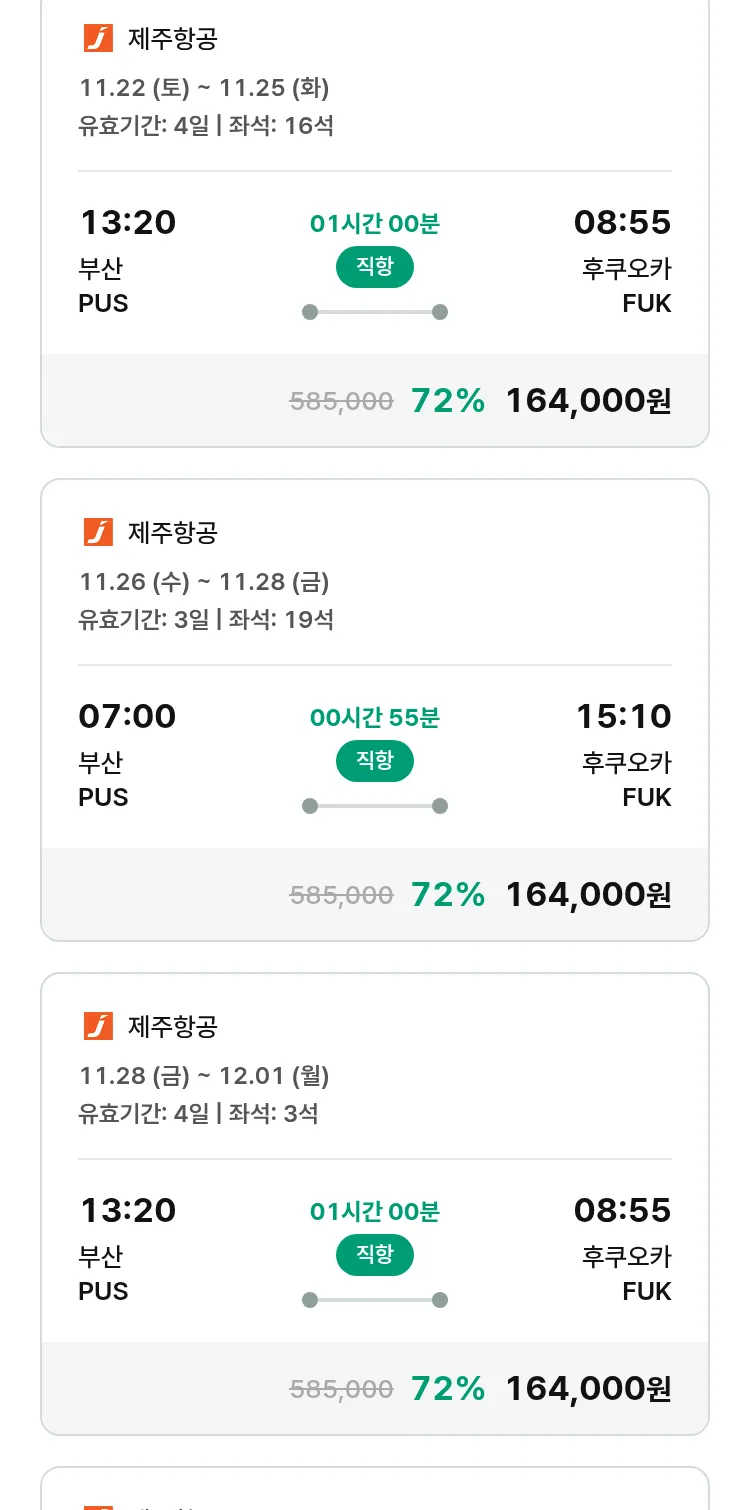 (11월2일(일)) 땡처리 특가 항공권