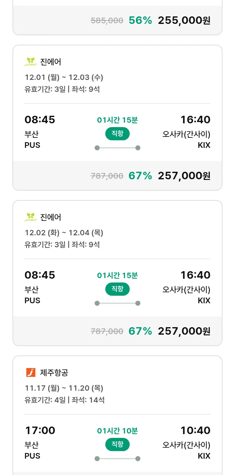 (11월1일(토)) 모두투어 일본 특가 항공권