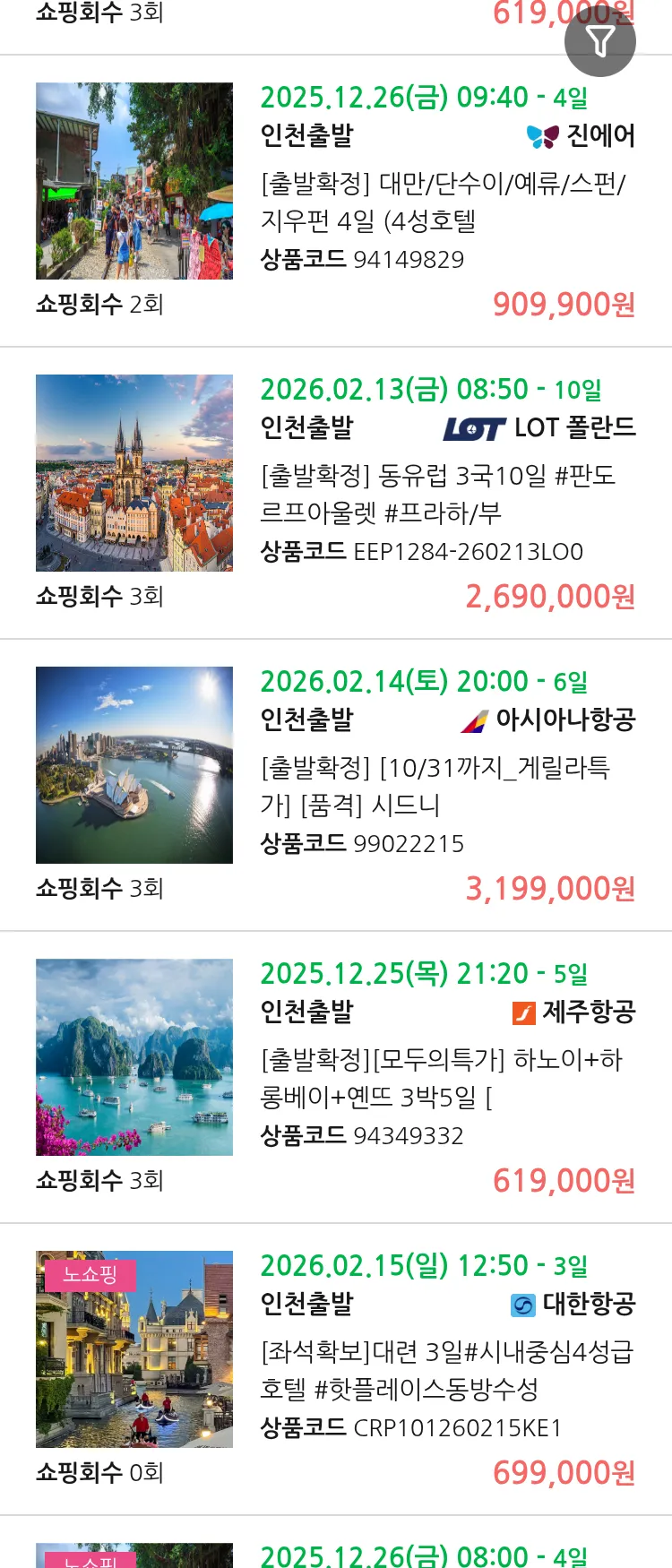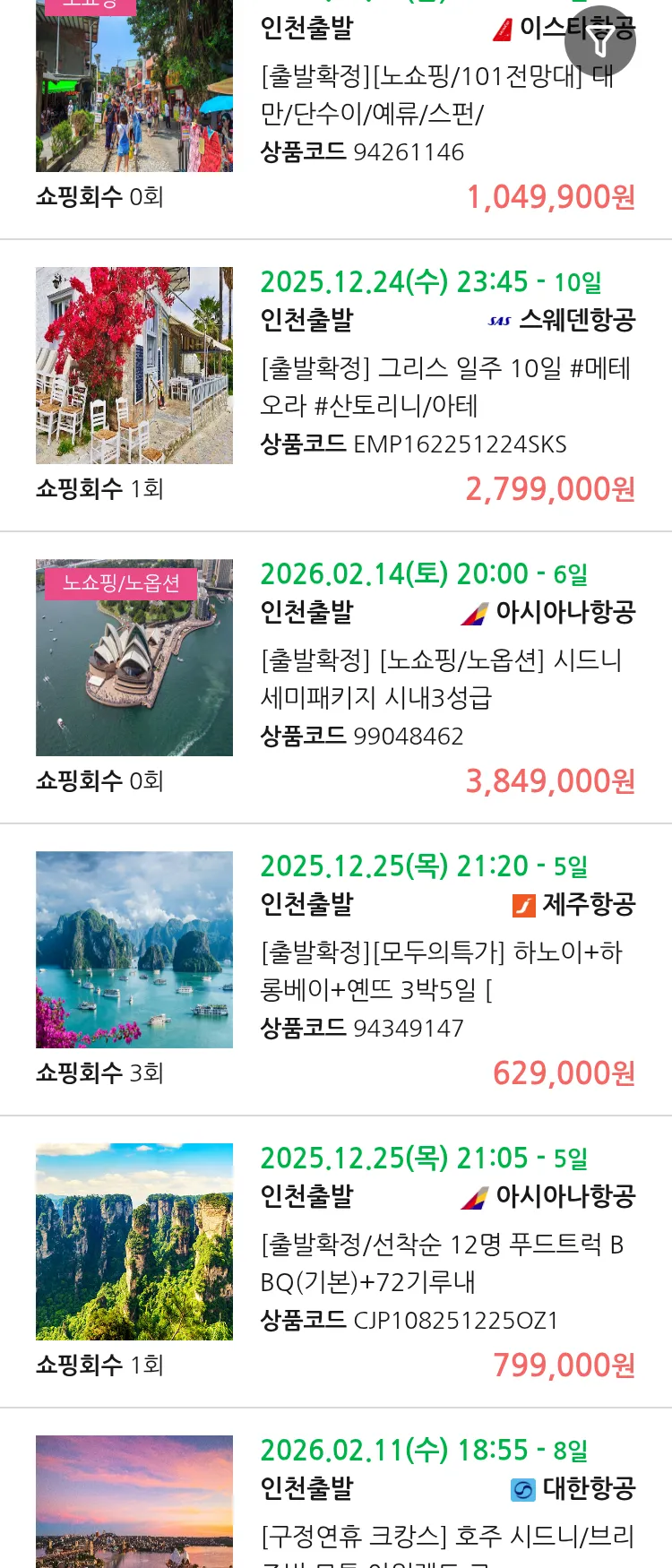 (11월3일(월)) 땡처리 99.9% 확정 패키지