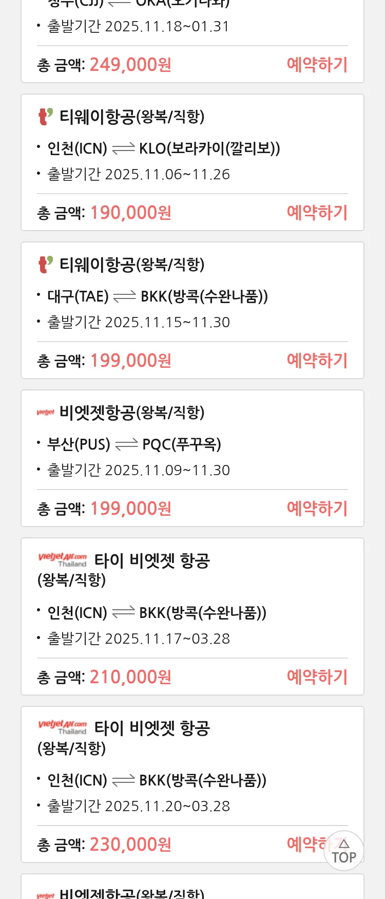 (11월3일(월)) 땡처리 특가 항공권