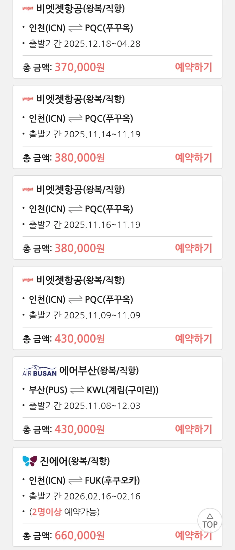 (11월2일(일)) 땡처리 99.9% 확정 패키지