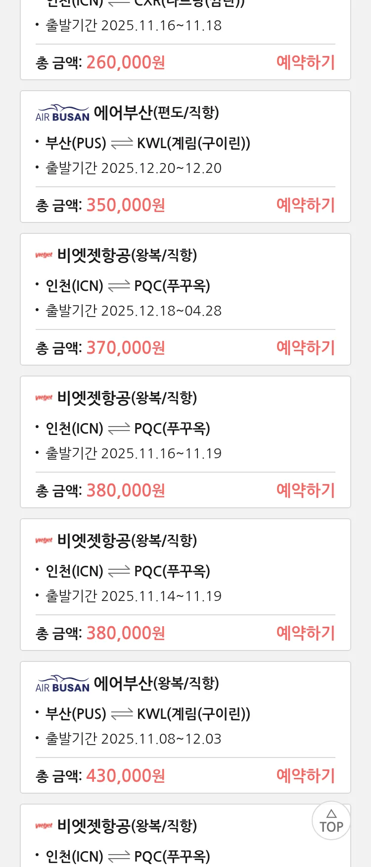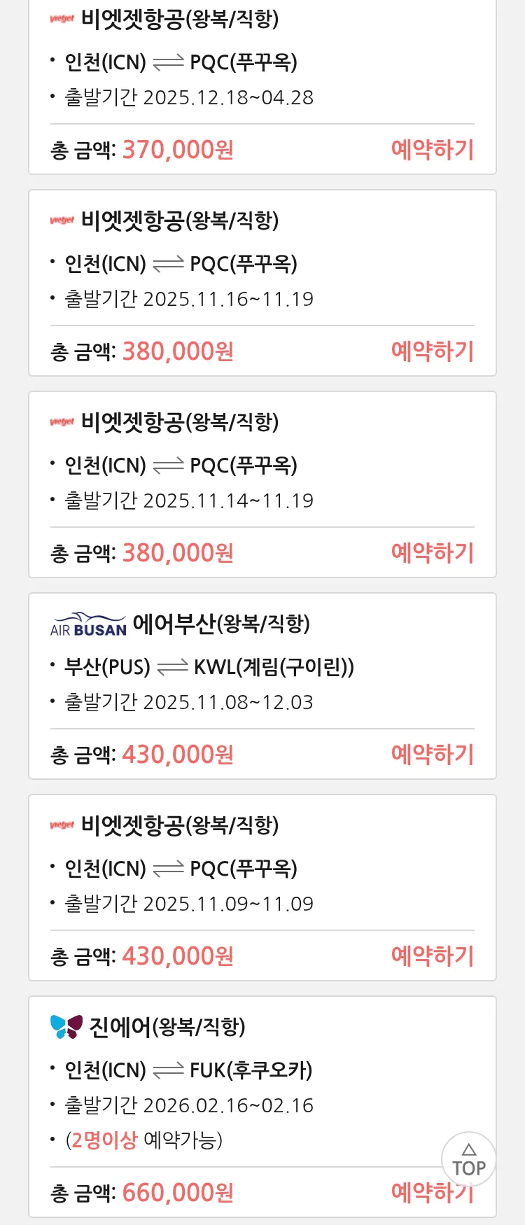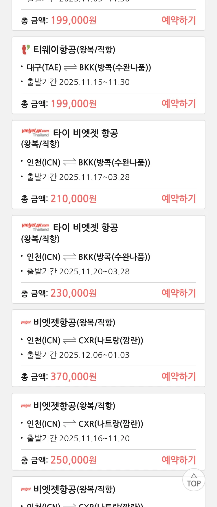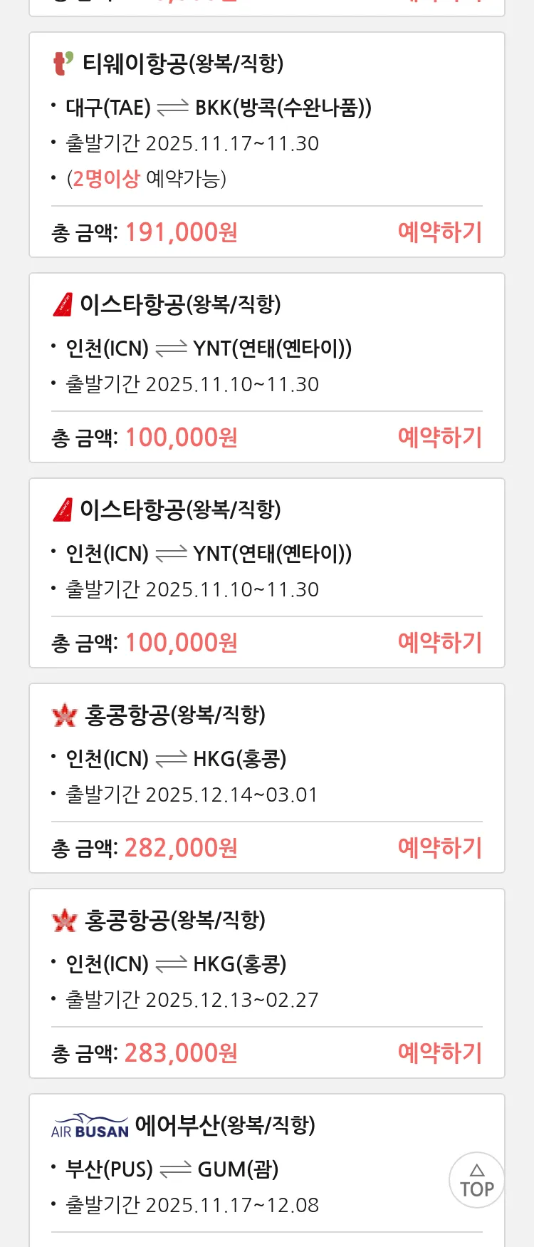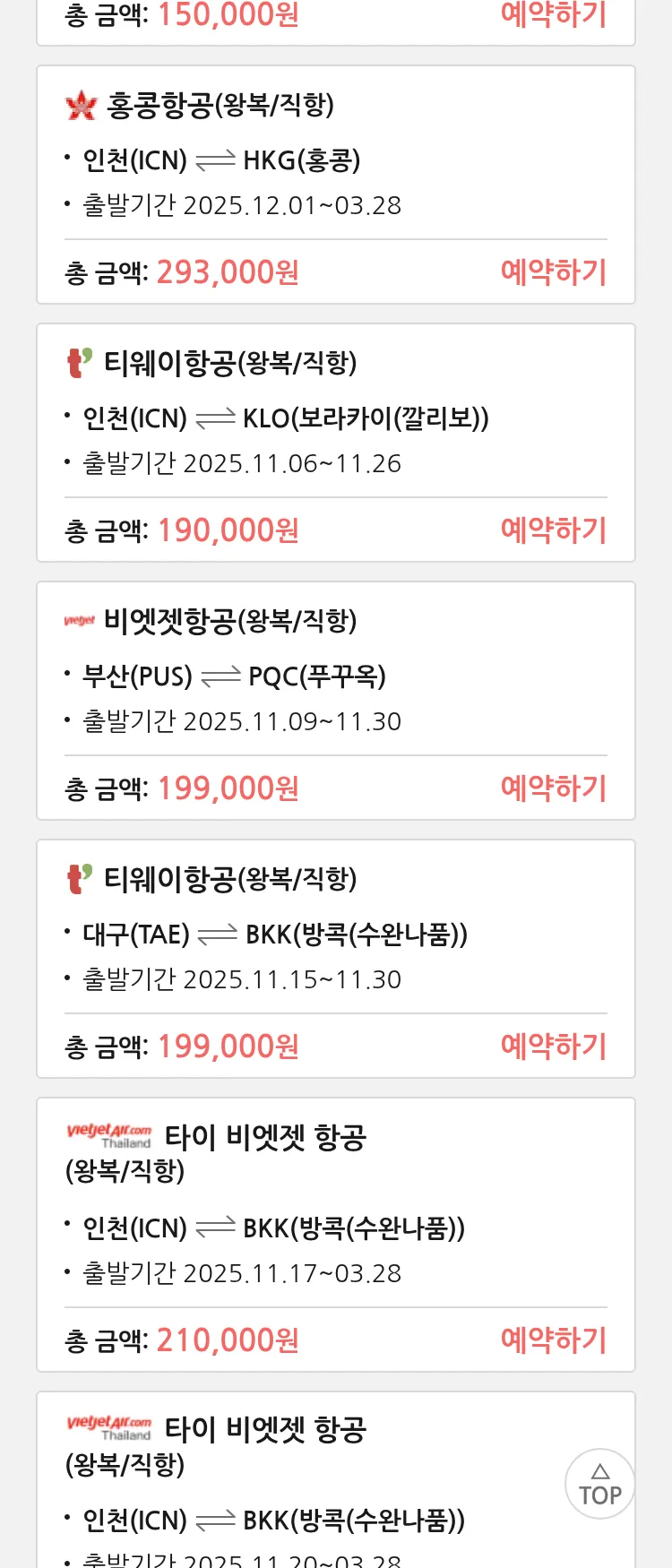 (11월2일(일)) 땡처리 특가 항공권
