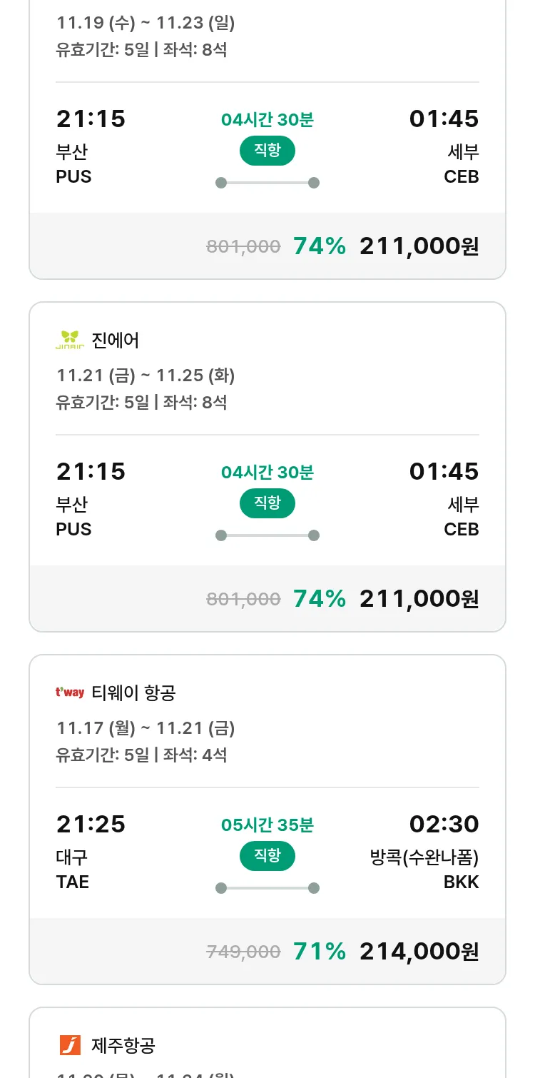 (11월2일(일)) 땡처리 99.9% 확정 패키지