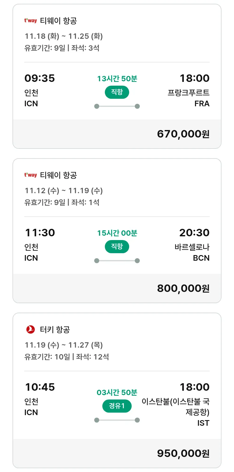 (11월4일(화)) 땡처리 유럽 긴급 패키지
