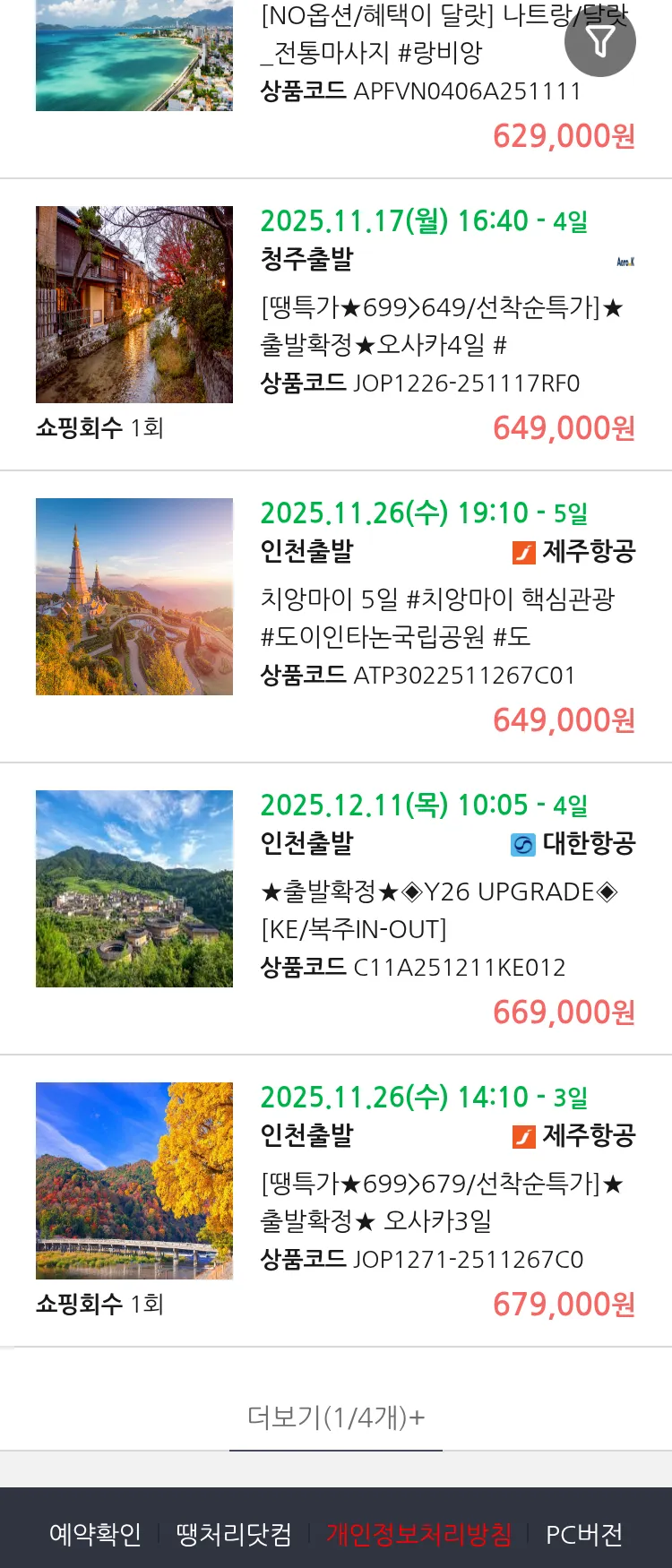 (11월4일(화)) 땡처리 99.9% 확정 패키지