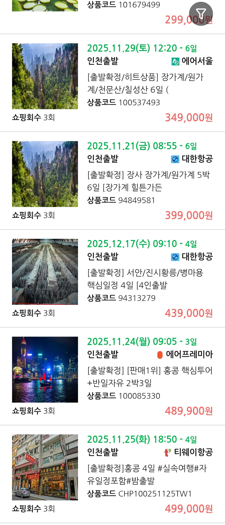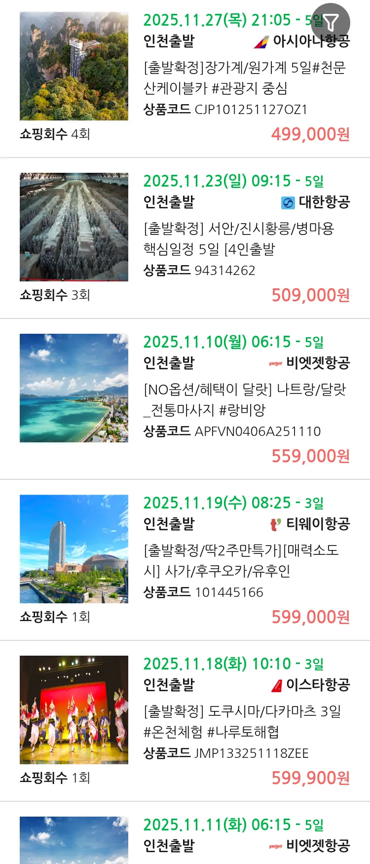 (11월5일(수)) 땡처리 99.9% 확정 패키지