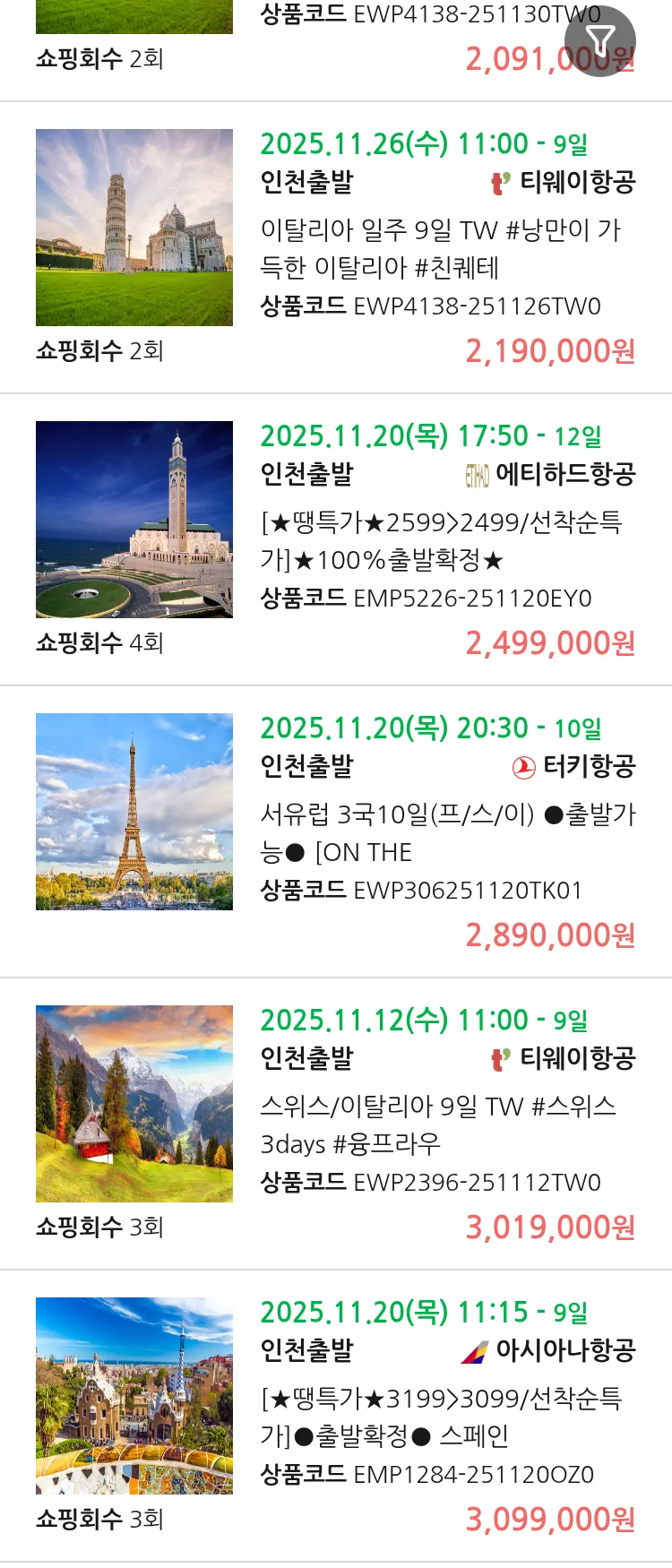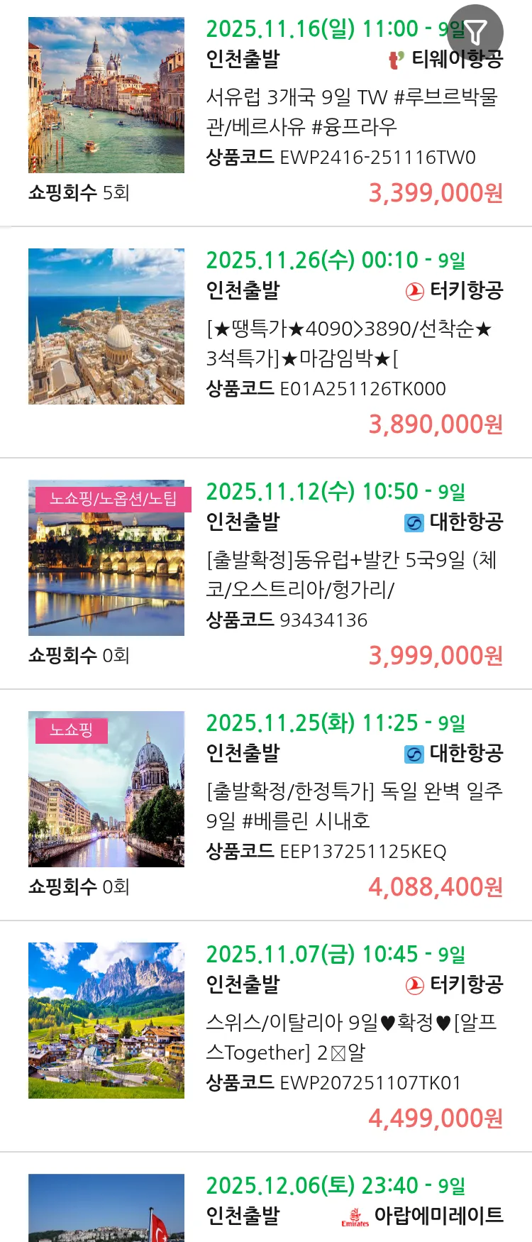 (11월4일(화)) 땡처리 유럽 긴급 패키지