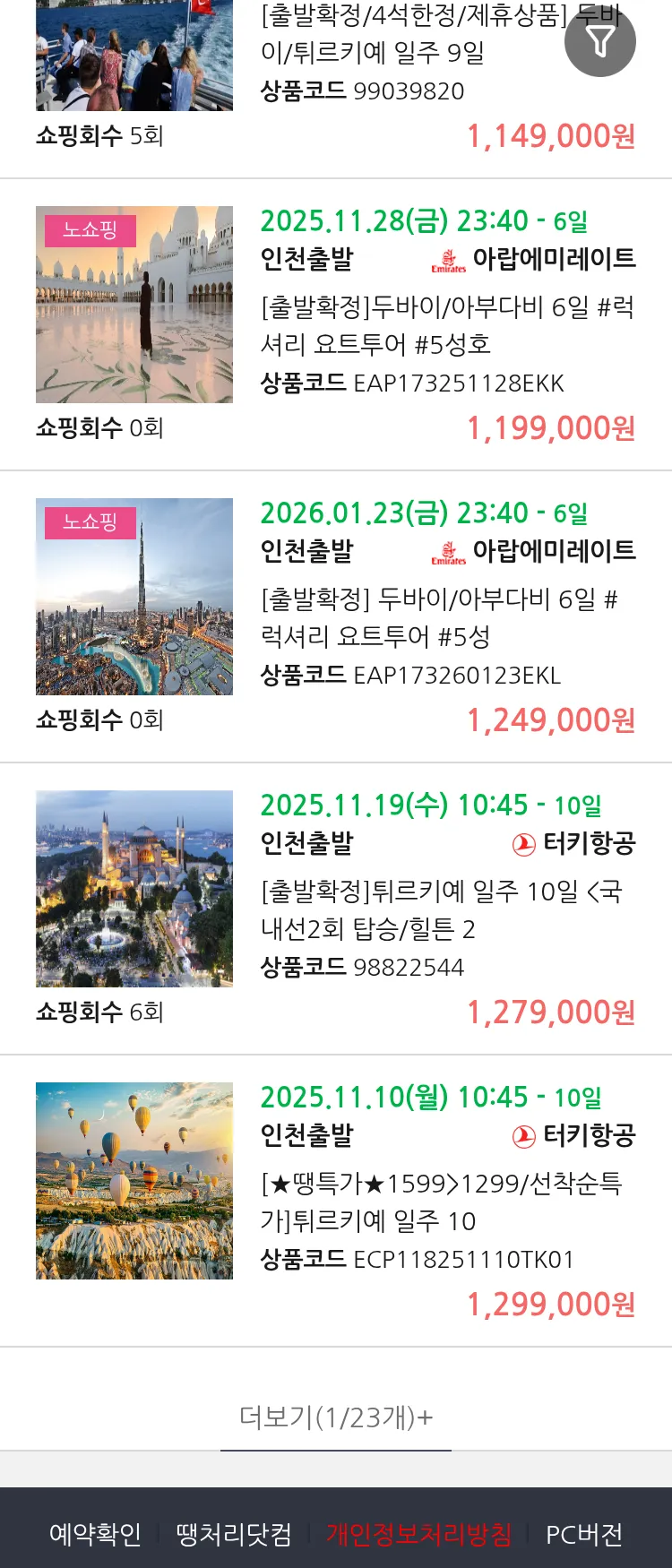 (11월5일(수)) 땡처리 99.9% 확정 패키지