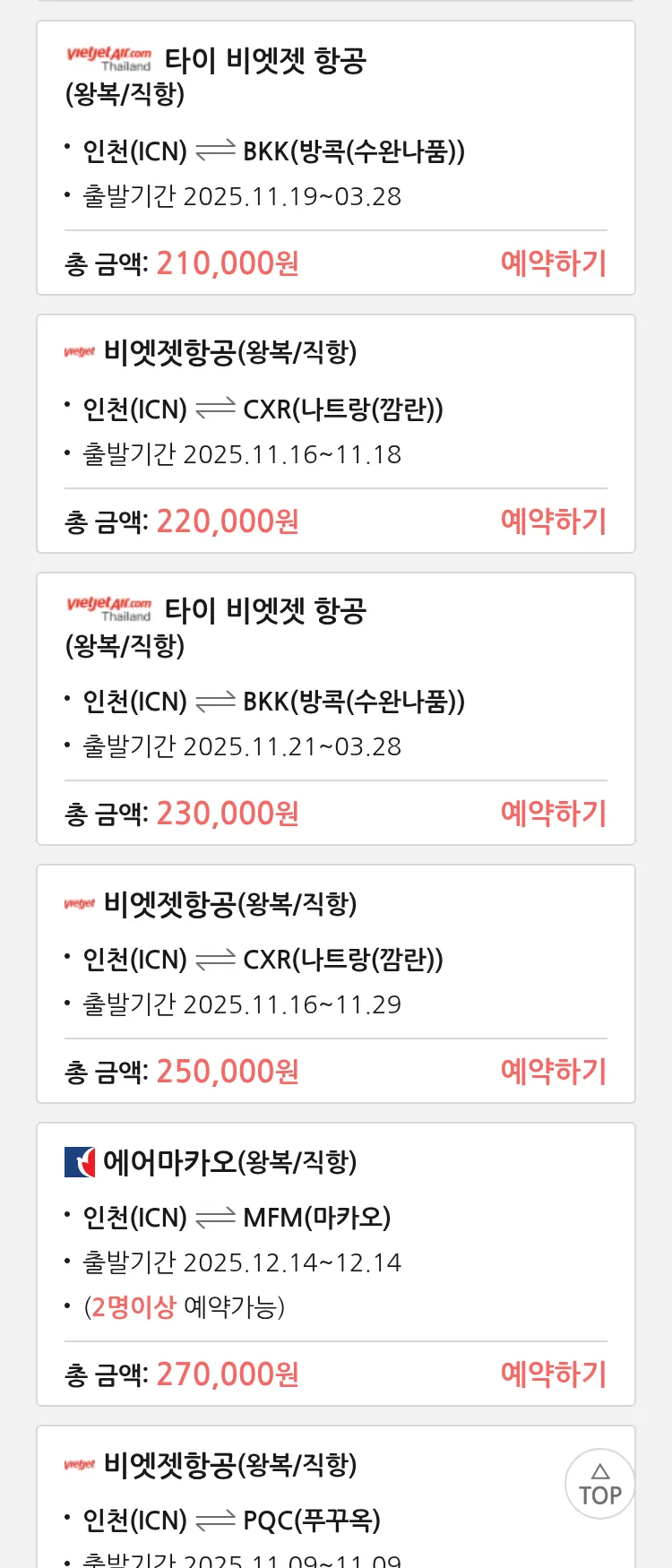 (11월5일(수)) 모두투어 동남아 특가 항공권