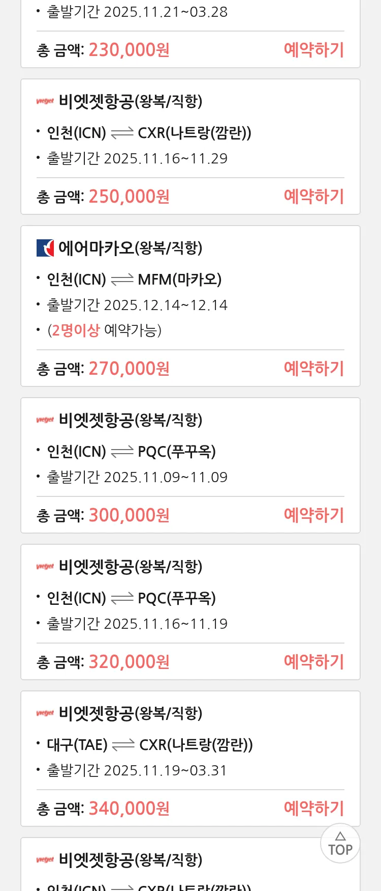 (11월4일(화)) 땡처리 99.9% 확정 패키지