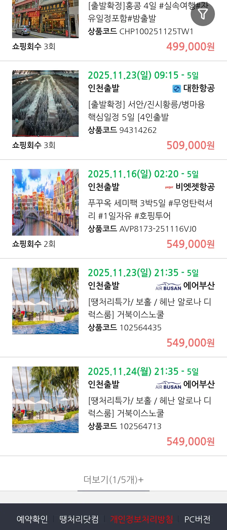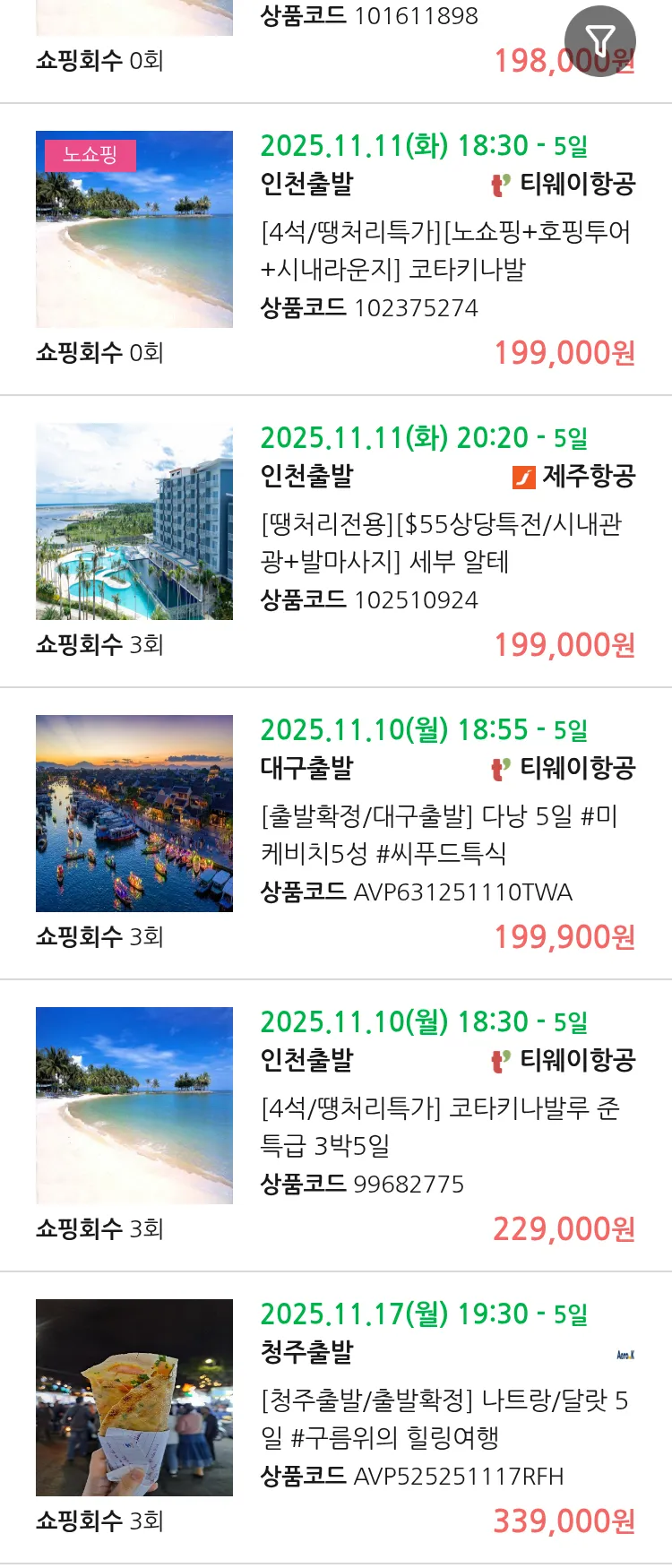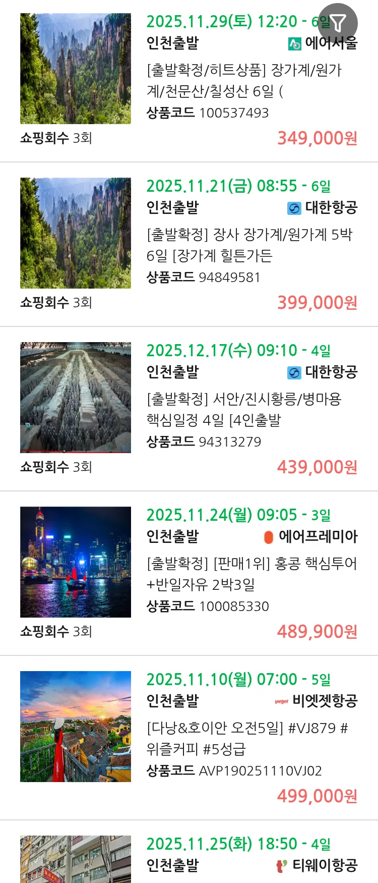 (11월5일(수)) 땡처리 99.9% 확정 패키지