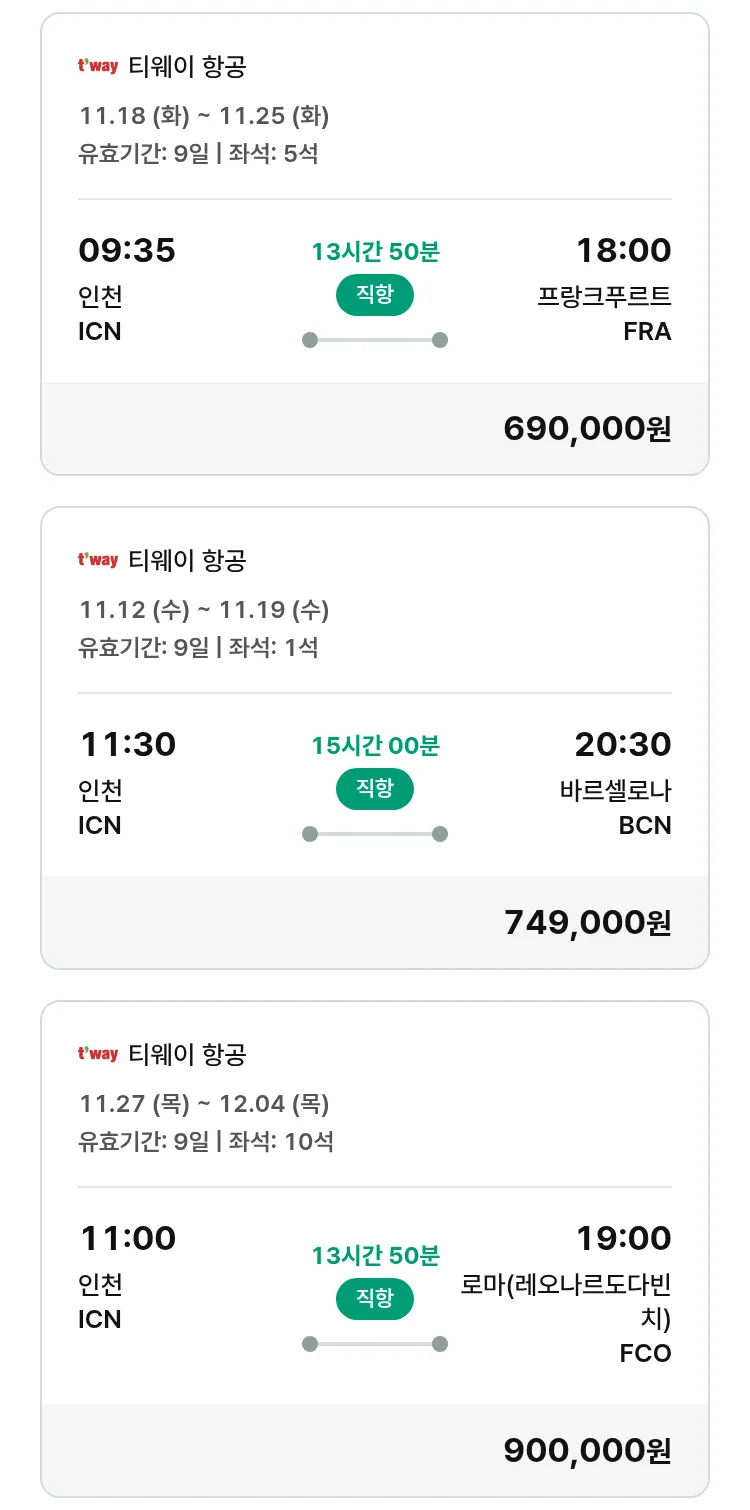(11월6일(목)) 땡처리 유럽 긴급 패키지