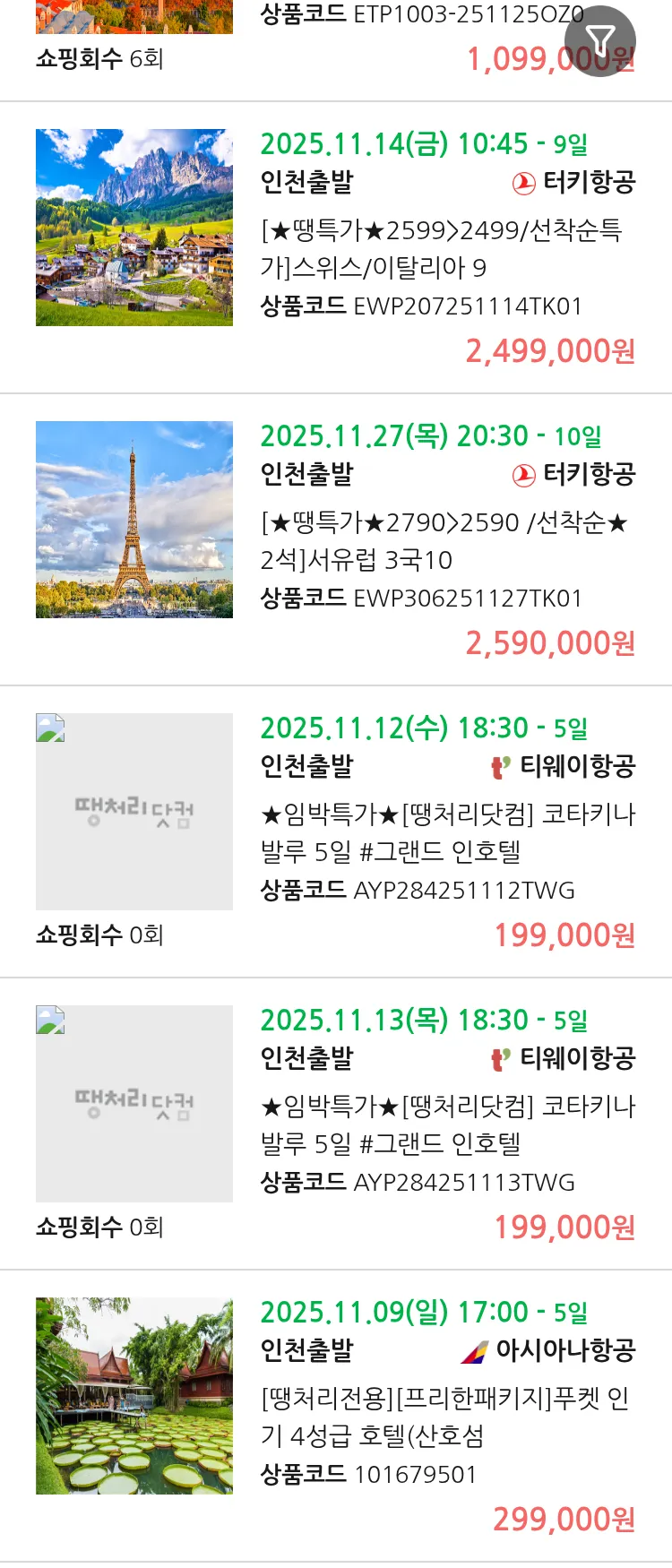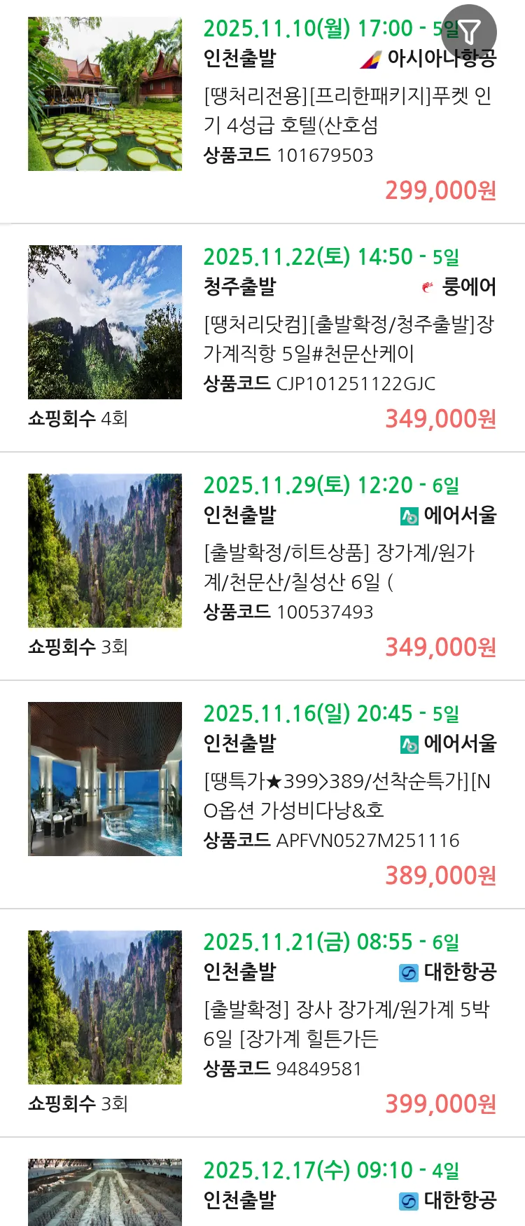 (11월6일(목)) 땡처리 99.9% 확정 패키지