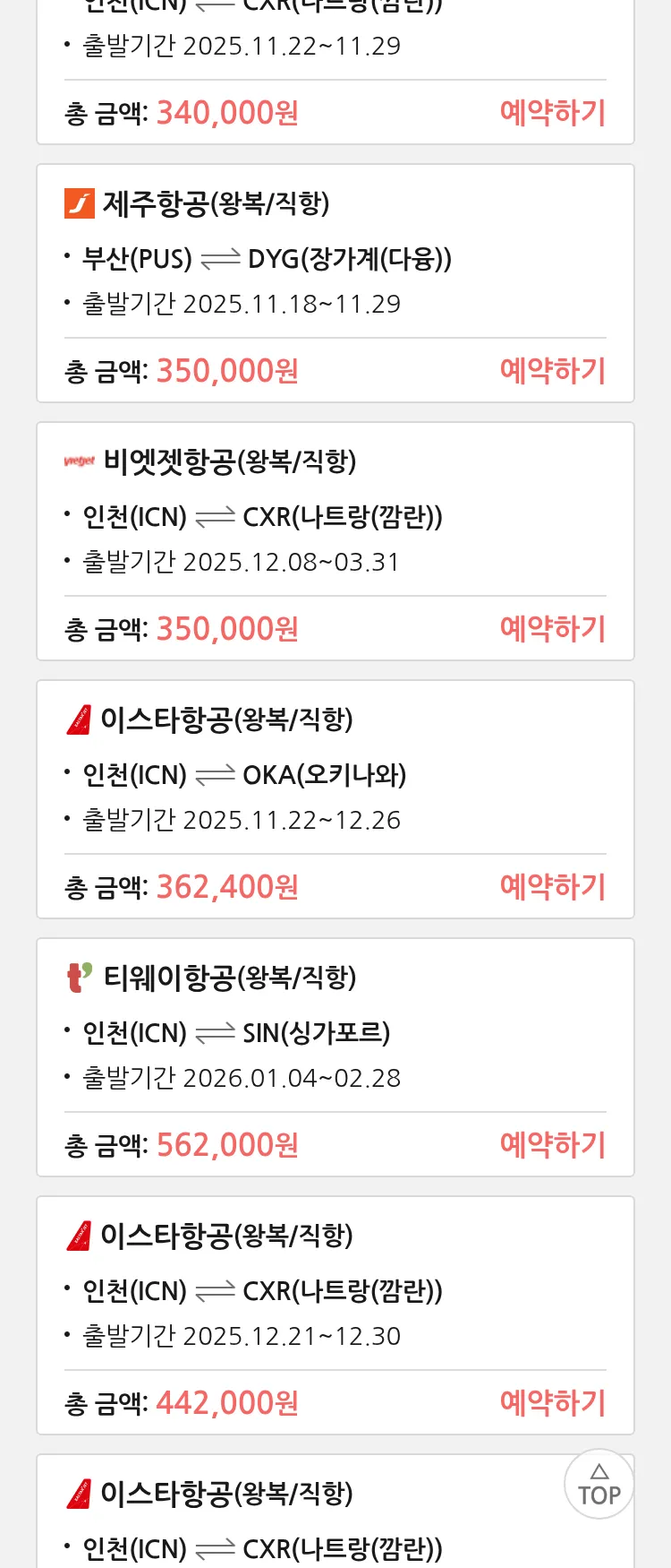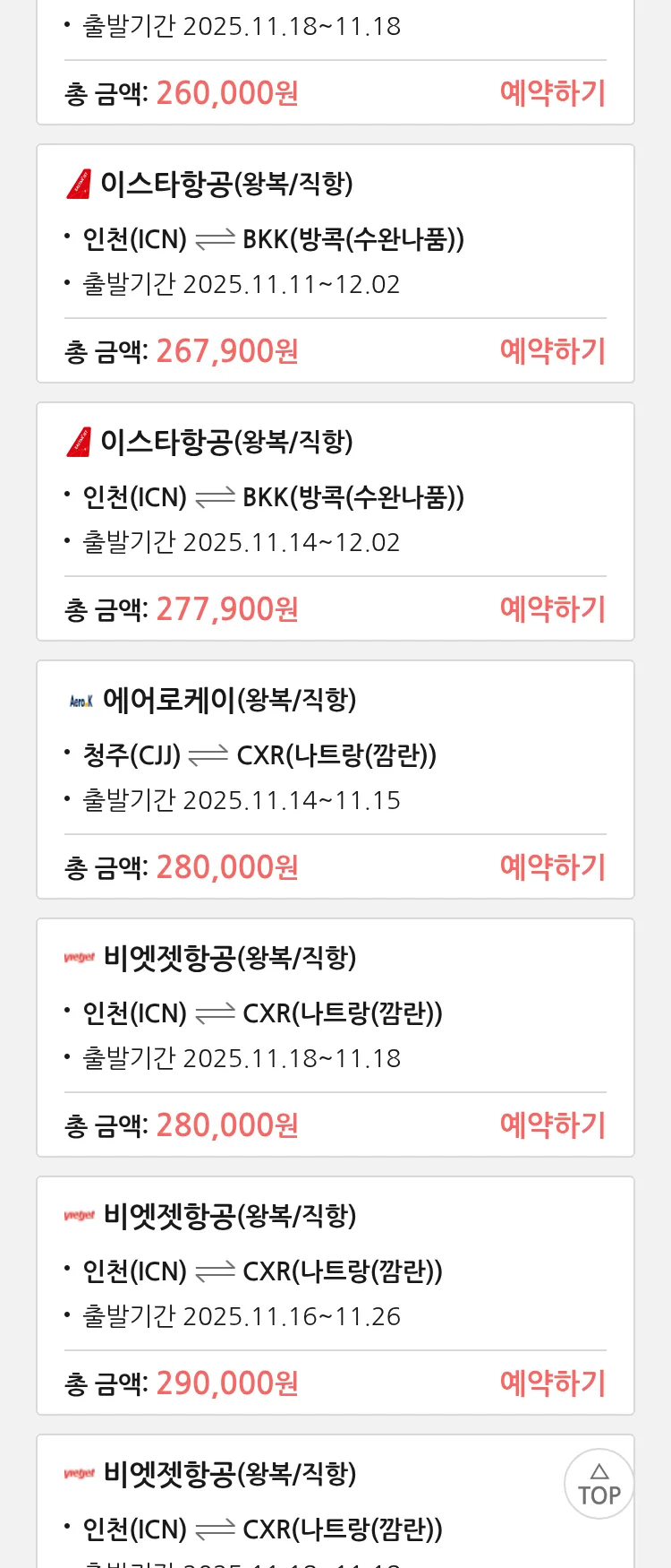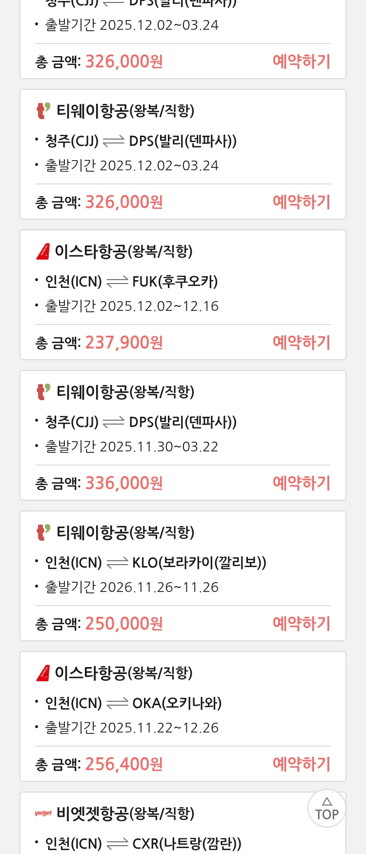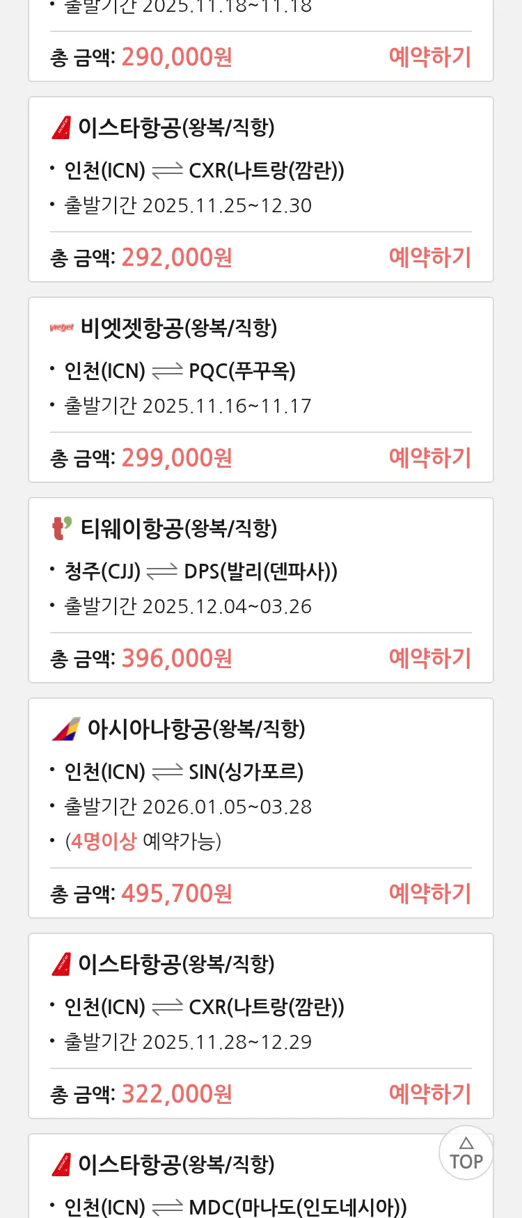 (11월6일(목)) 땡처리 특가 항공권