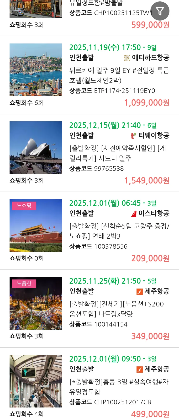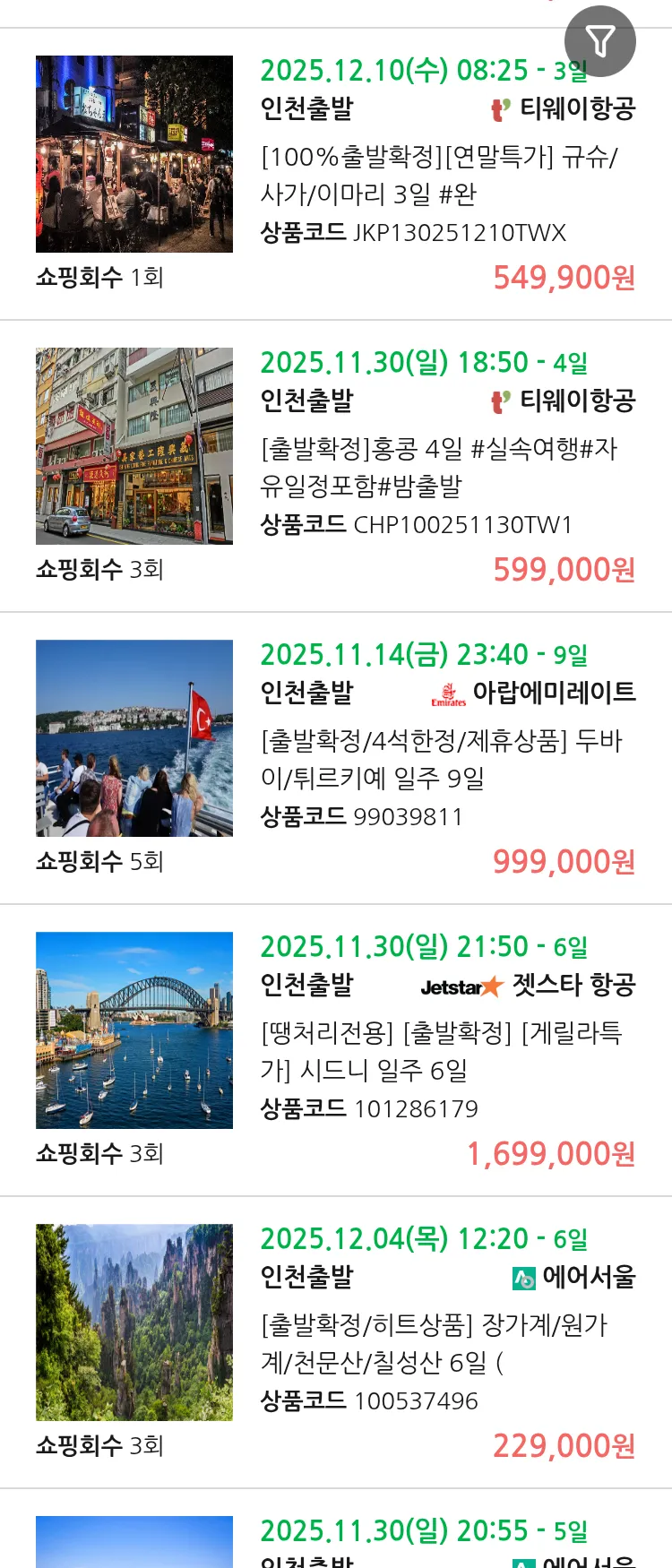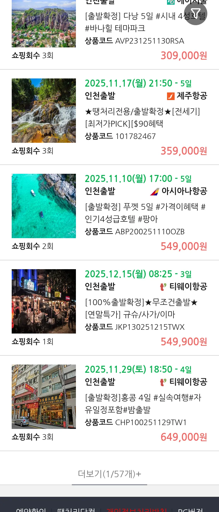 (11월6일(목)) 땡처리 99.9% 확정 패키지