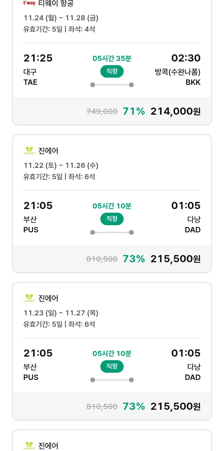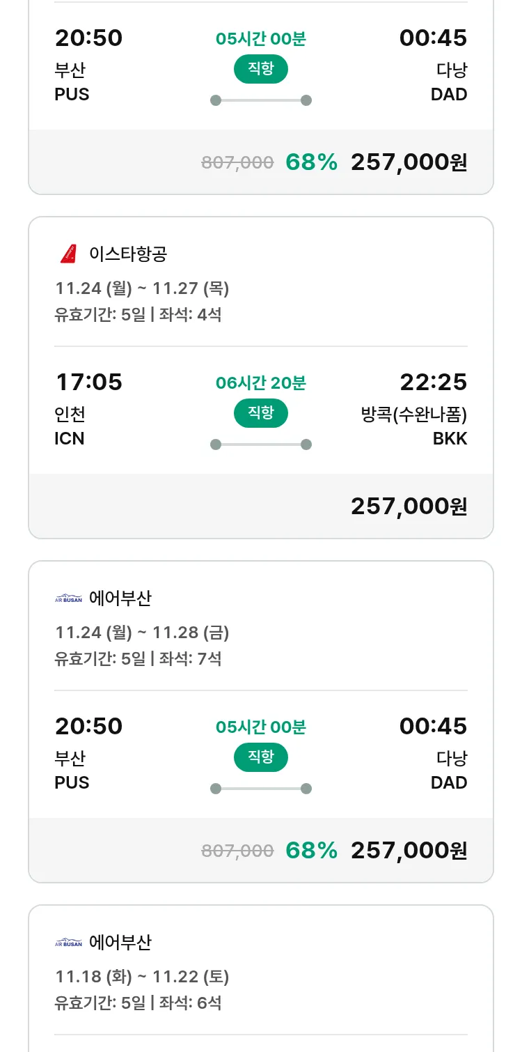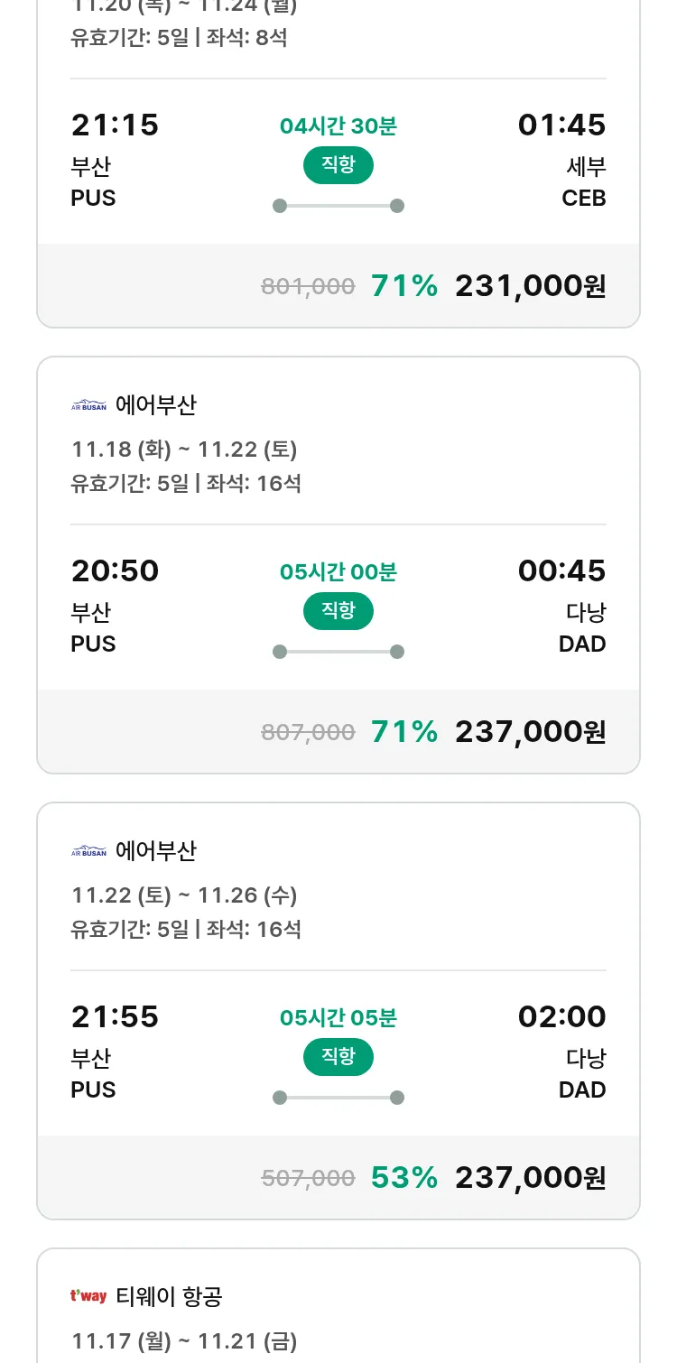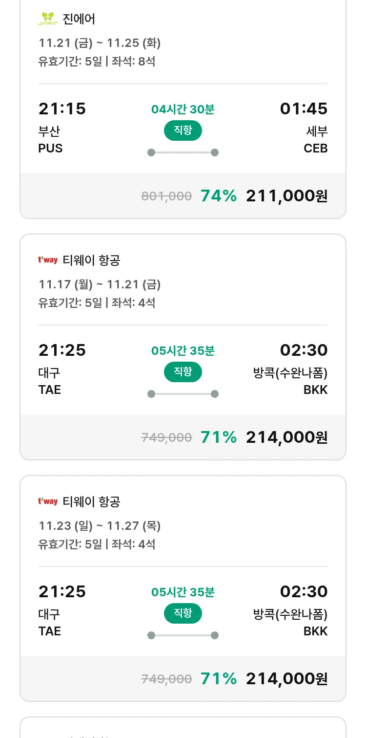 (11월5일(수)) 땡처리 특가 항공권