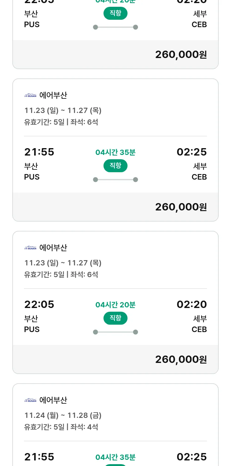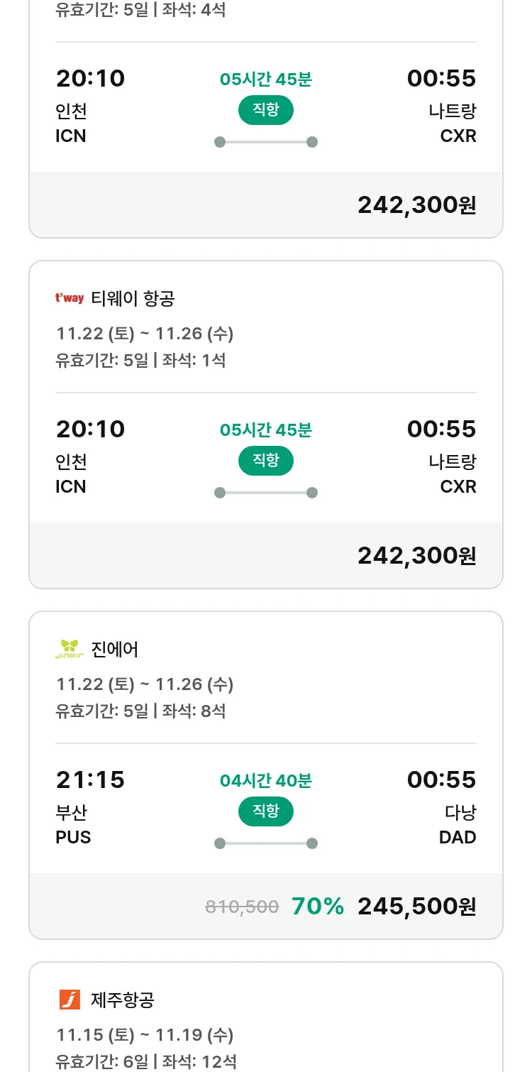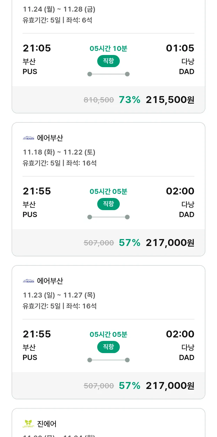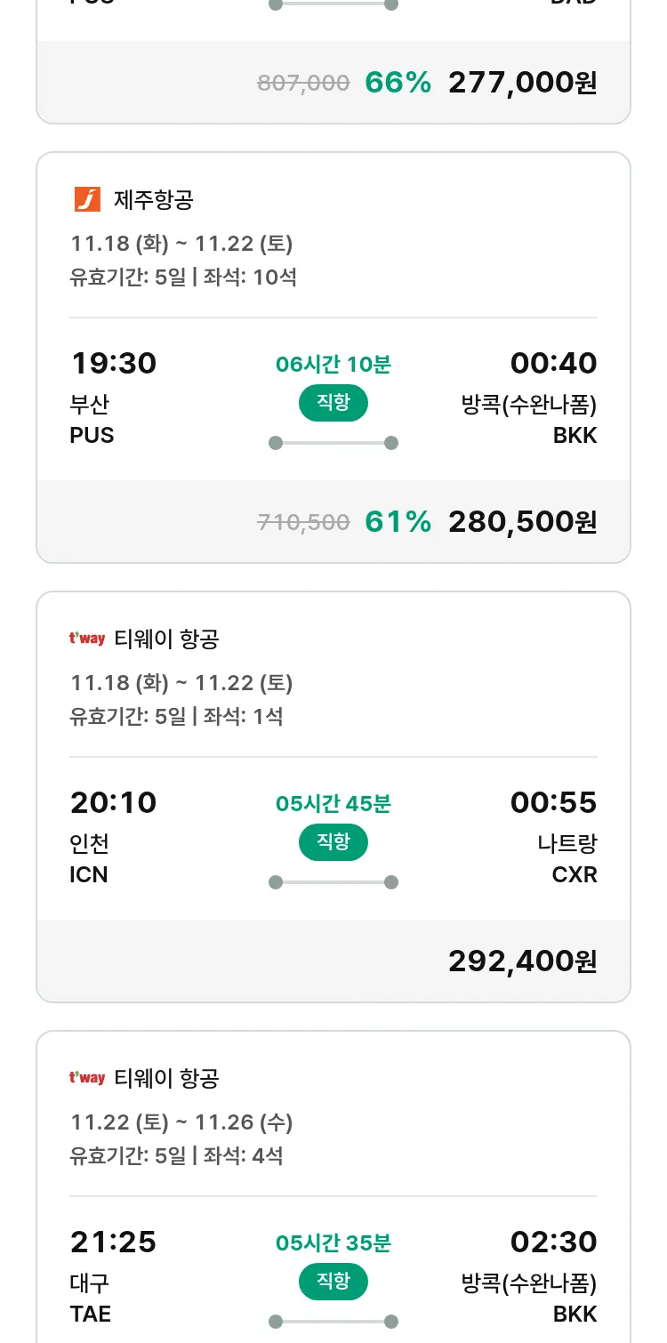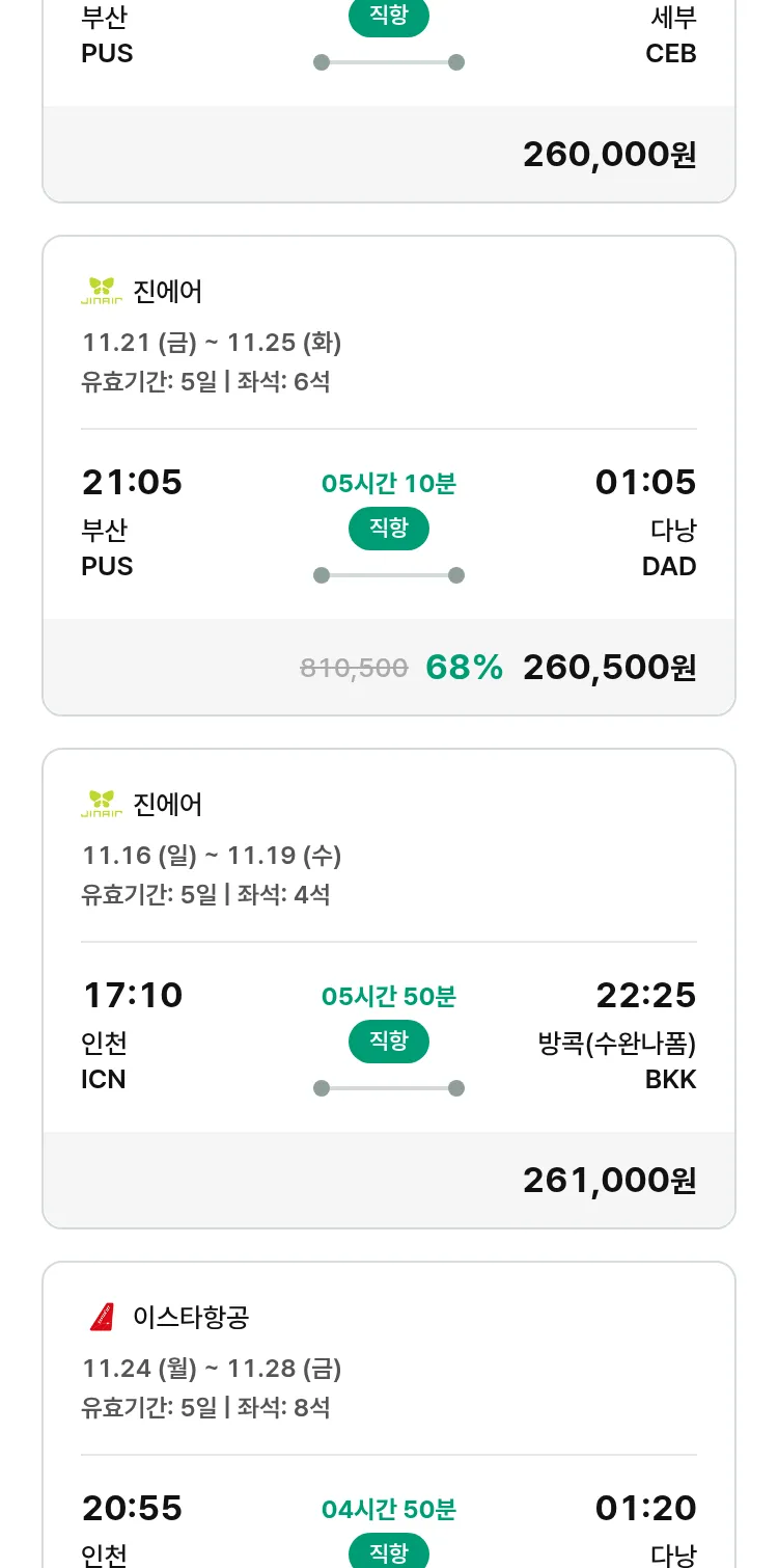 (11월5일(수)) 땡처리 특가 항공권