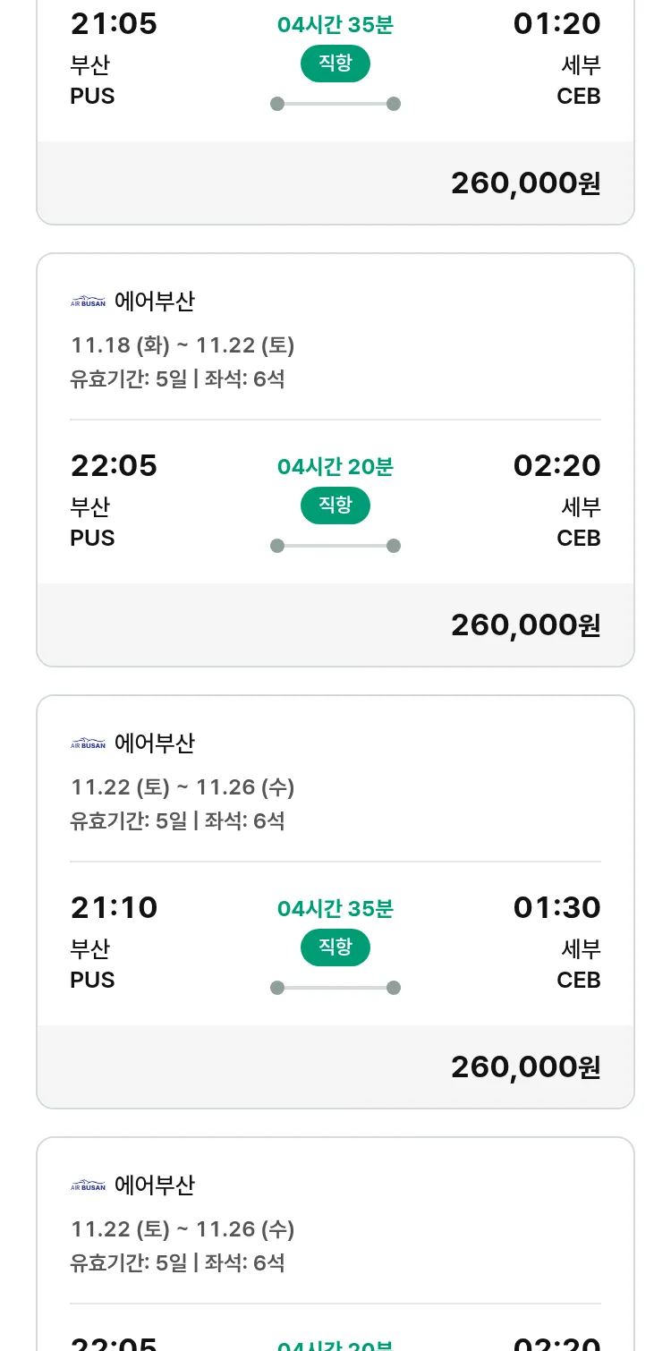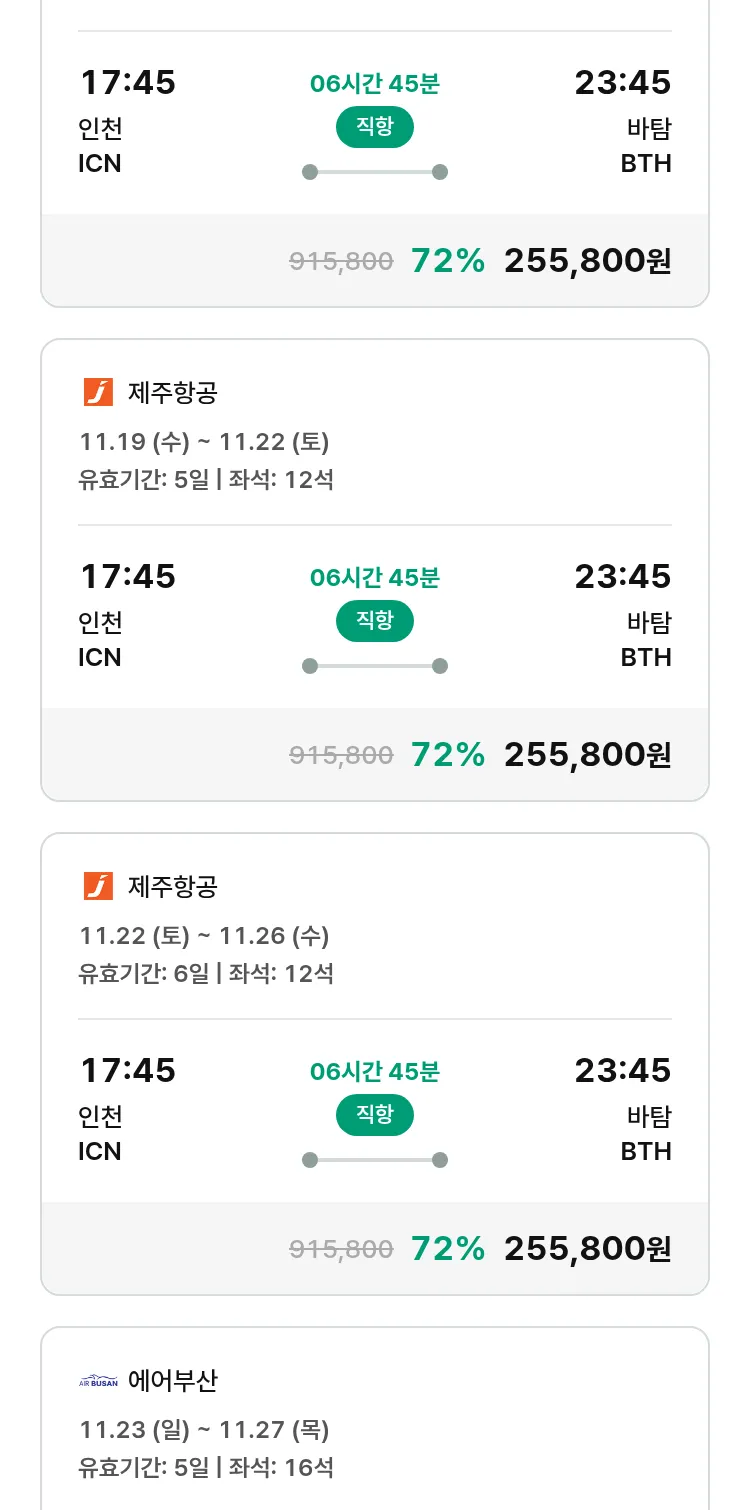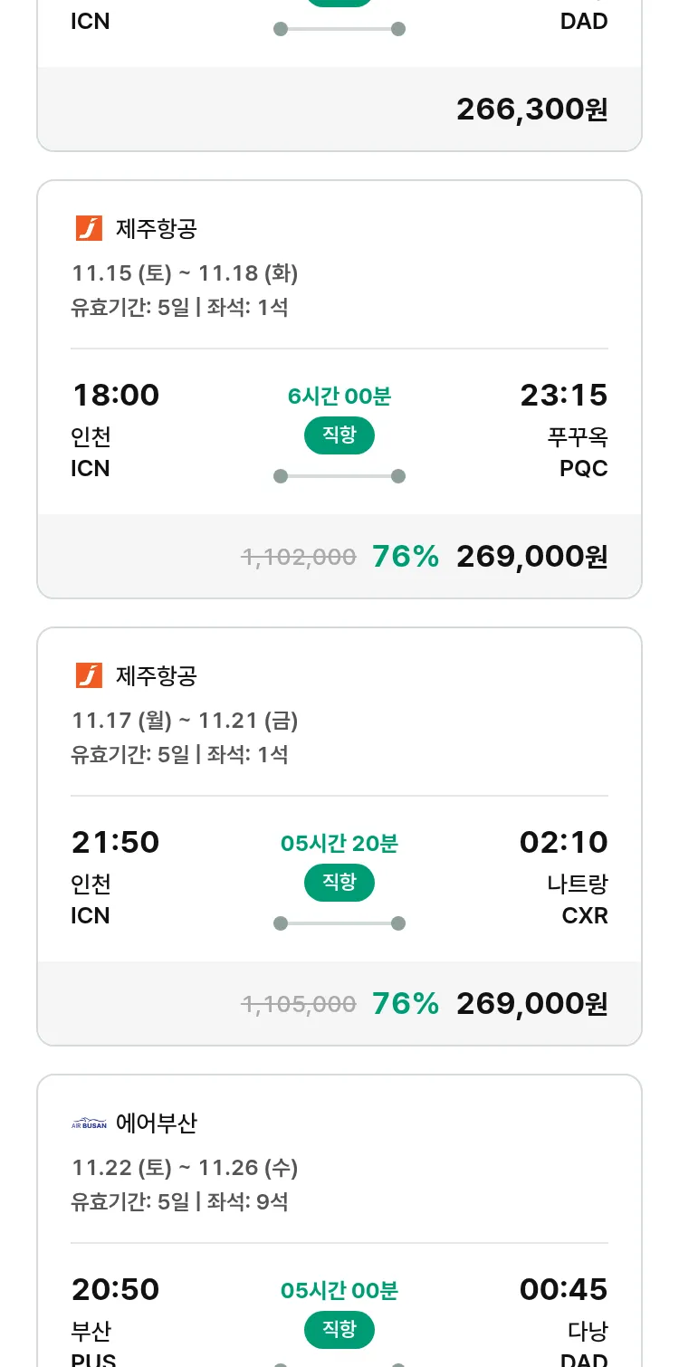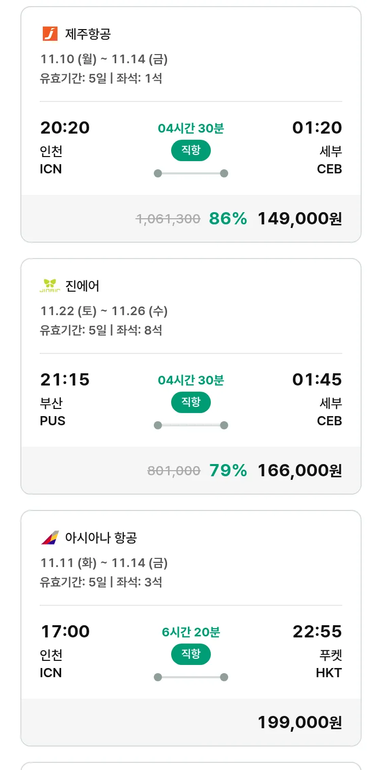 (11월6일(목)) 땡처리 특가 항공권