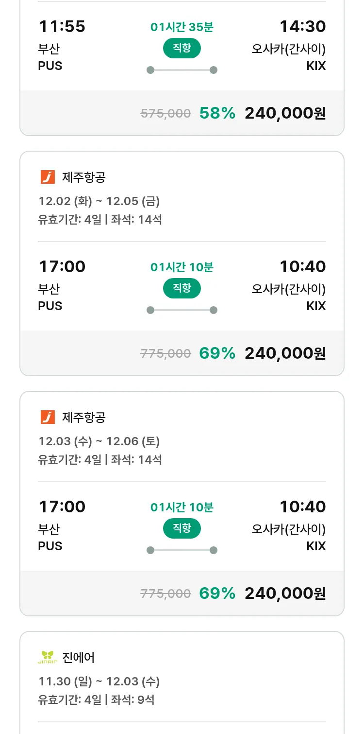 (11월5일(수)) 땡처리 특가 항공권