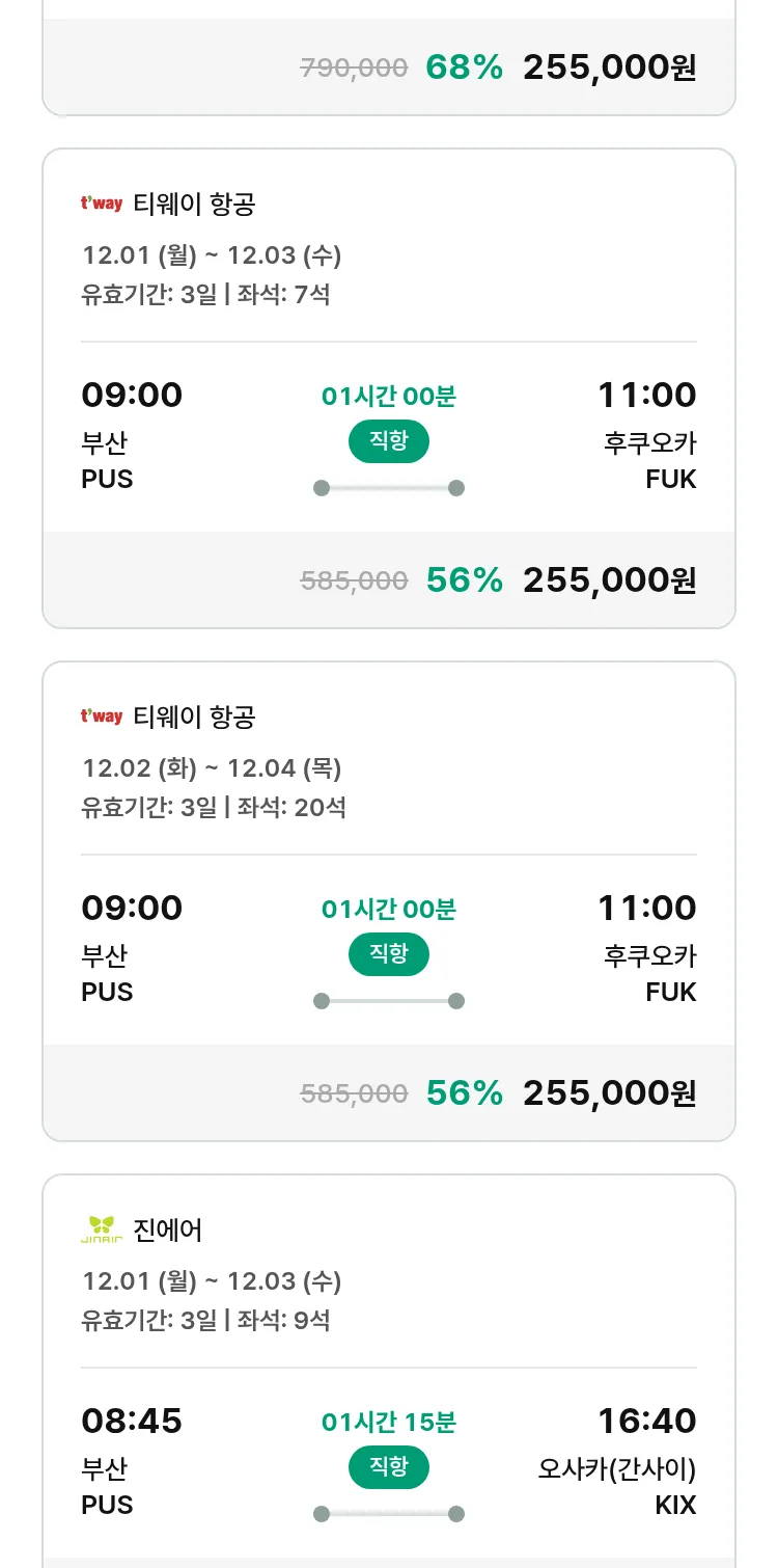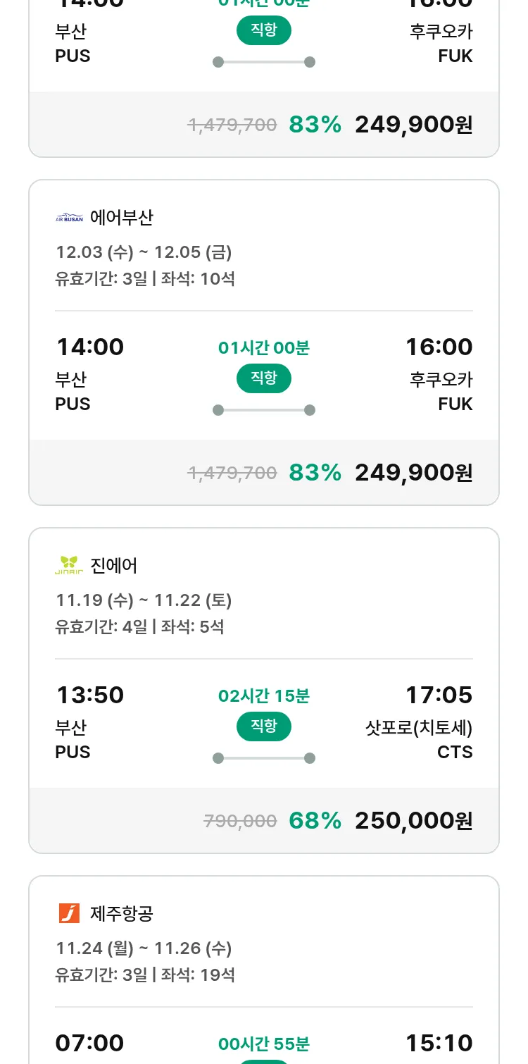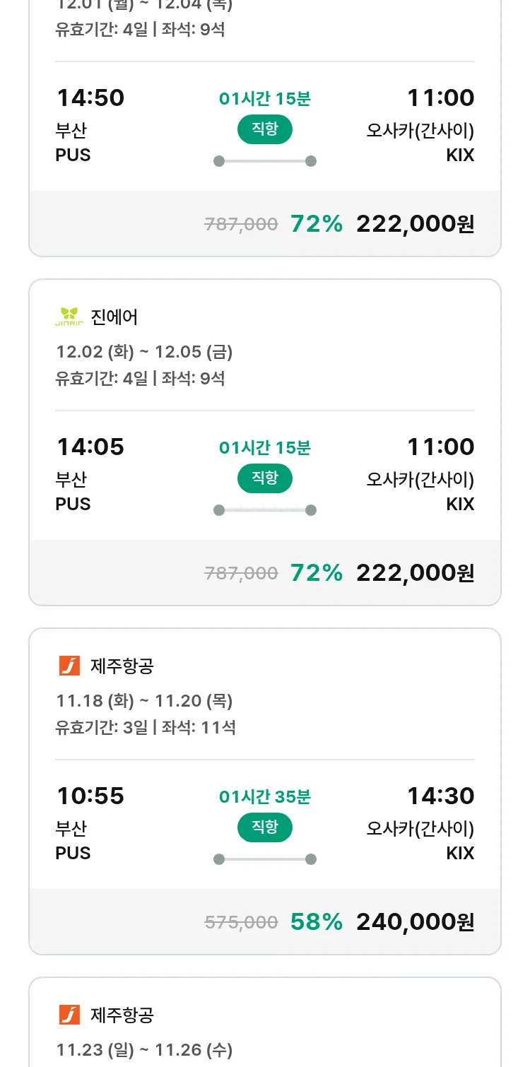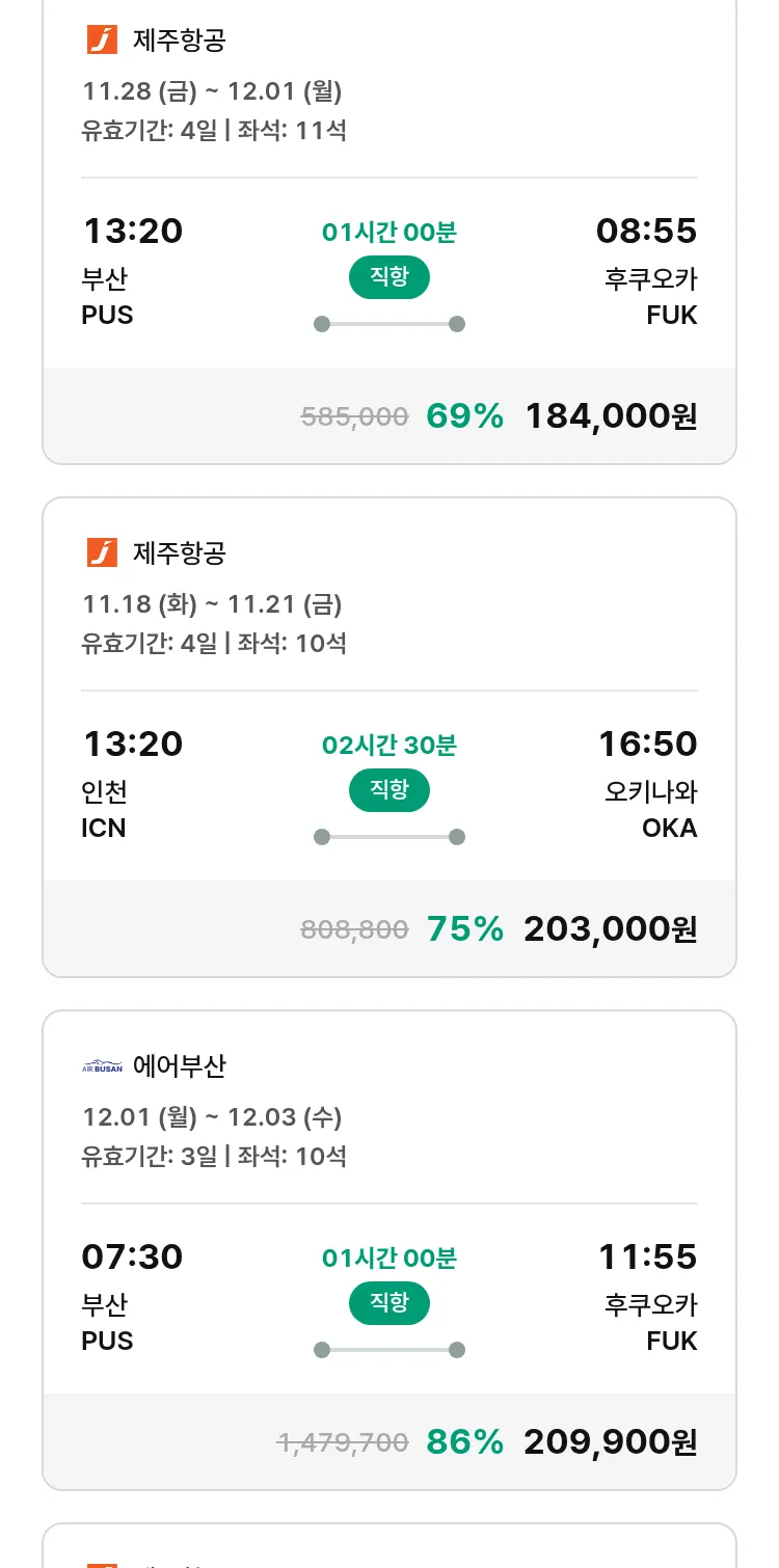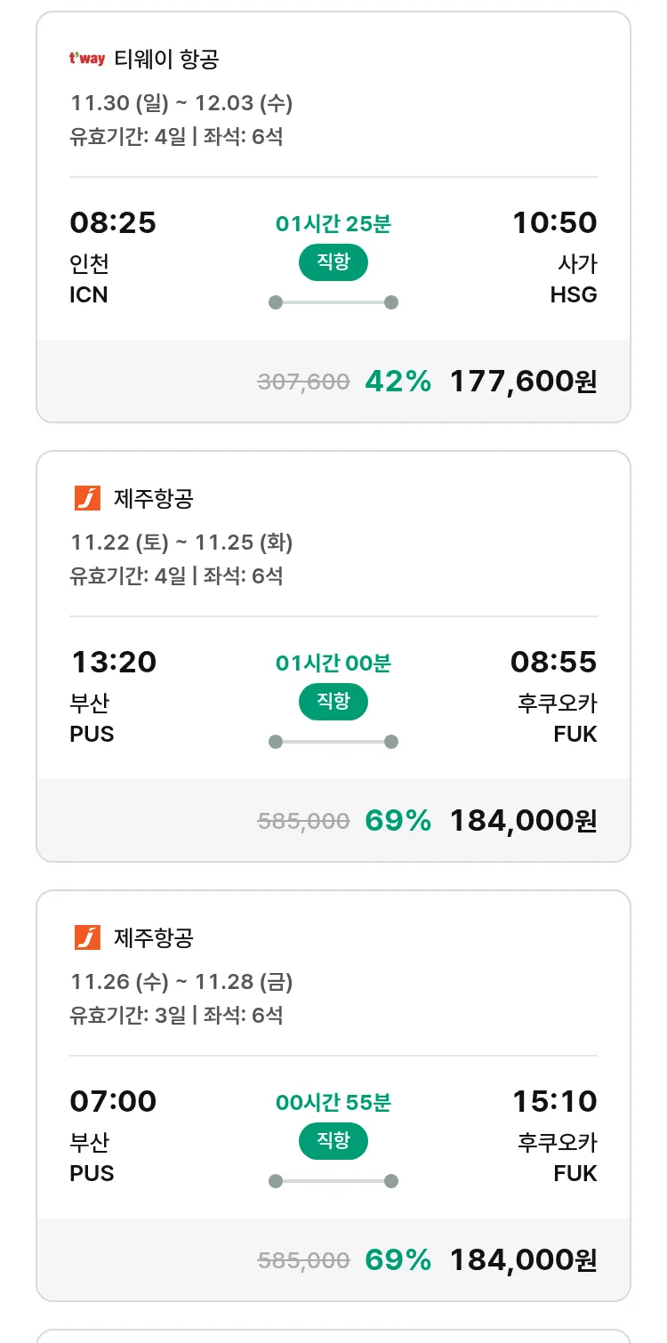 (11월6일(목)) 땡처리 특가 항공권