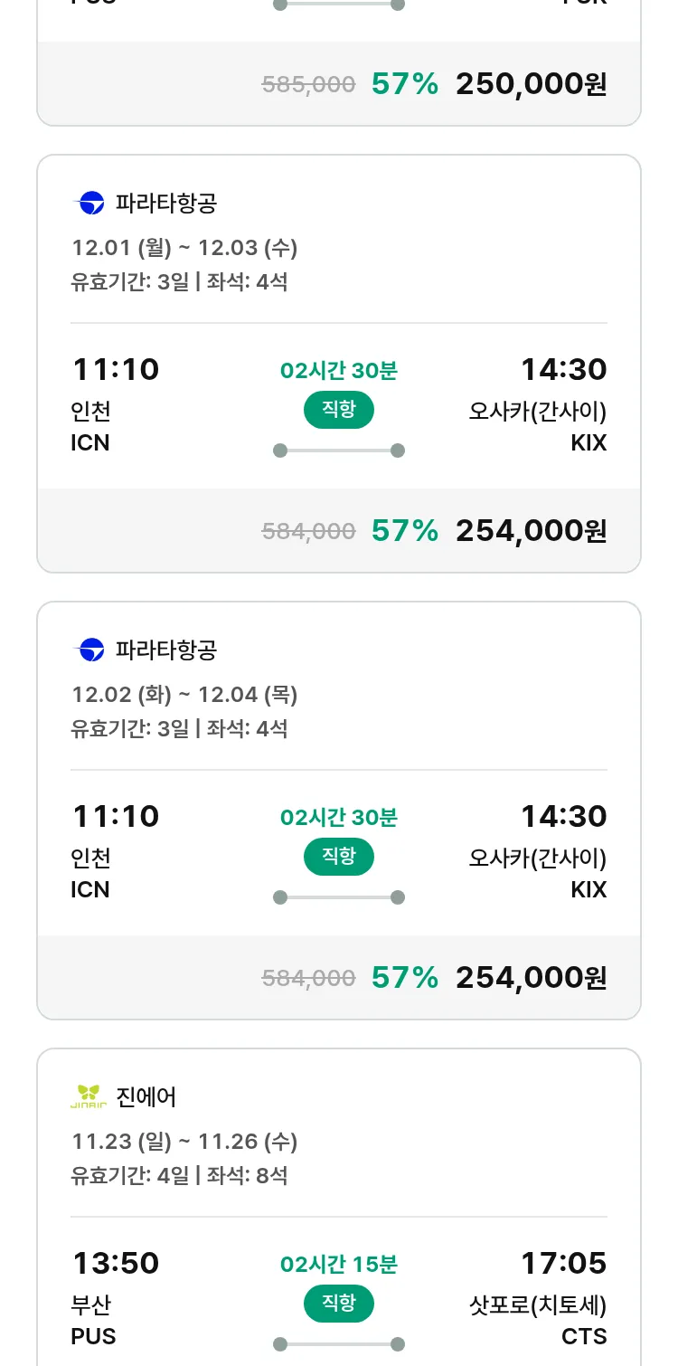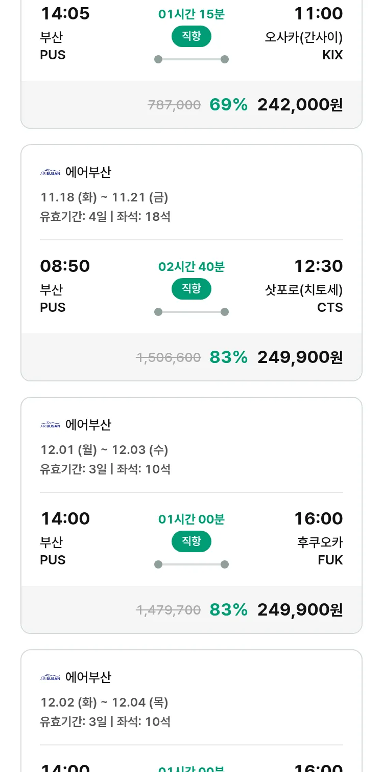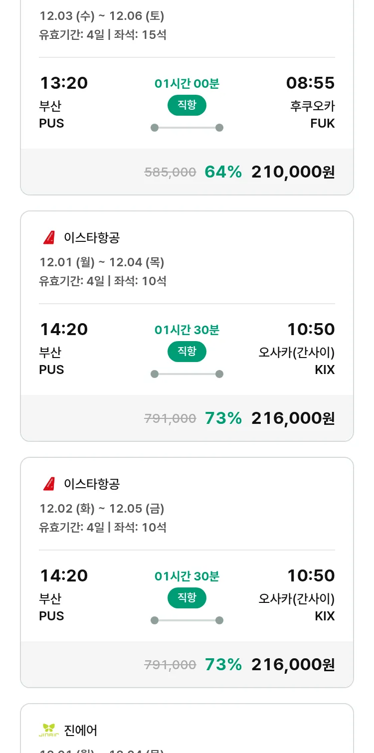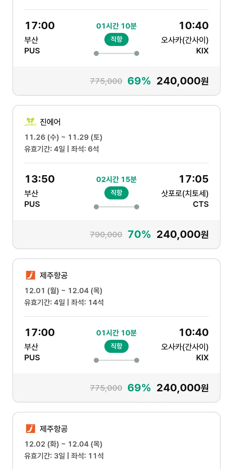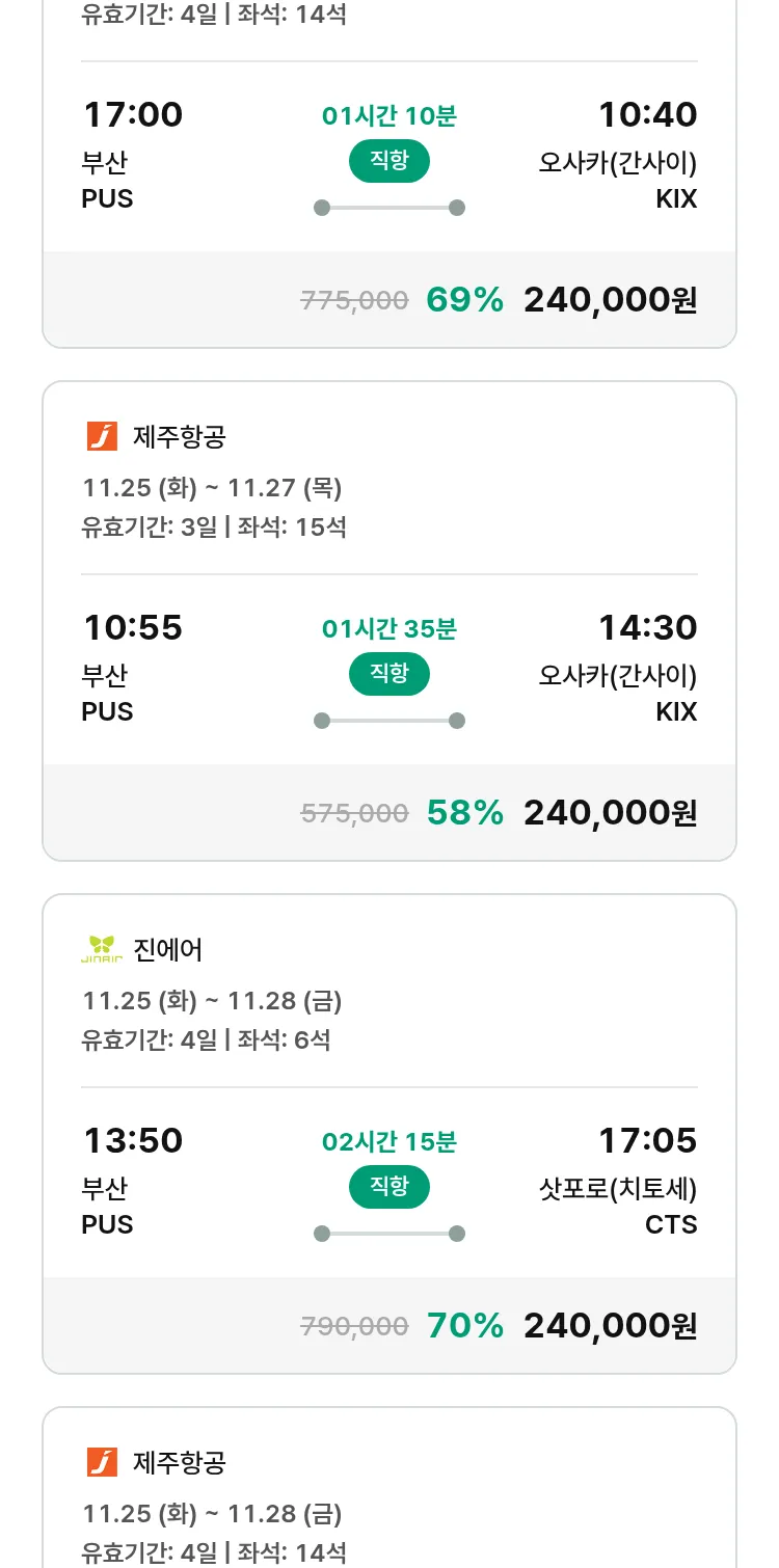 (11월6일(목)) 땡처리 특가 항공권