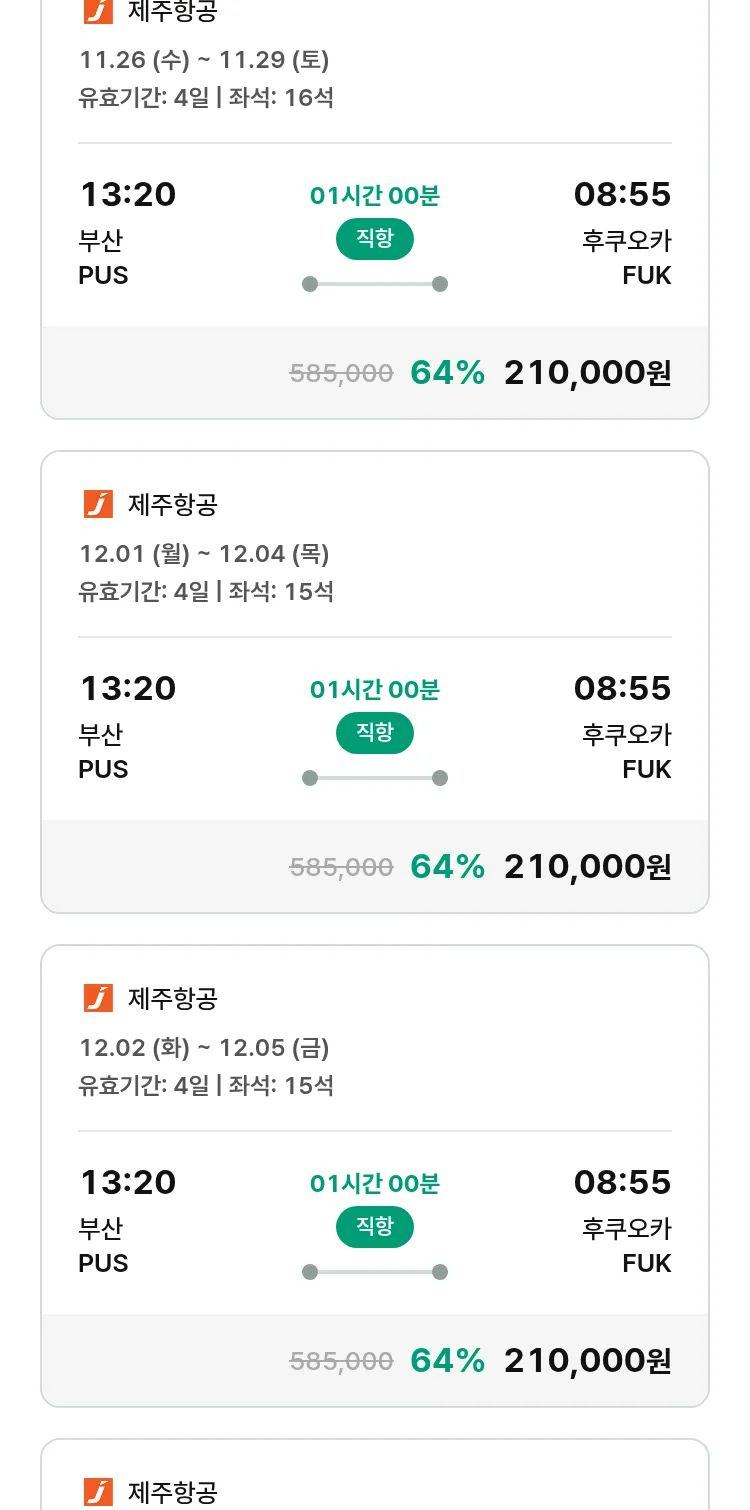 (11월6일(목)) 땡처리 99.9% 확정 패키지