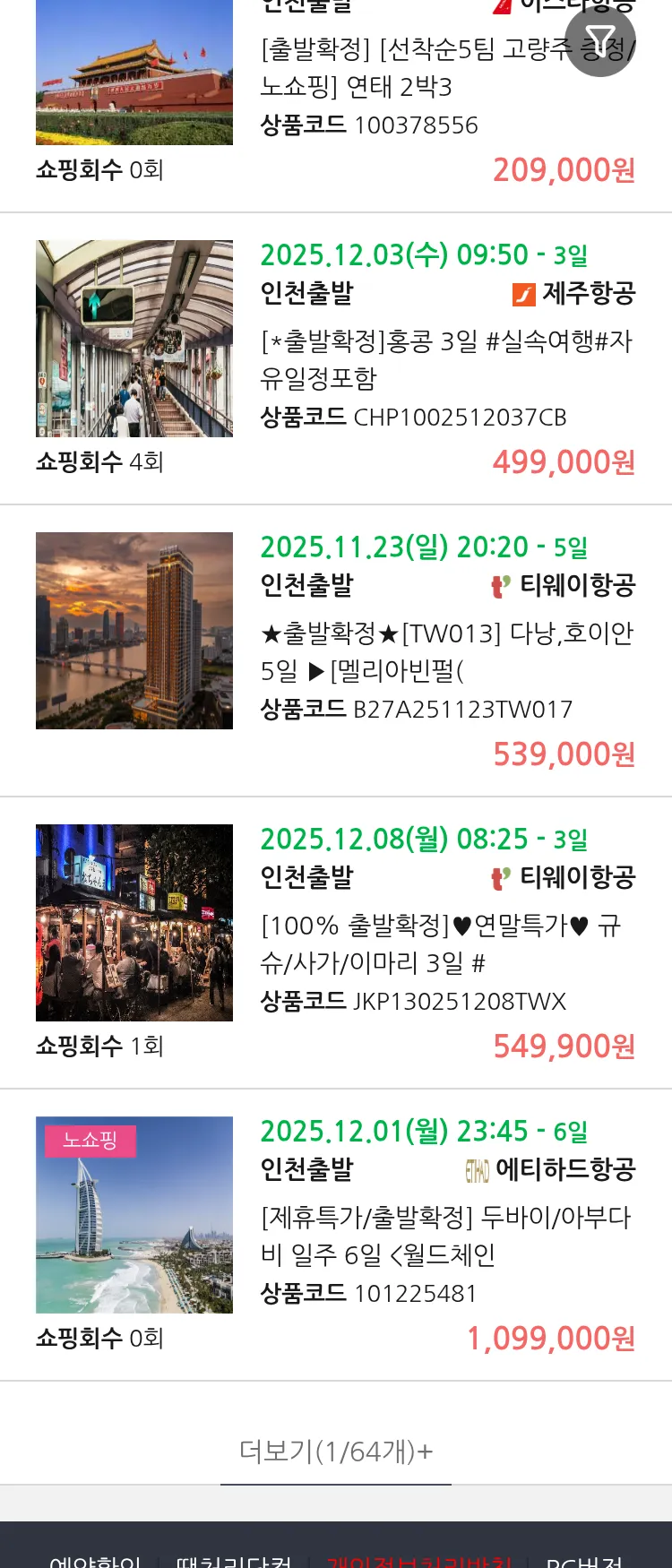 (11월7일(금)) 땡처리 99.9% 확정 패키지
