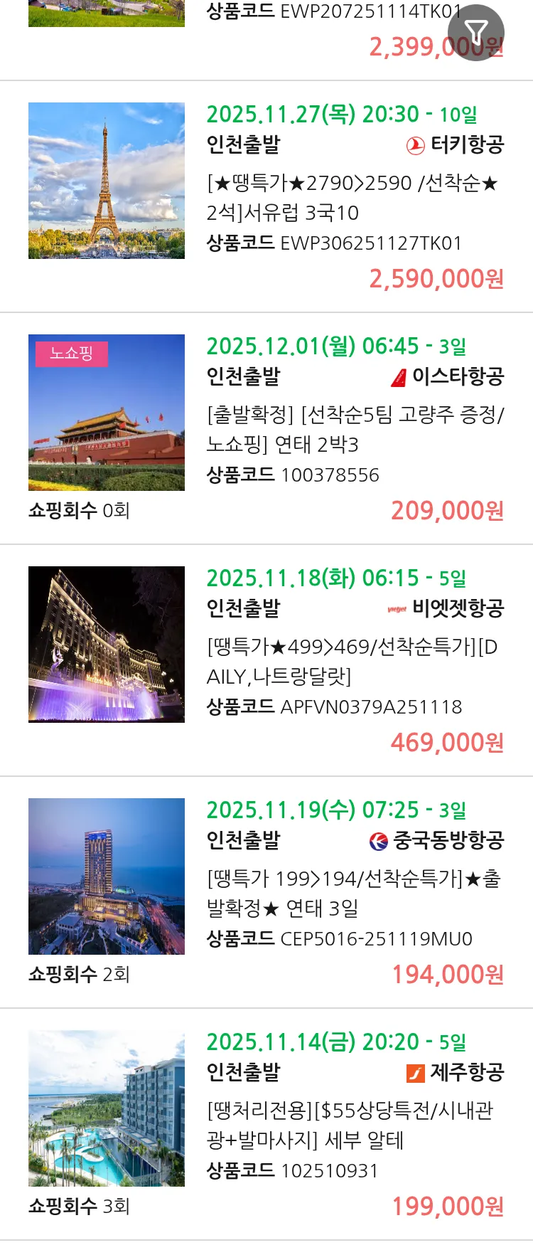 (11월7일(금)) 땡처리 99.9% 확정 패키지