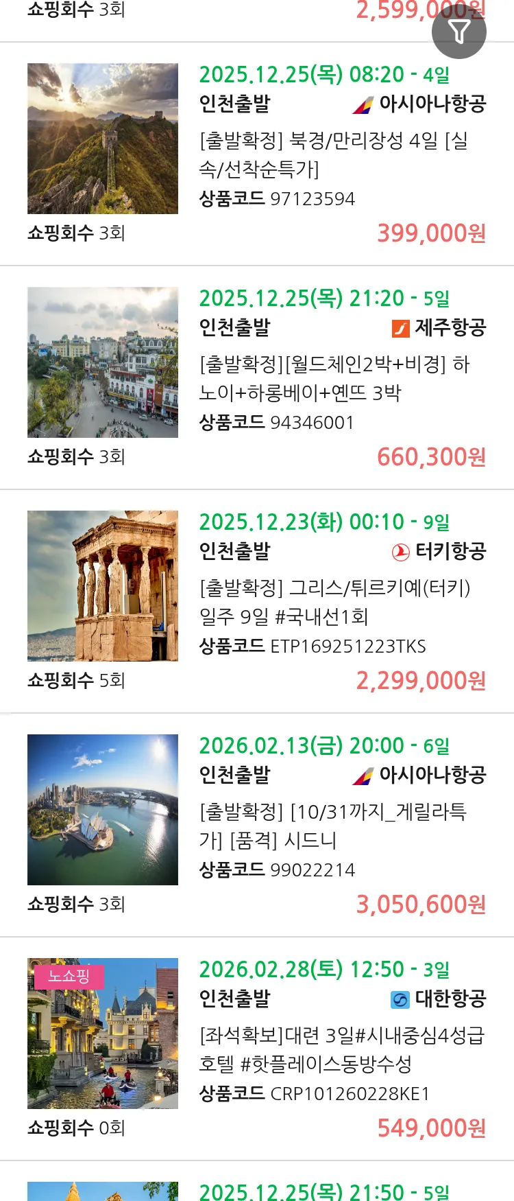 (11월9일(일)) 땡처리 99.9% 확정 패키지