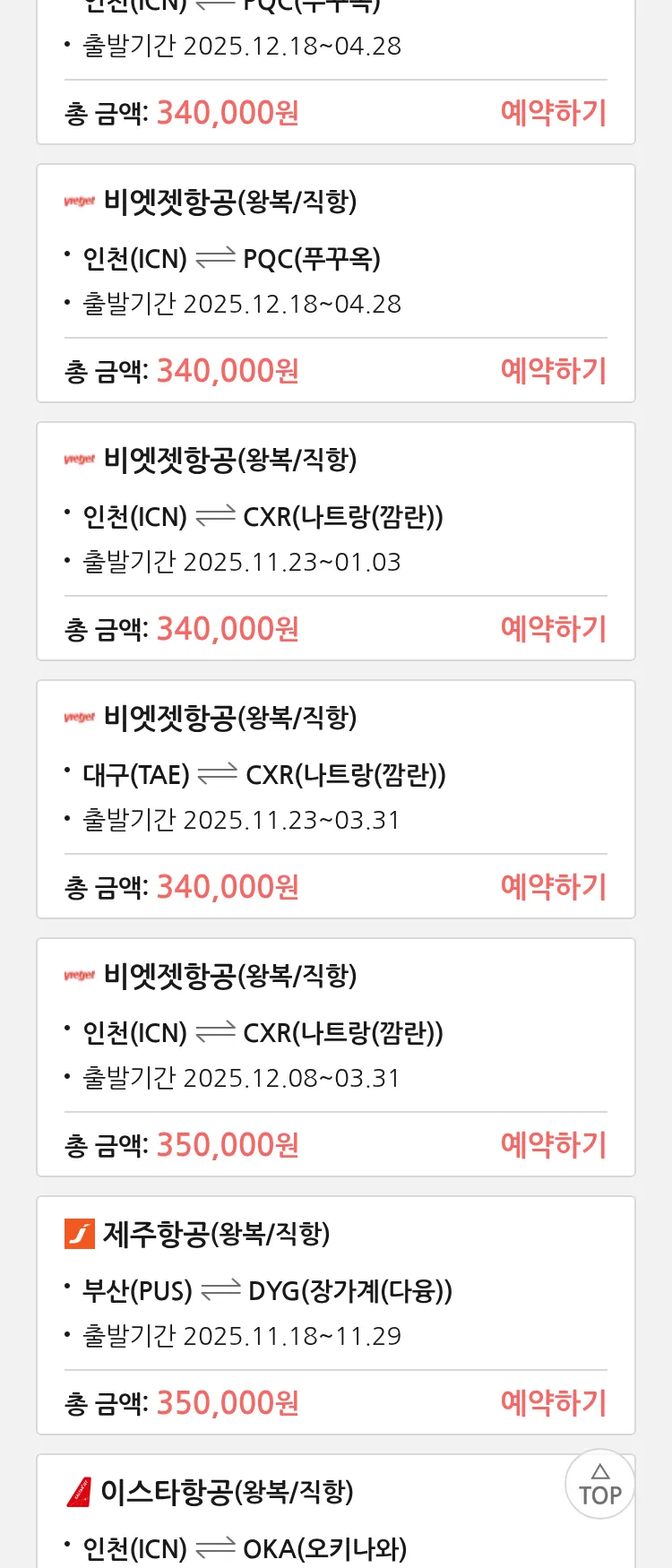 (11월8일(토)) 모두투어 동남아 특가 항공권